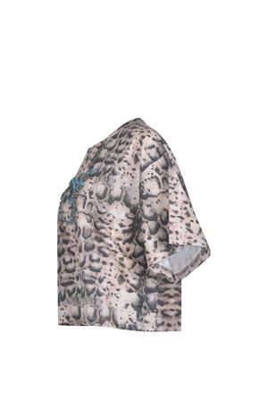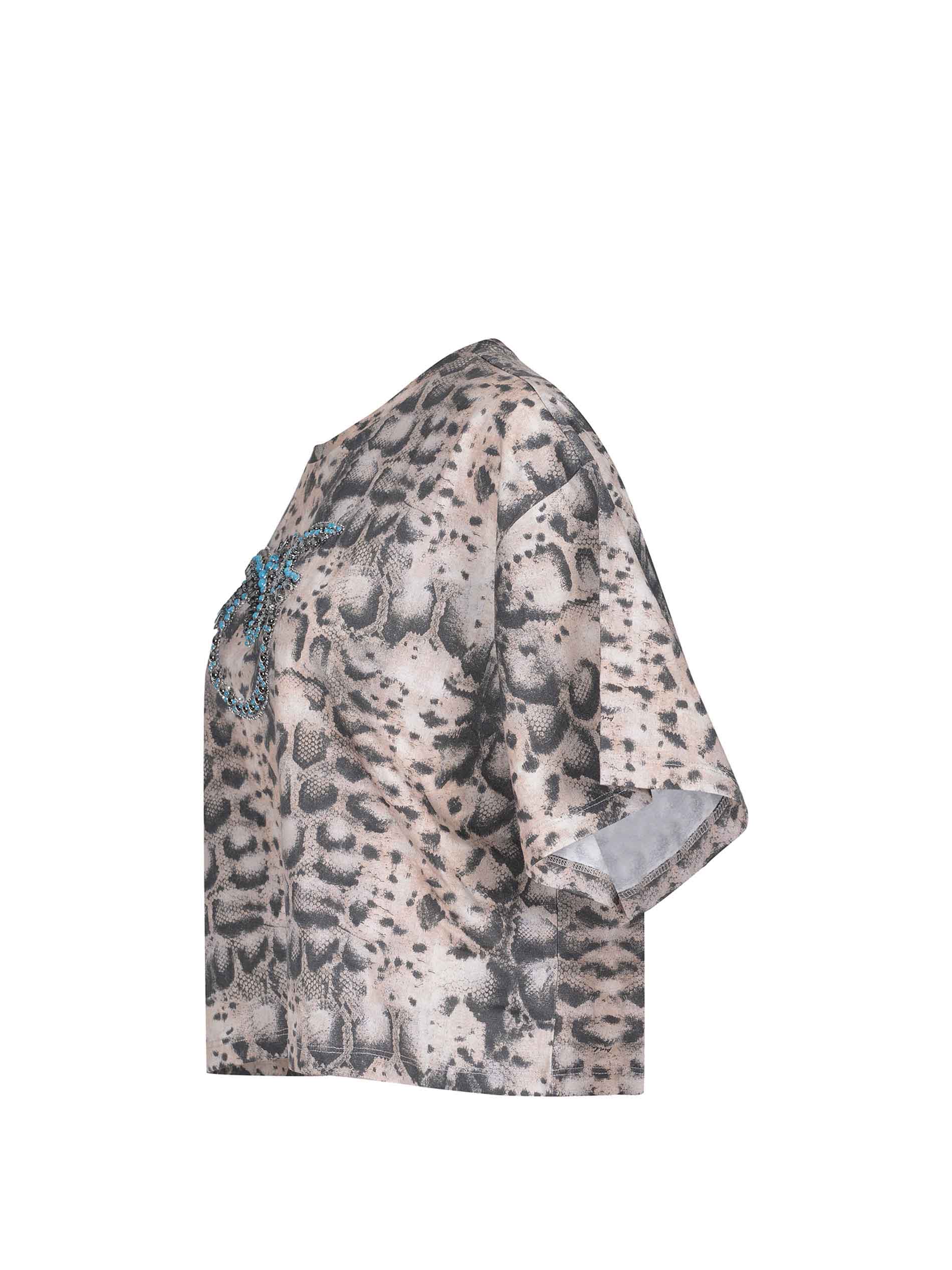 Dettaglio logo Love Birds in strass a contrasto sul petto.