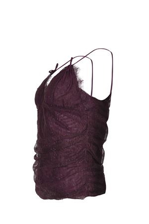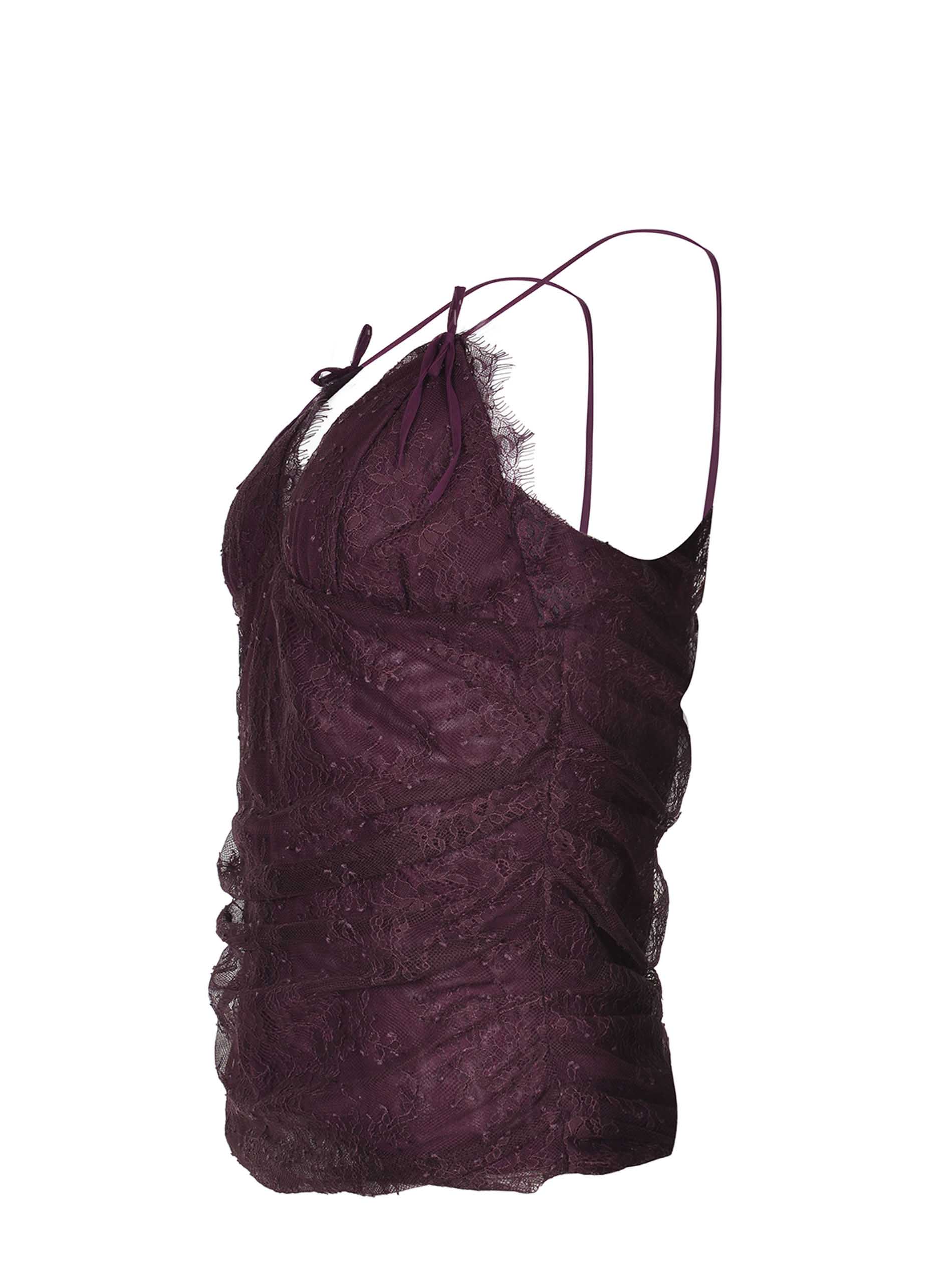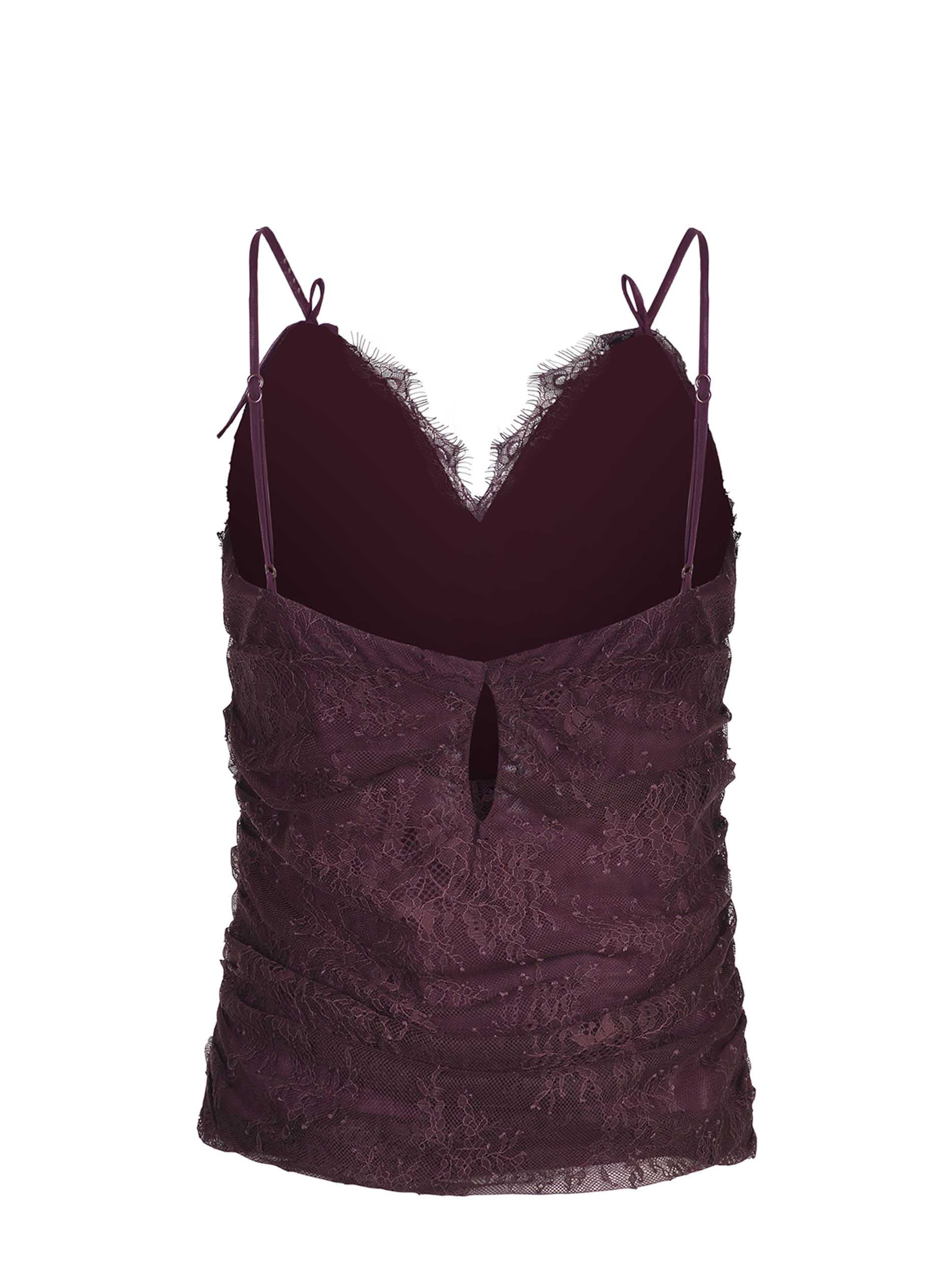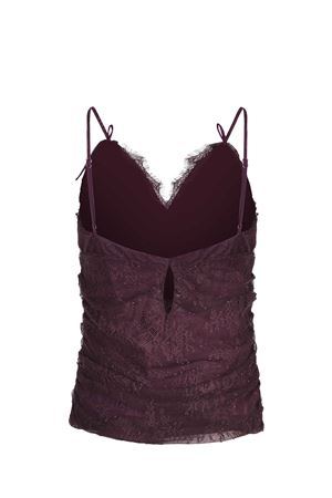 Top Pinko "Fragola" realizzato in pizzo di colore Prugna.