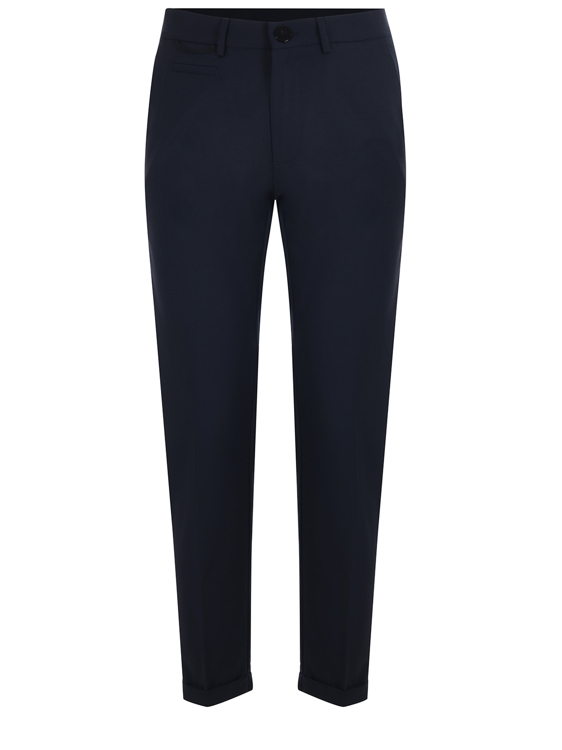 Pantaloni PMDS in fresco lana Blu scuro. Tasche america. Tasche a filo sul retro. Chiusura con zip e bottone. Risvolto cucito al fondo. Slim fit.