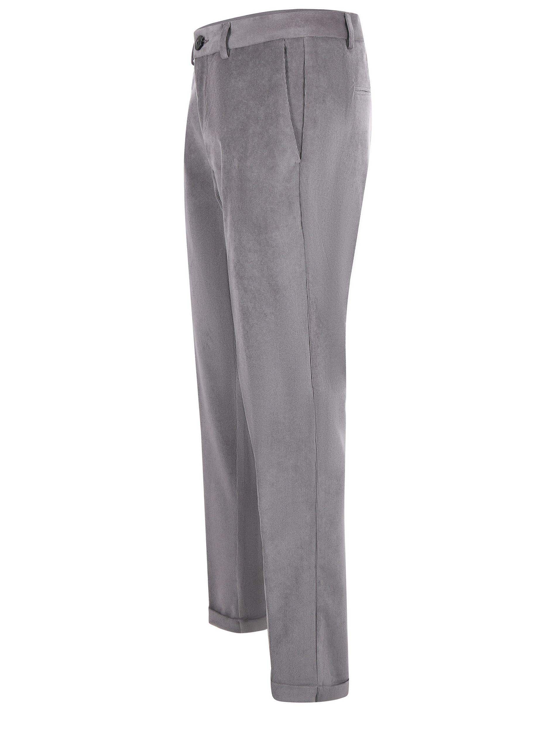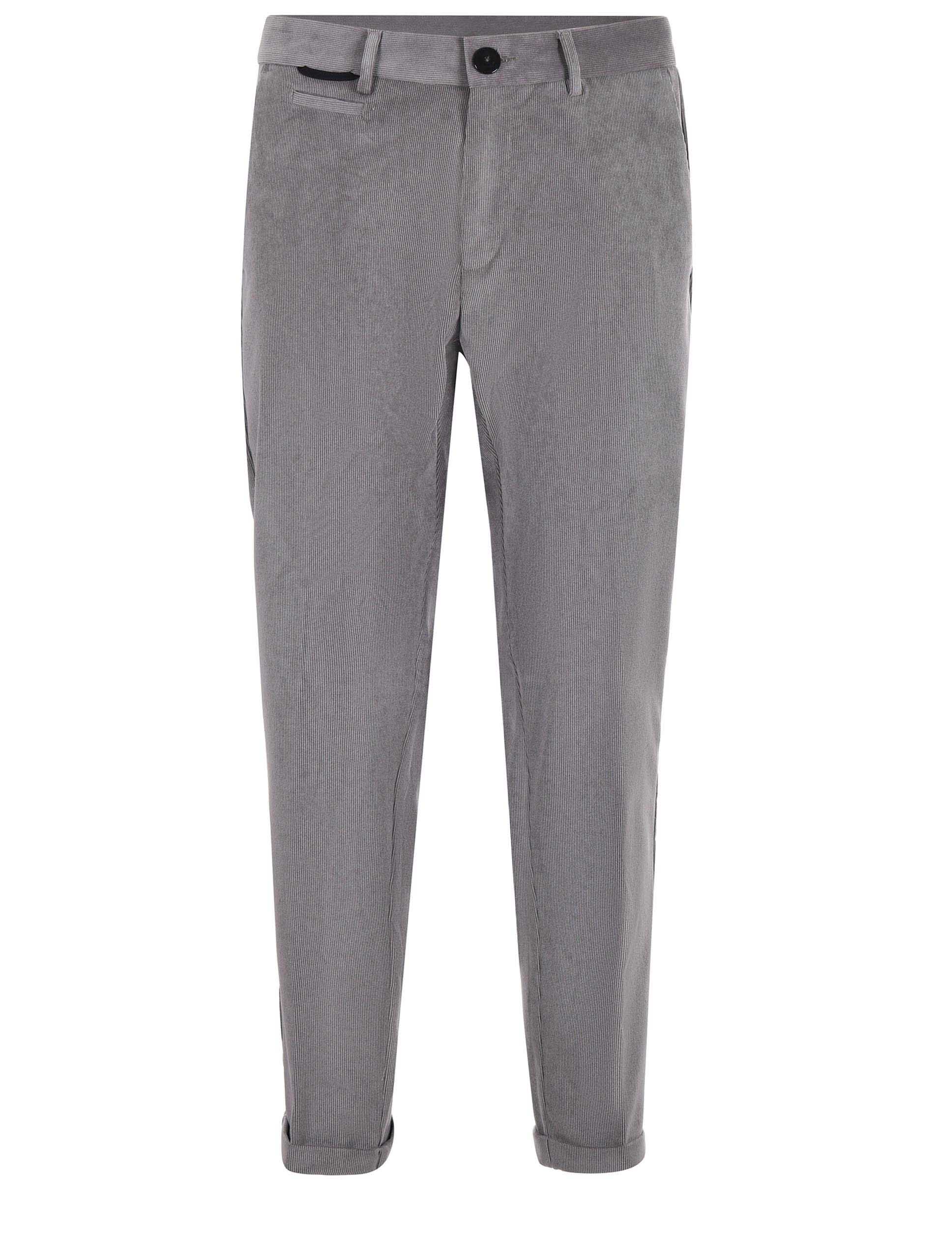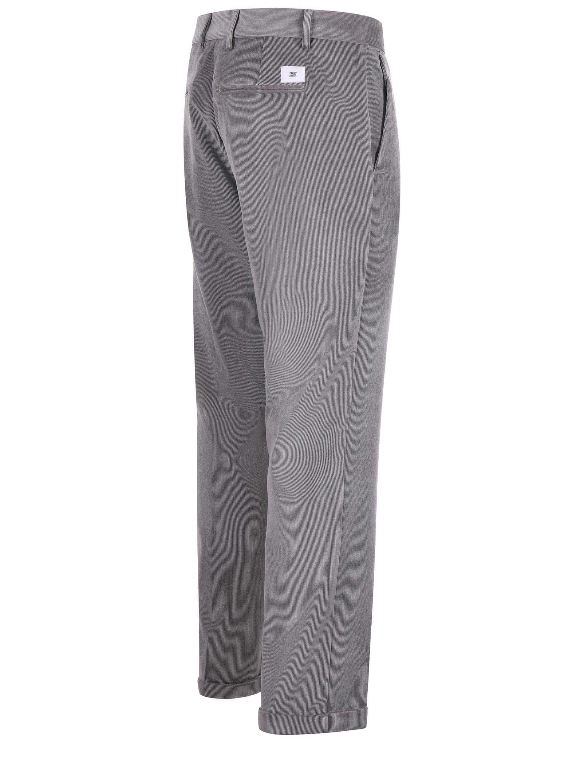 Pantaloni PMDS in velluto millerighe Grigio. Tasche america. Tasche posteriori a filo. Passanti per cintura. Risvolto cucito al fondo.