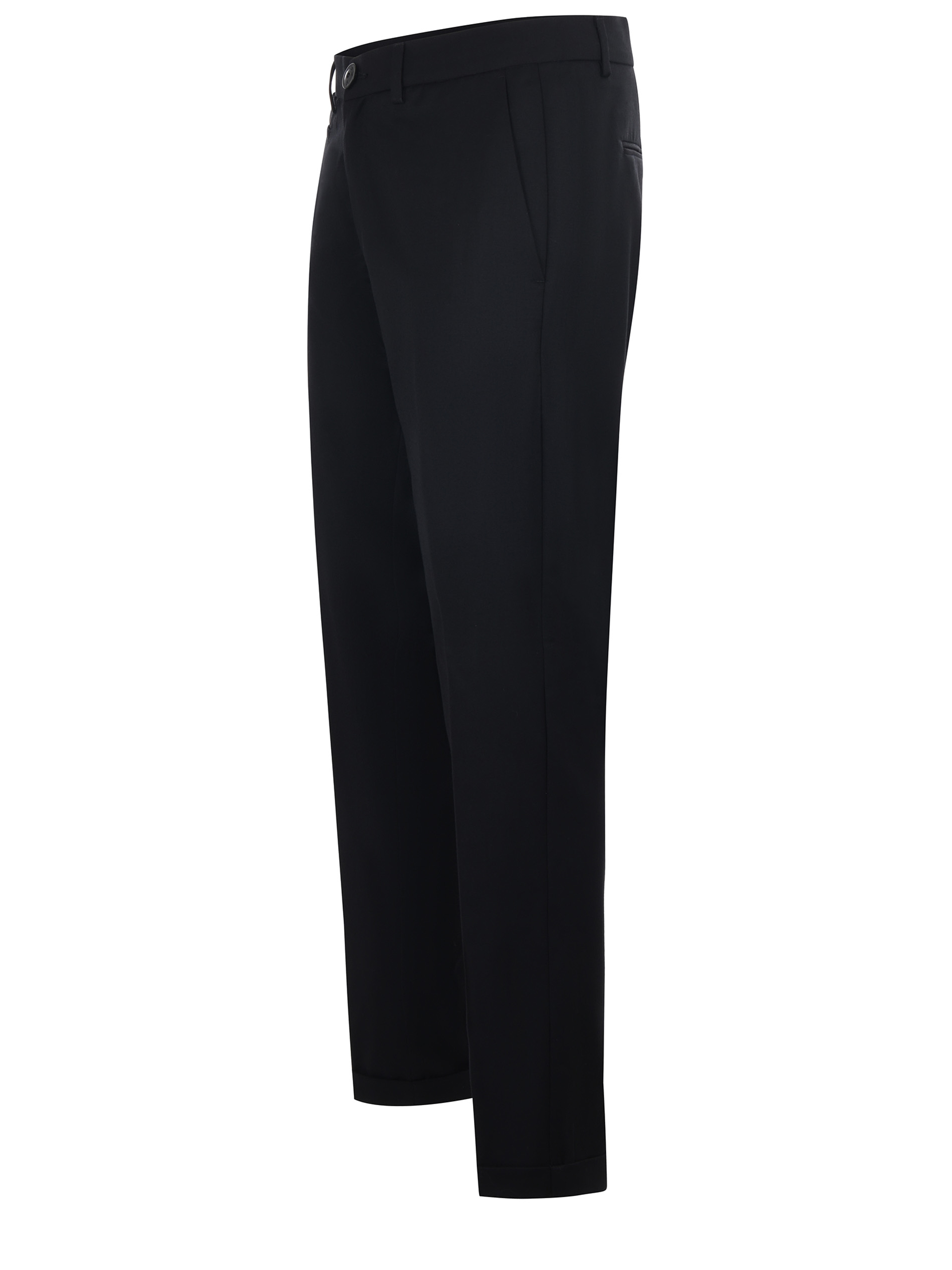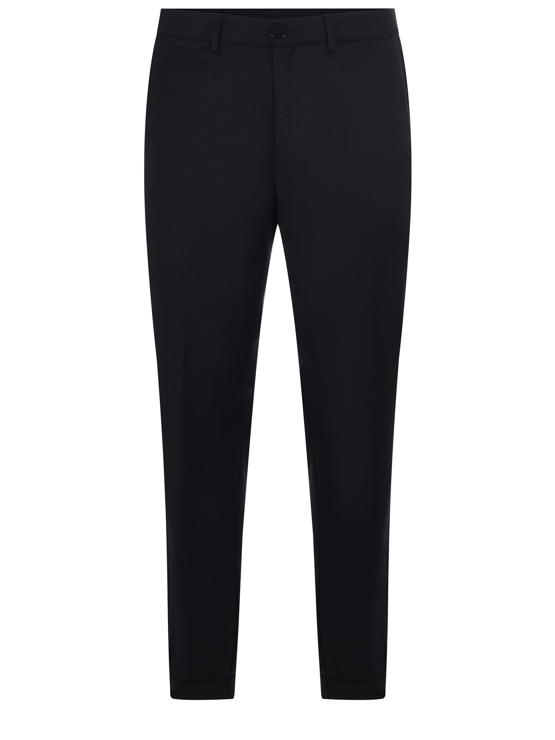 Pantaloni PMDS in twill di lana stretch Nero. Tasche america. Tasche posteriori a filo. Passanti per cintura. Risvolto cucito al fondo.