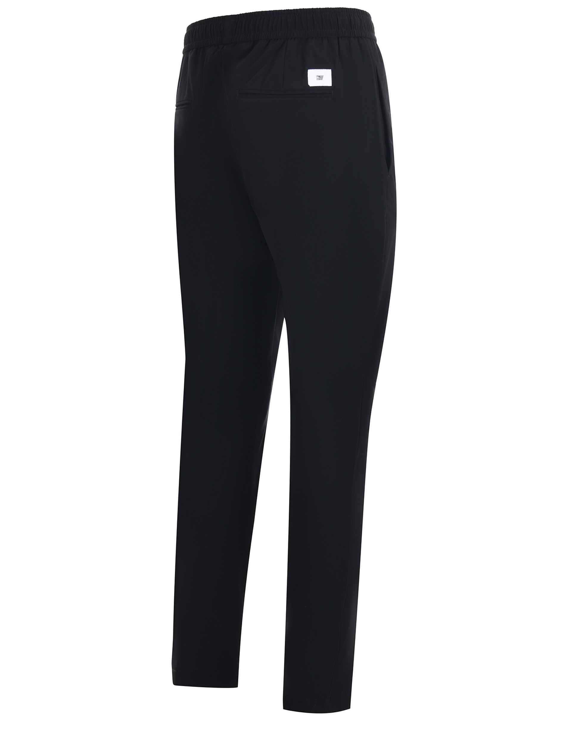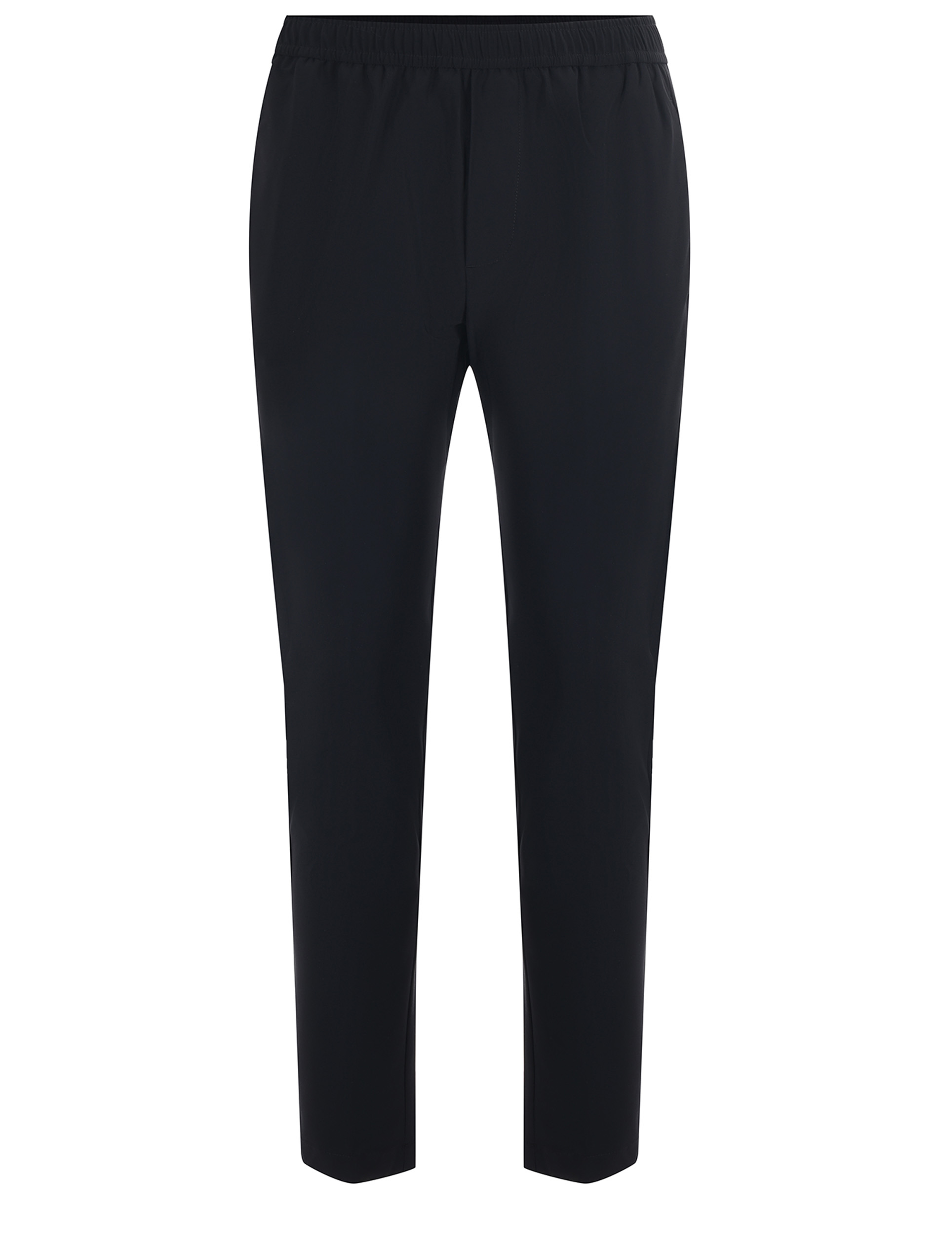 Pantaloni PMDS in tessuto tecnico Nero. Elastico in vita con coulisse. Due tasche a filo. Tasche posteriori a filo. Slim fit.