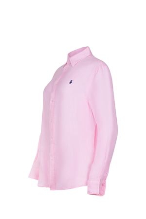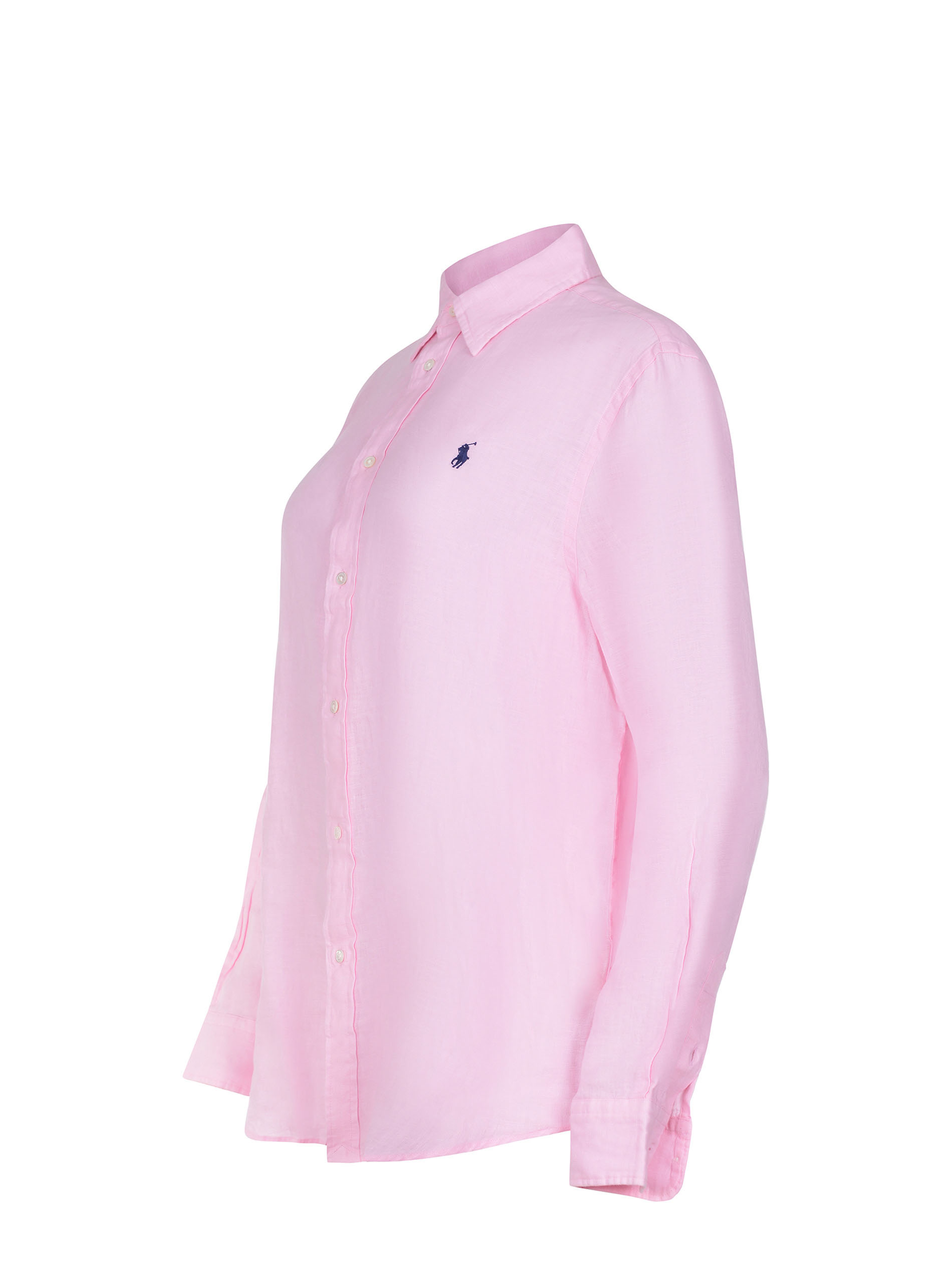 Camicia Polo Ralph Lauren realizzata in lino di colore Rosa.