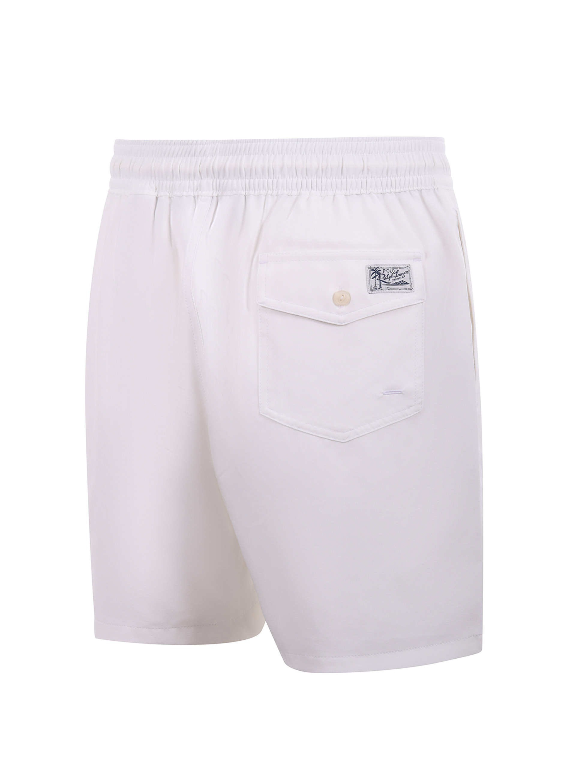Costume Polo Ralph Lauren in nylon stretch Bianco. Elastico in vita con coulisse. Tasche a filo. Tasca posteriore con pattina. Foderato con rete elastica. Logo laterale.