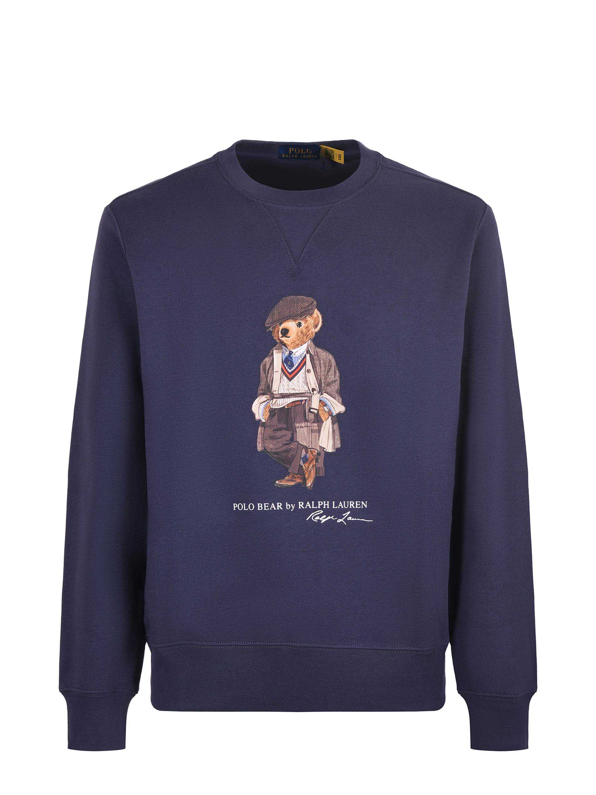Felpa Polo Ralph Lauren in misto cotone Blu scuro. Girocollo a costine. Stampa "Polo Bear" frontale. Polsi e fondo a costine. Interno in pile.