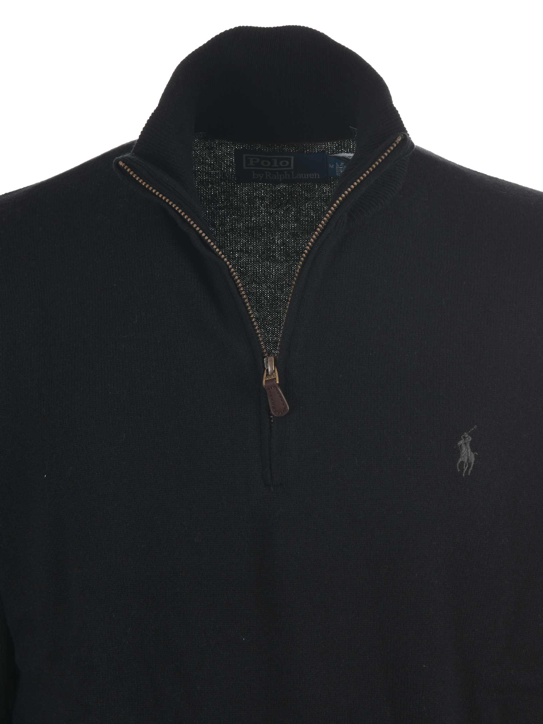 Maglia Polo Ralph Lauren in lana Nera. Collo alto a coste con zip. Manica lunga. Polsi e fondo a coste. Logo frontale ricamato in tono.