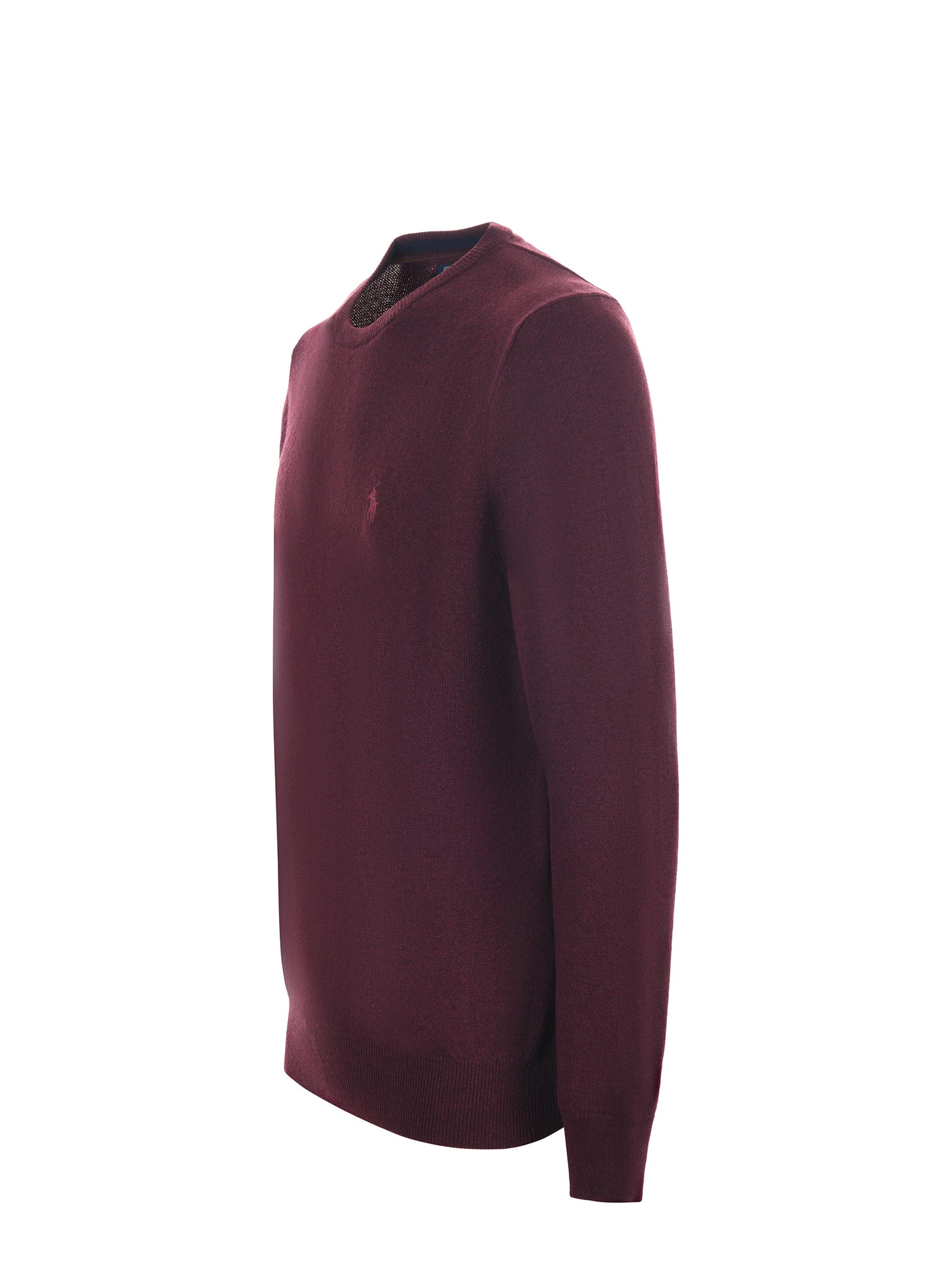 Maglia Polo Ralph Lauren in lana Bordeaux. Girocollo a costine. Manica lunga. Polsi e fondo a costine. Slim fit. Logo frontale ricamato in tono.