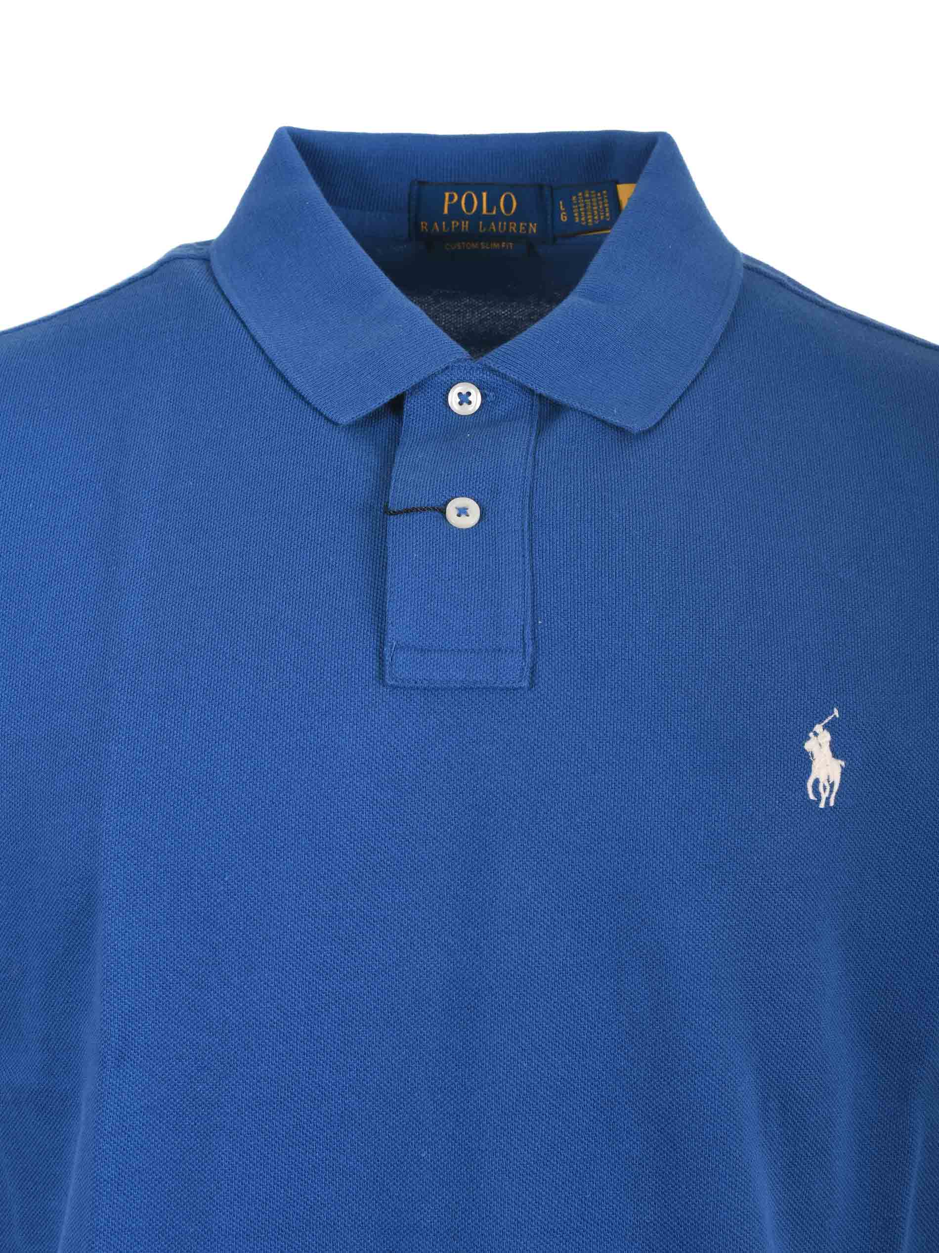 Polo "Polo Ralph Lauren" in piquet di cotone Azzurro. Colletto a costine. Chiusura con 2 bottoni. Manica corta. Logo frontale ricamato. Spacchetti al fondo. Custom slim fit.