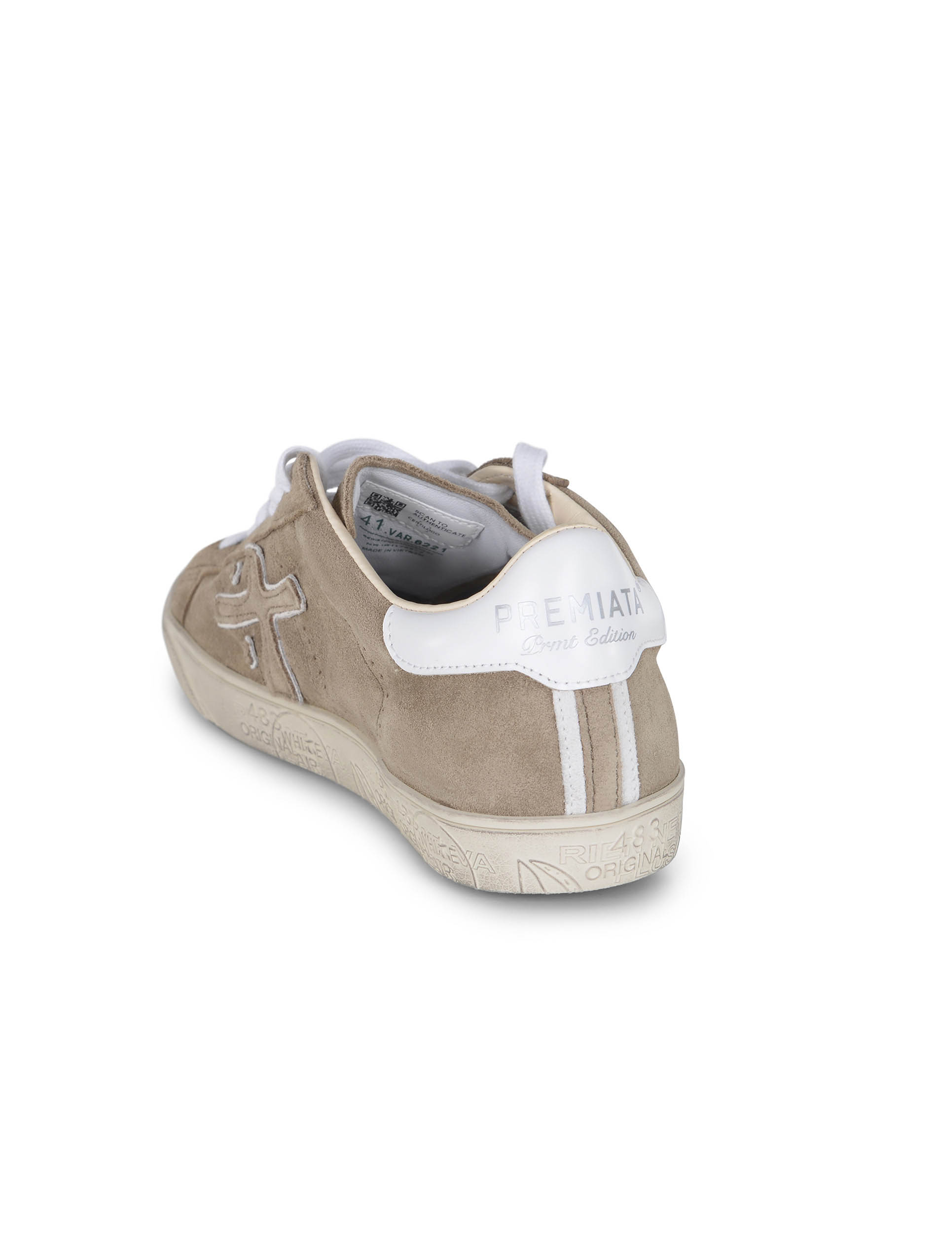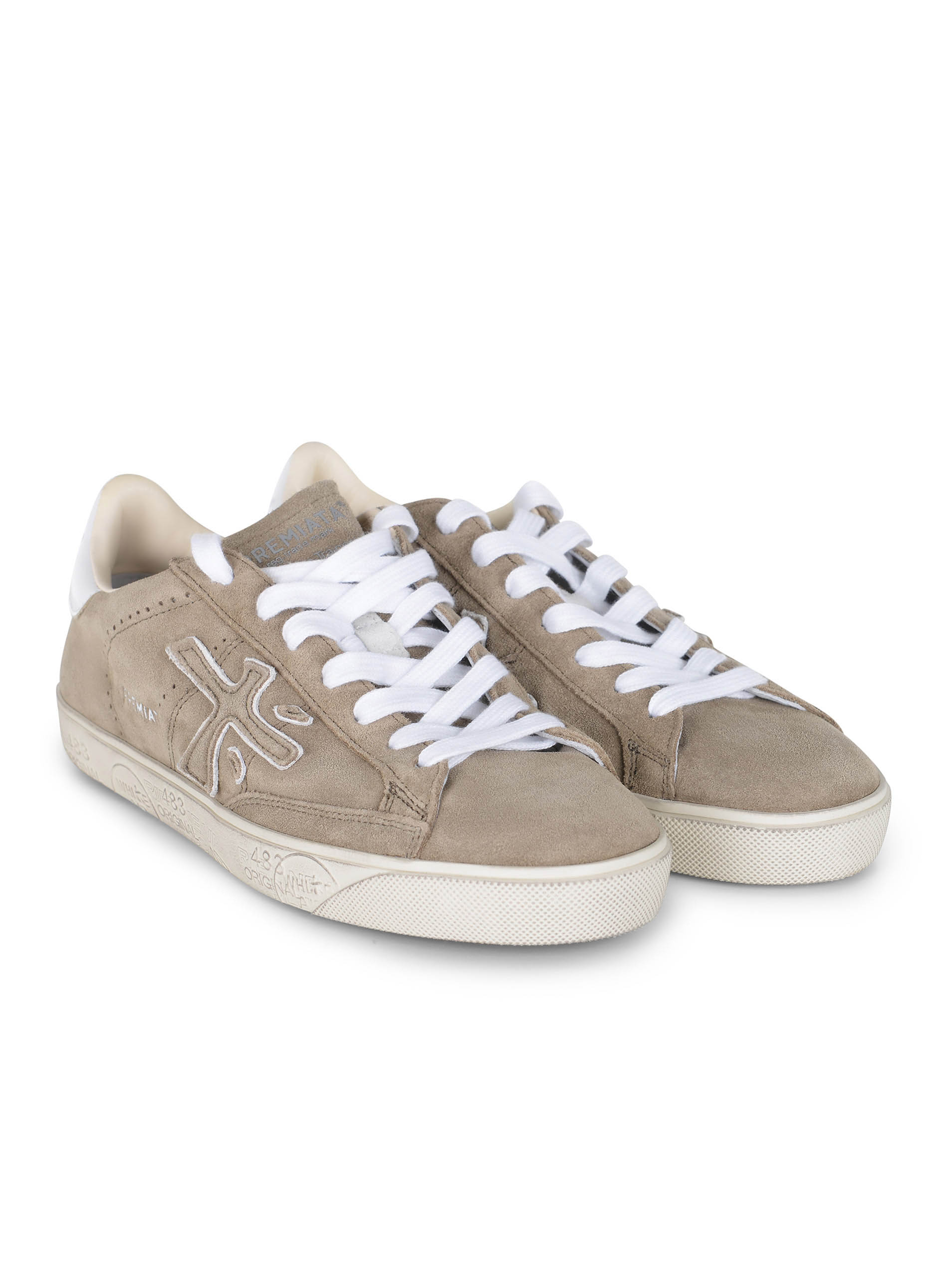 Sneakers Premiata realizzate in pelle scamosciata di colore Sabbia.