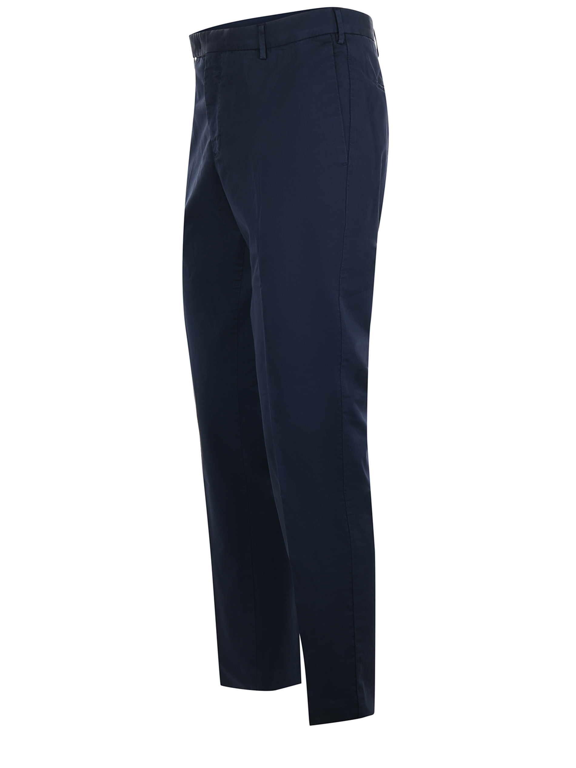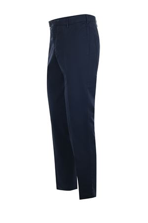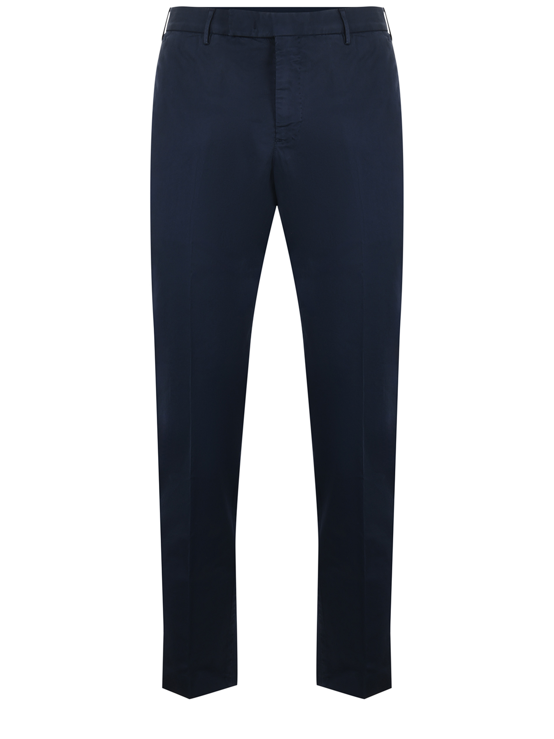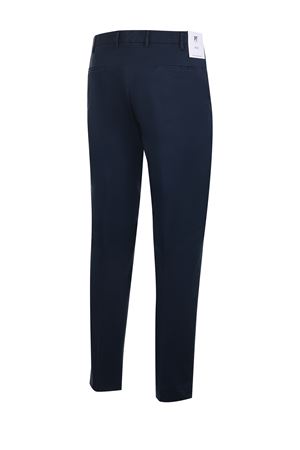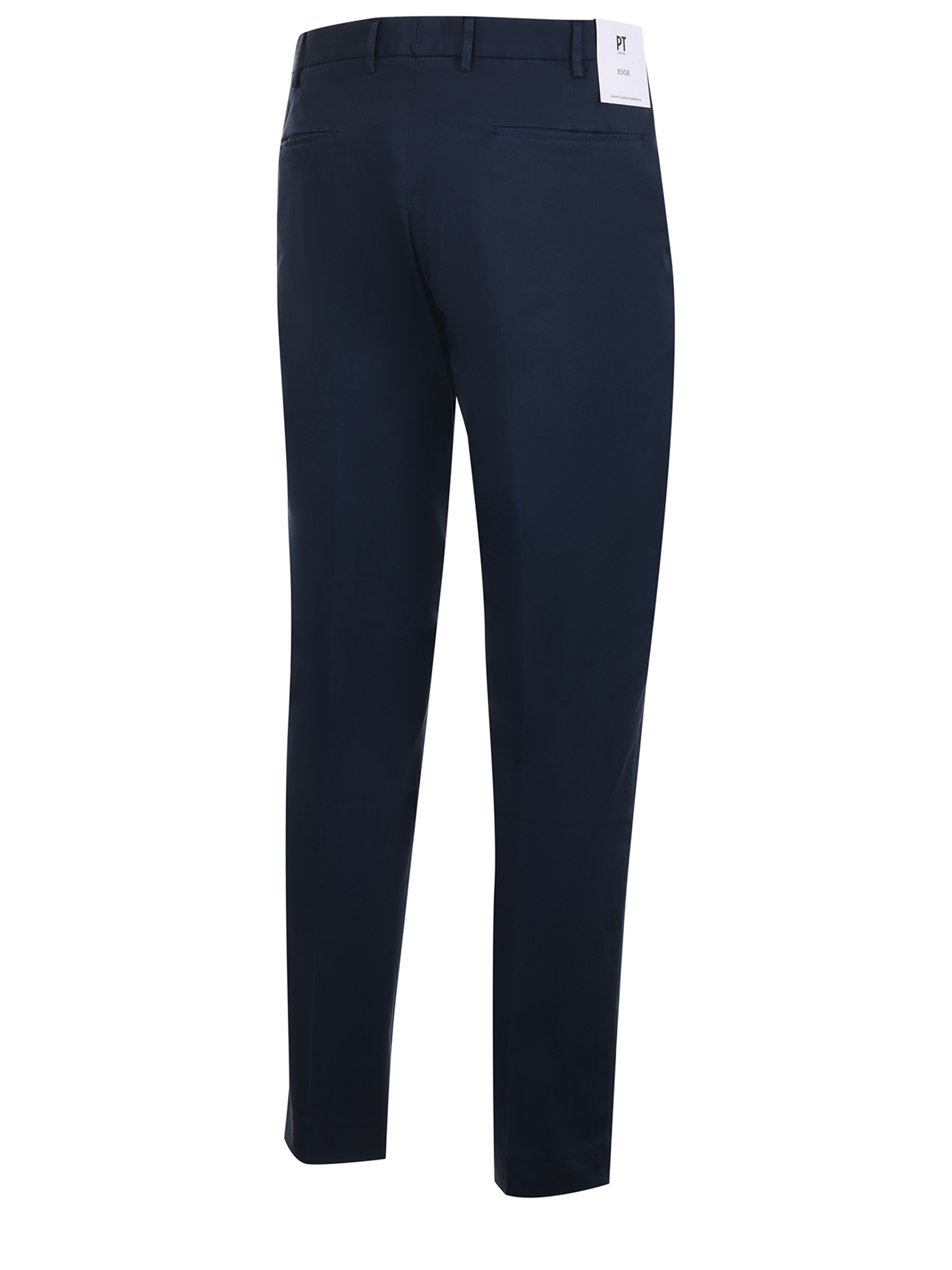 Pantaloni PT in gabardina stretch Blu scuro. Tasche america. Tasche posteriori a filo. Gamba dritta. Chiusura con zip e gancio.