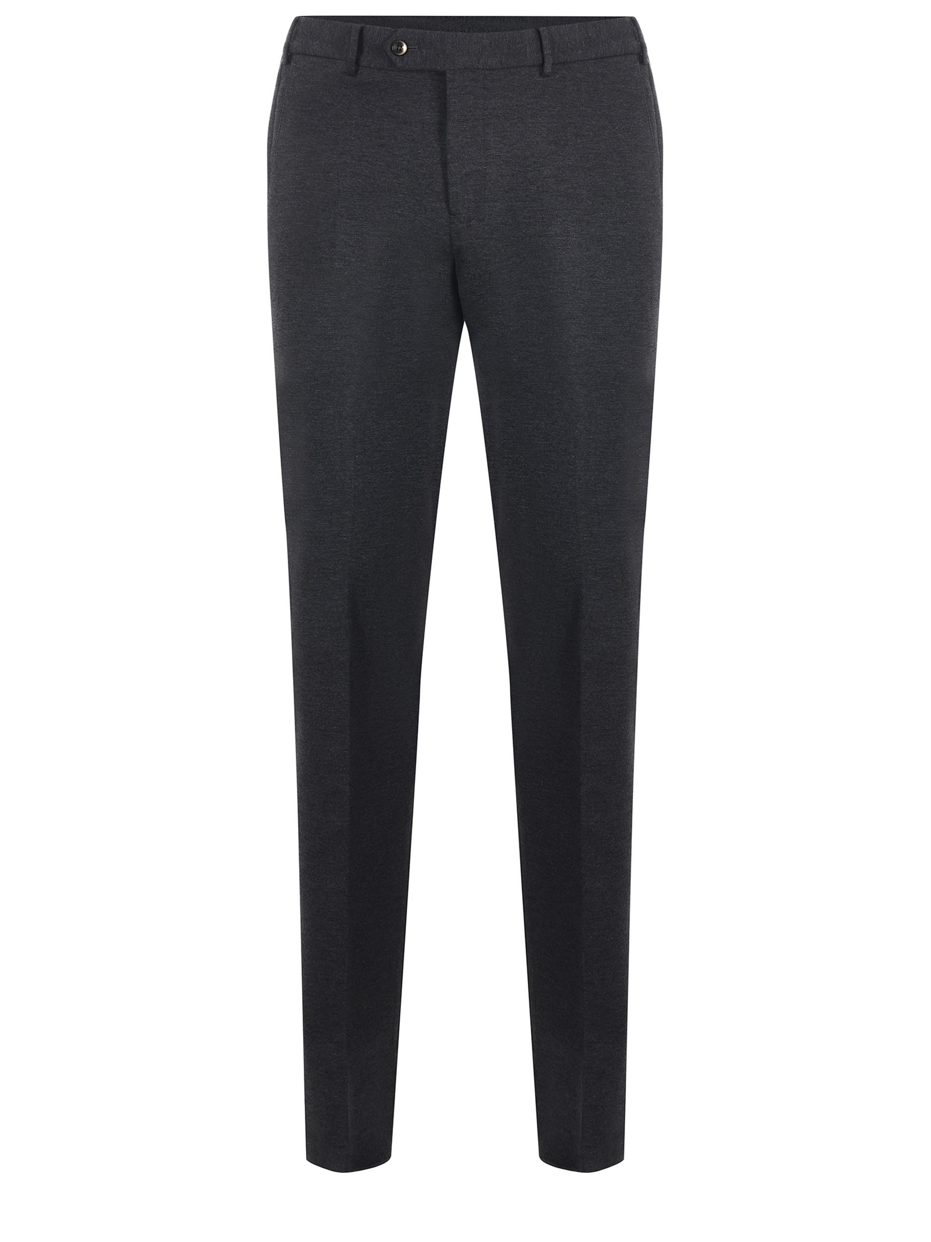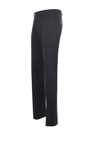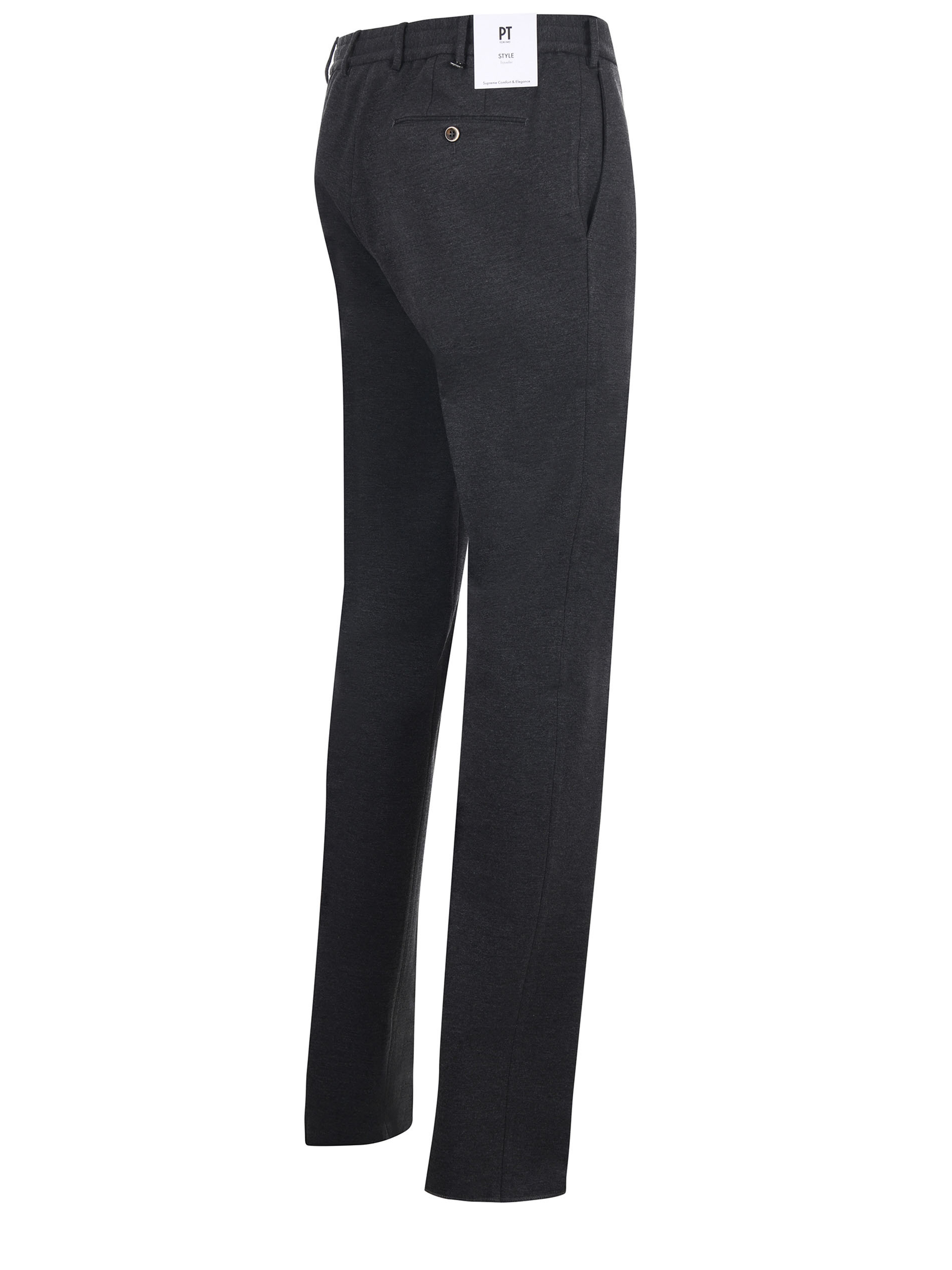 Pantaloni PT in tessuto punto milano Grigio scuro. Elastici in vita con coulisse. Passanti per cintura. Chiusura con bottone e zip. Tasche america. Tasche a filo posteriori. Modello jogger.