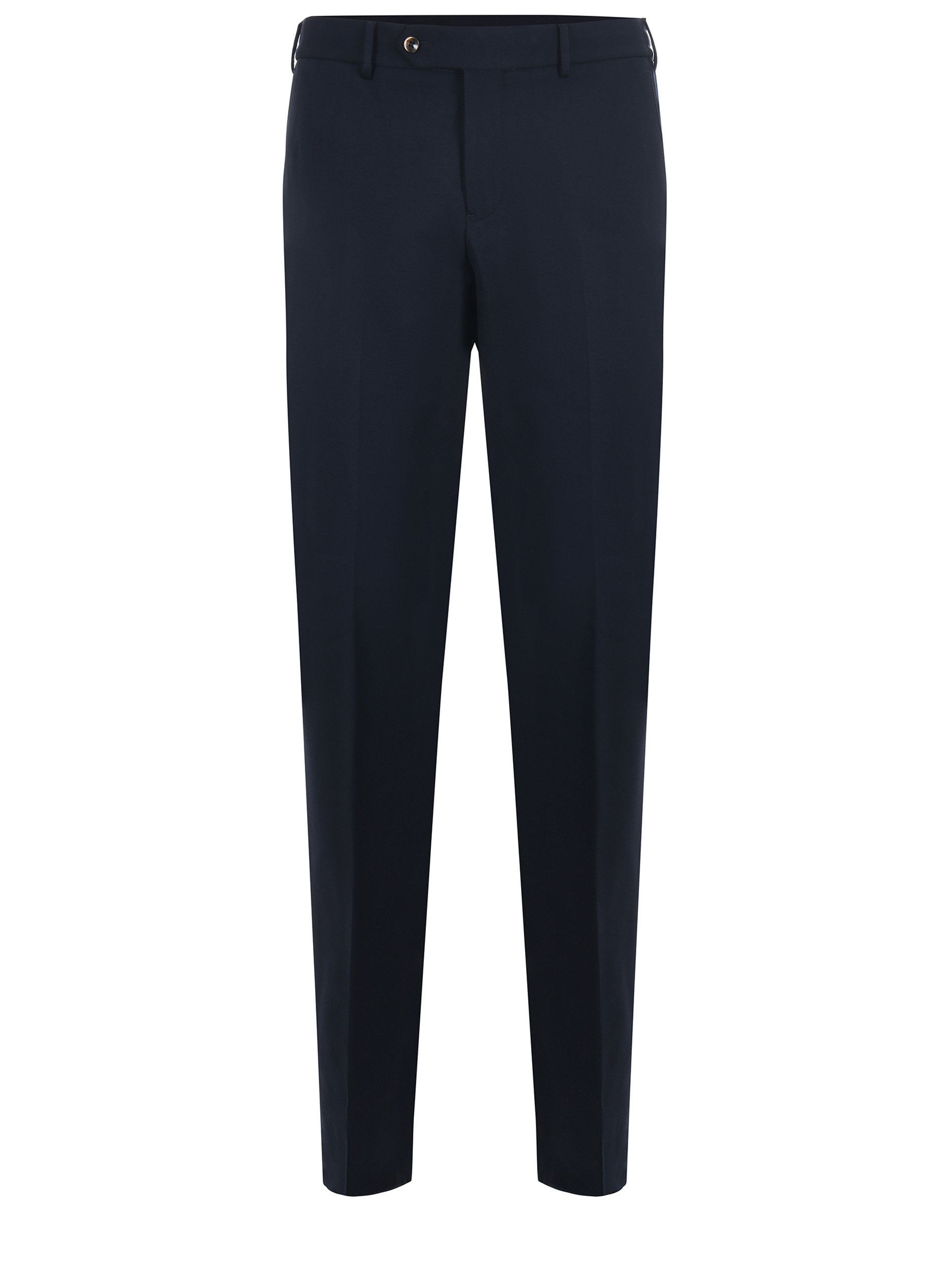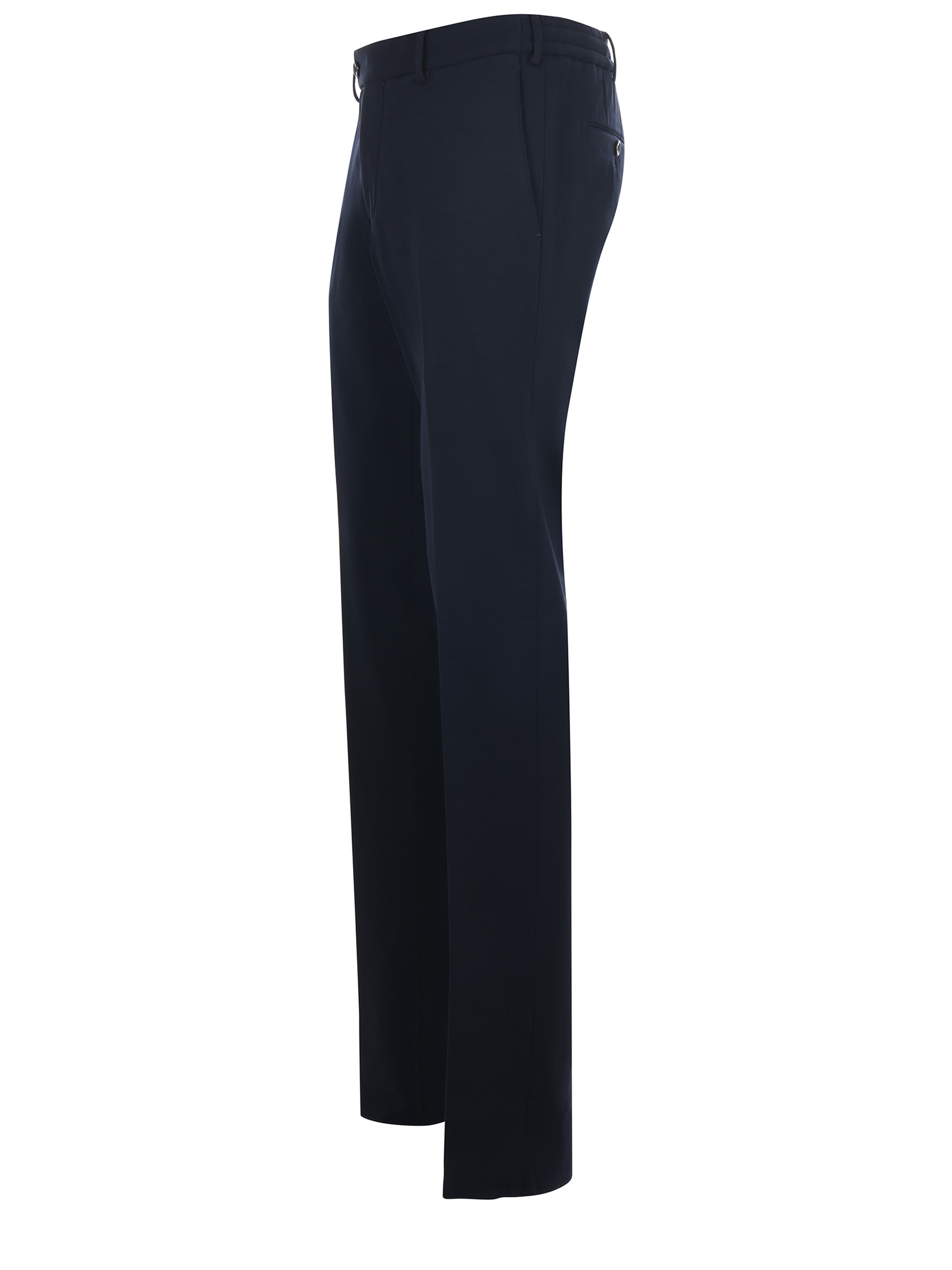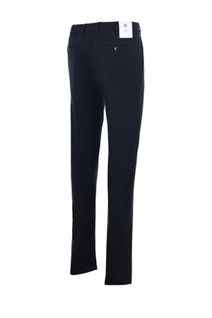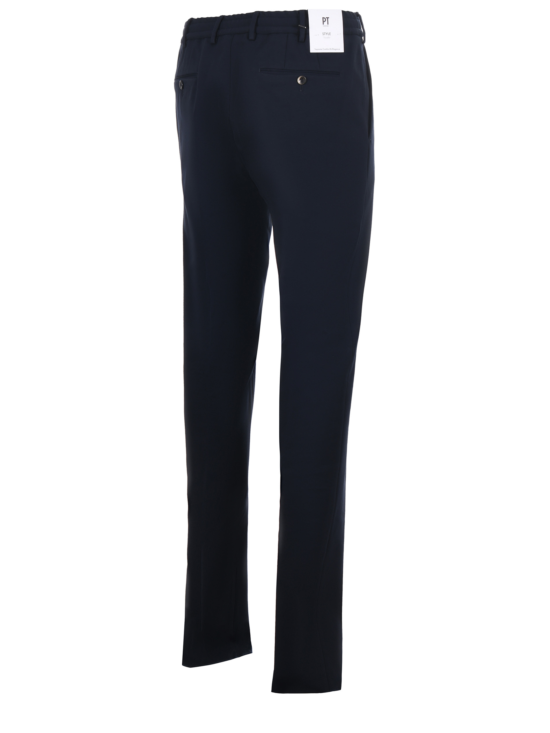 Pantaloni PT in tessuto punto milano Blu scuro. Elastici in vita con coulisse. Passanti per cintura. Chiusura con bottone e zip. Tasche america. Tasche a filo posteriori. Modello jogger.