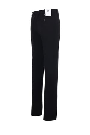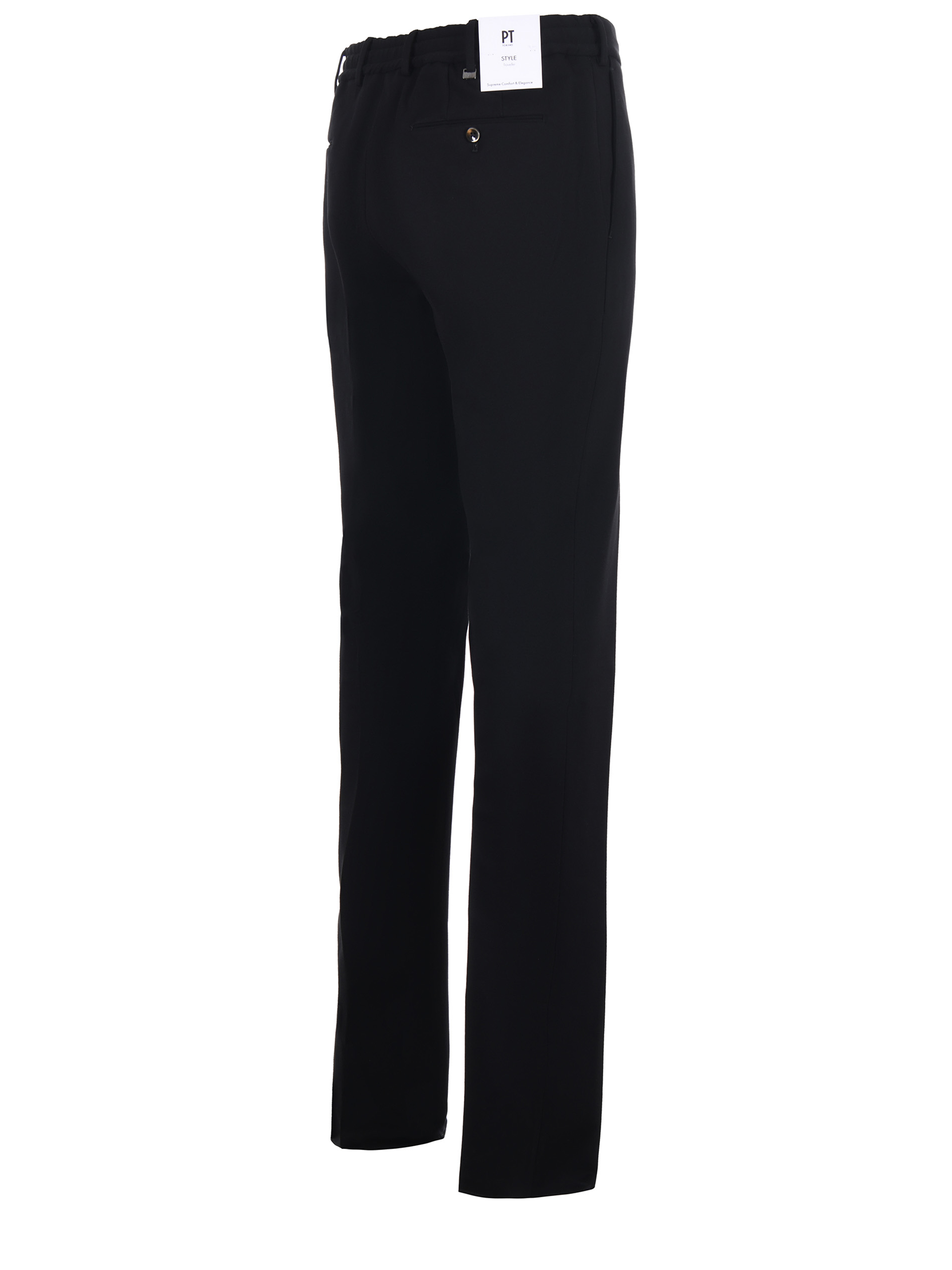 Pantaloni PT in tessuto punto milano Nero. Elastici in vita con coulisse. Passanti per cintura. Chiusura con bottone e zip. Tasche america. Tasche a filo posteriori. Modello jogger.