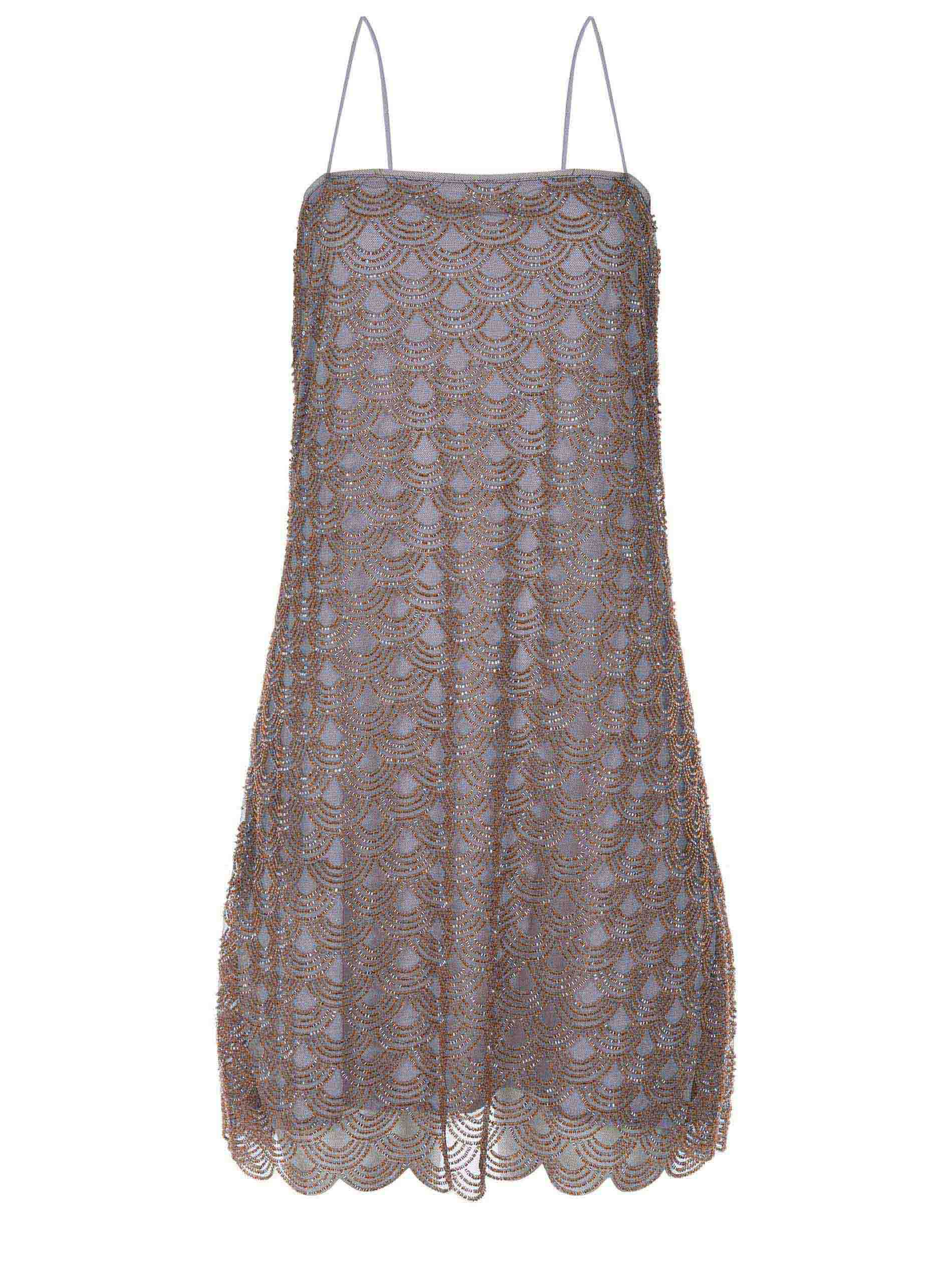 Dettagli all-over con paillettes tono su tono.