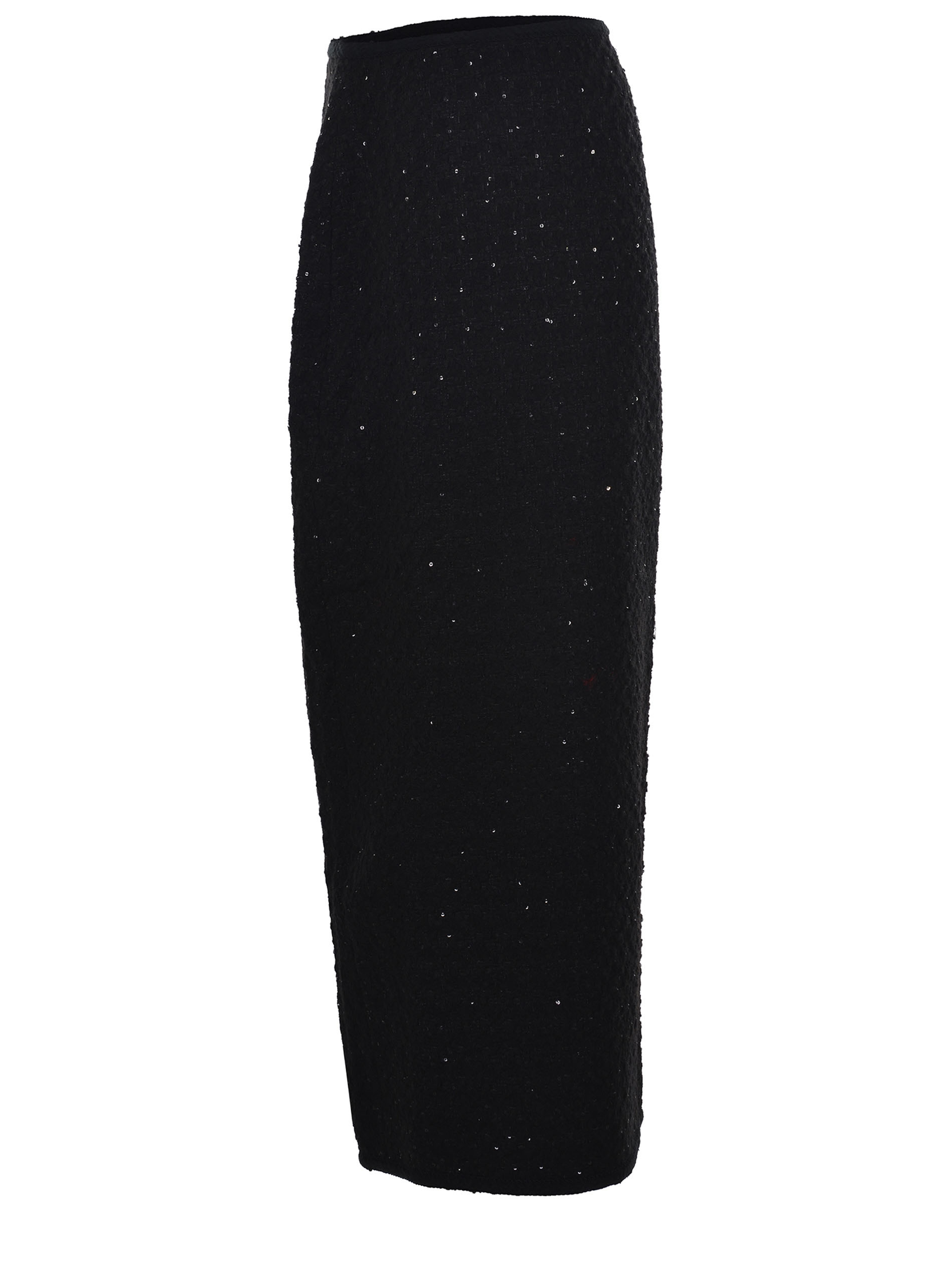 Gonna midi Rotate realizzata in bouclé di colore Nero. Dettaglio micropailettes tono su tono.