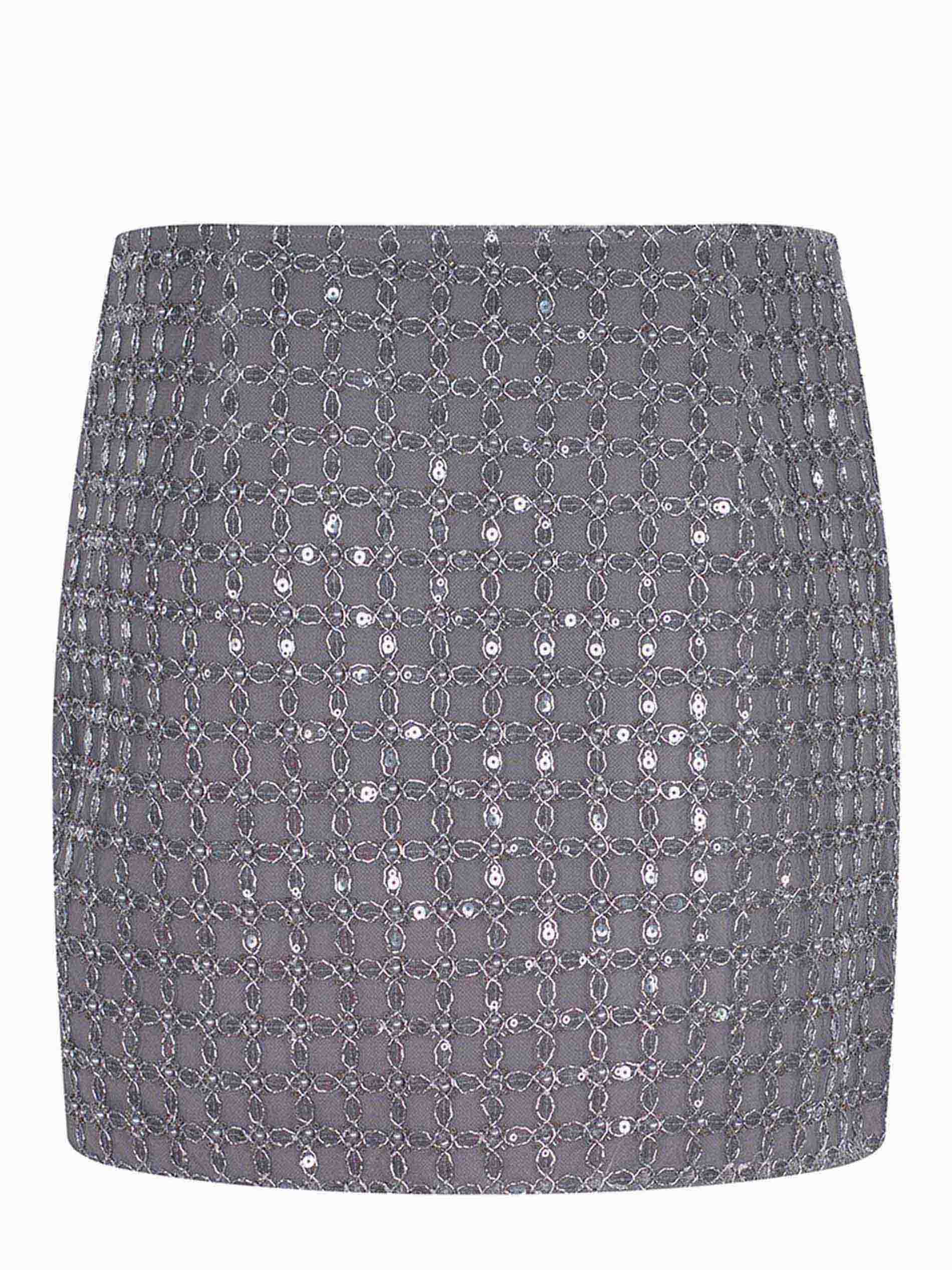 Motivo con paillettes tono su tono applicate all-over.