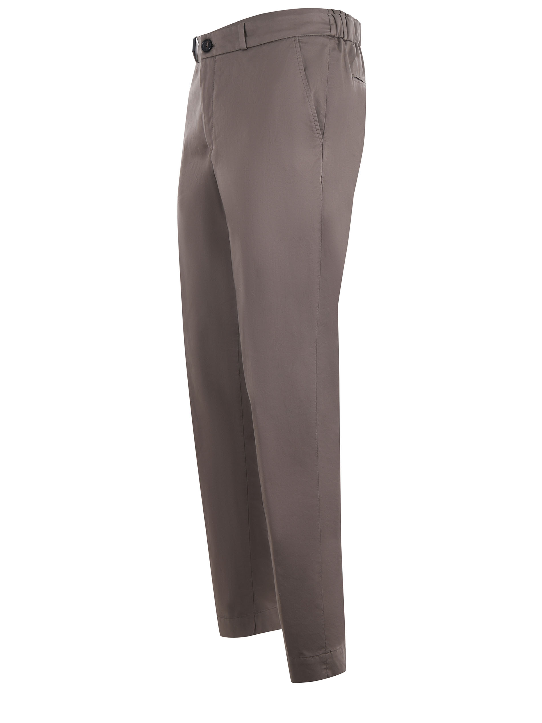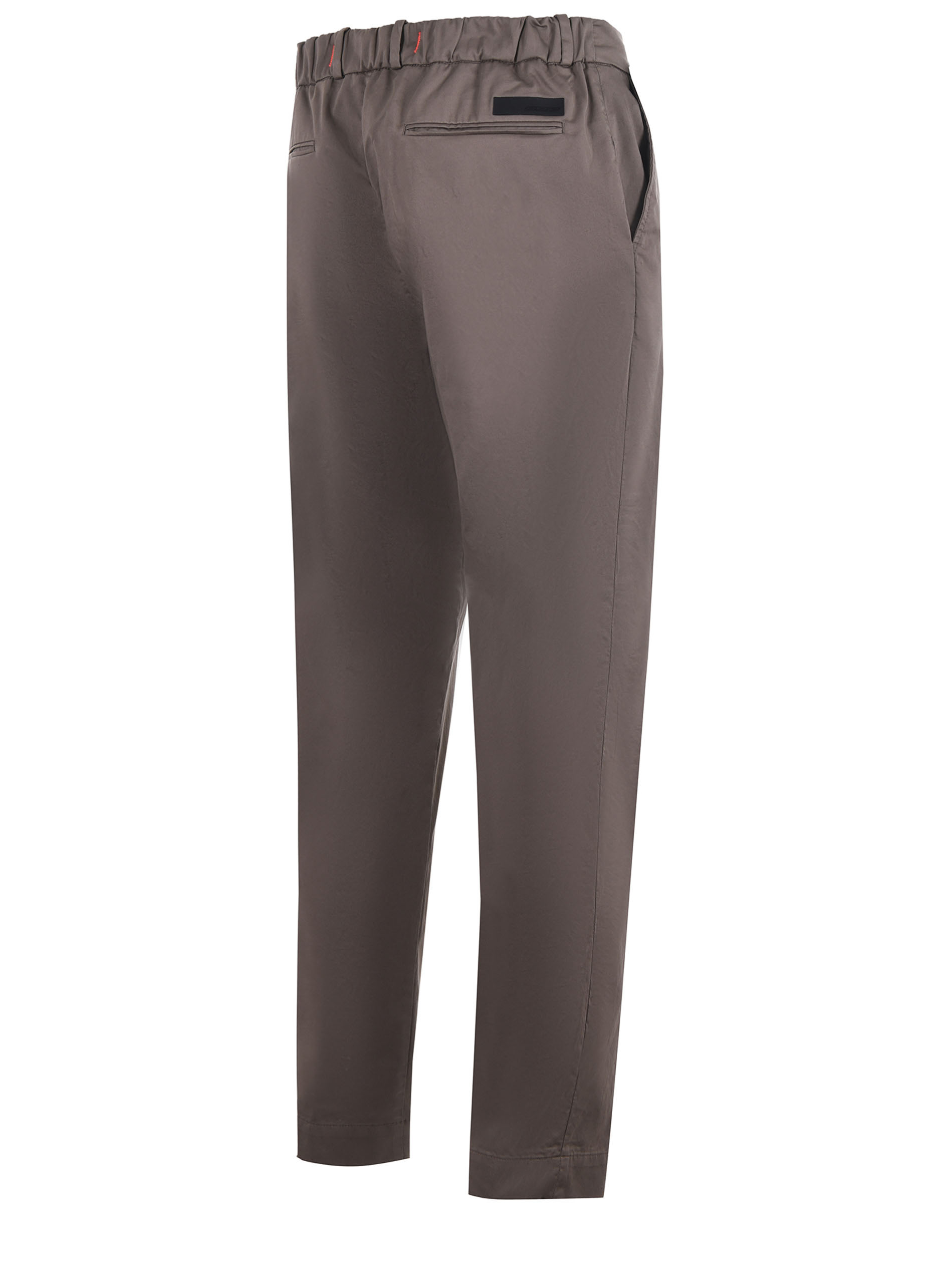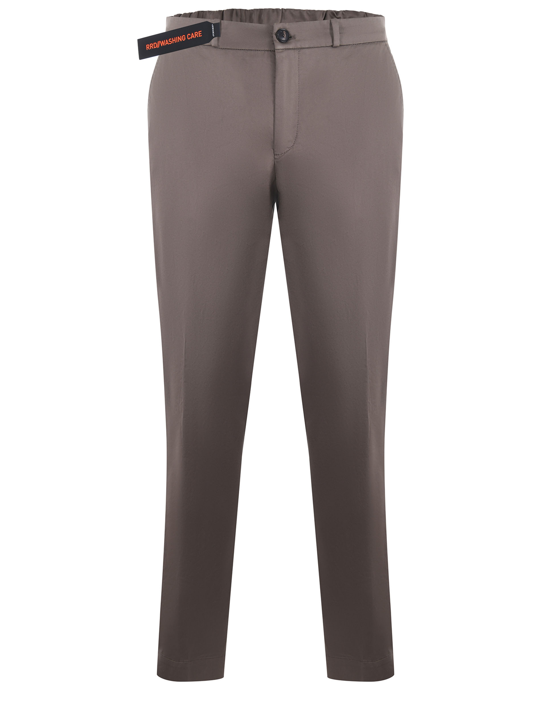 Pantaloni RRD "Cottech Chino" in gabardine color Fango. Elastico al punto vita. Tasche america. Tasche a filo sul retro. Passanti per cintura. Chiusura con zip e bottone.