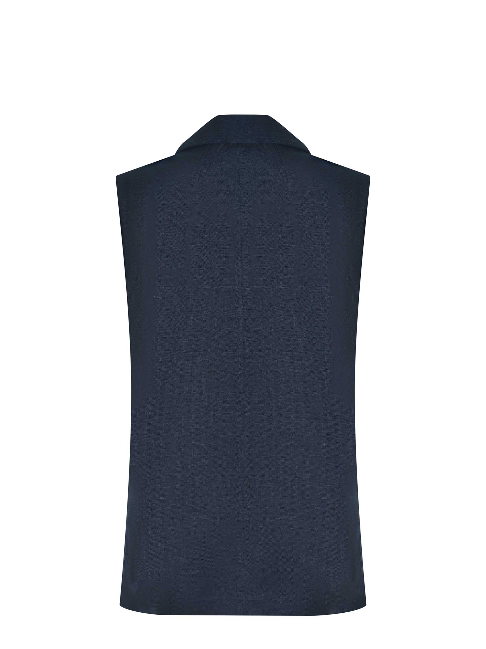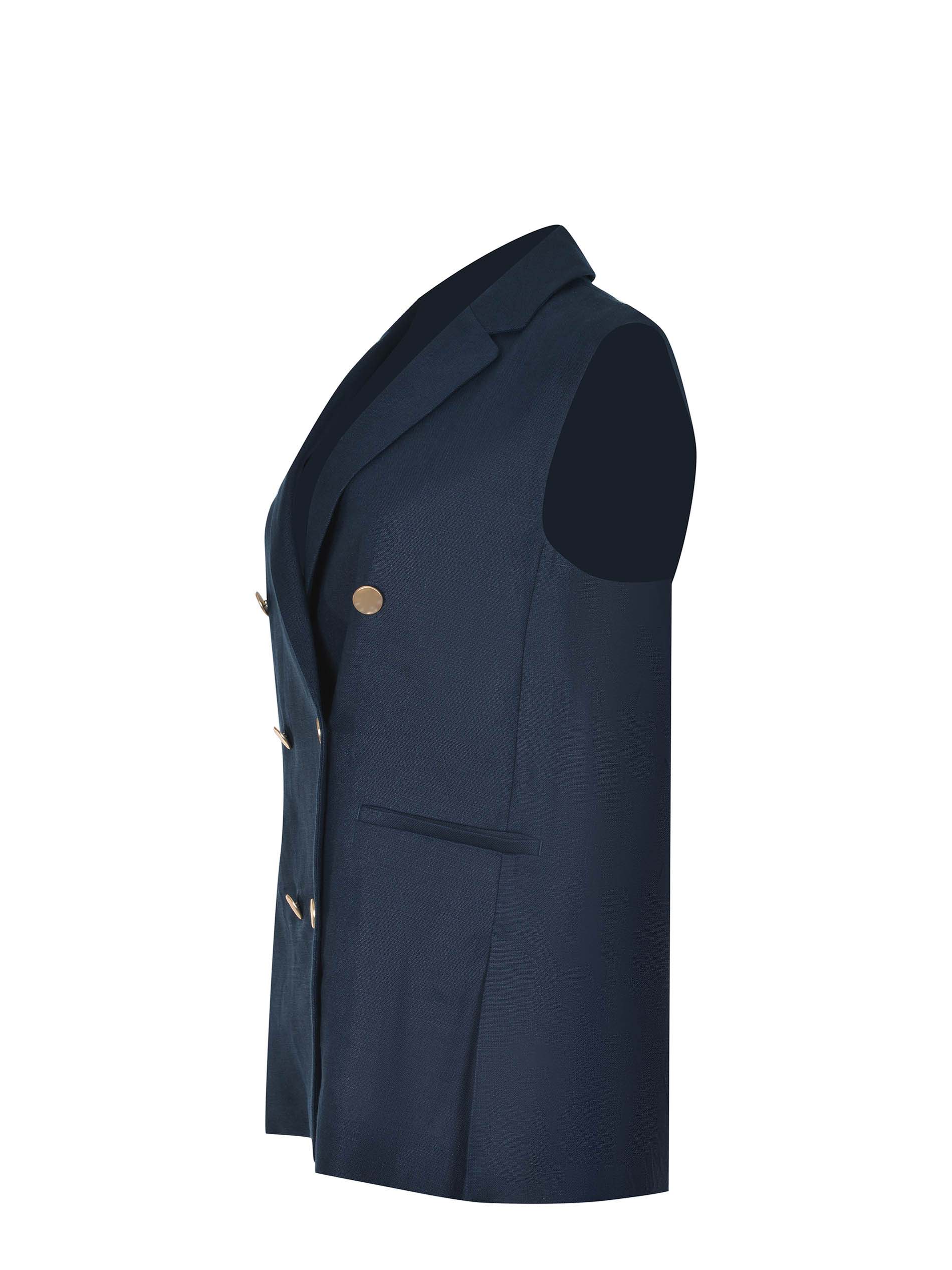 Gilet doppiopetto 'S Max Mara "SMMBird" in stuoia di lino di colore Blu notte. Collo a revers.