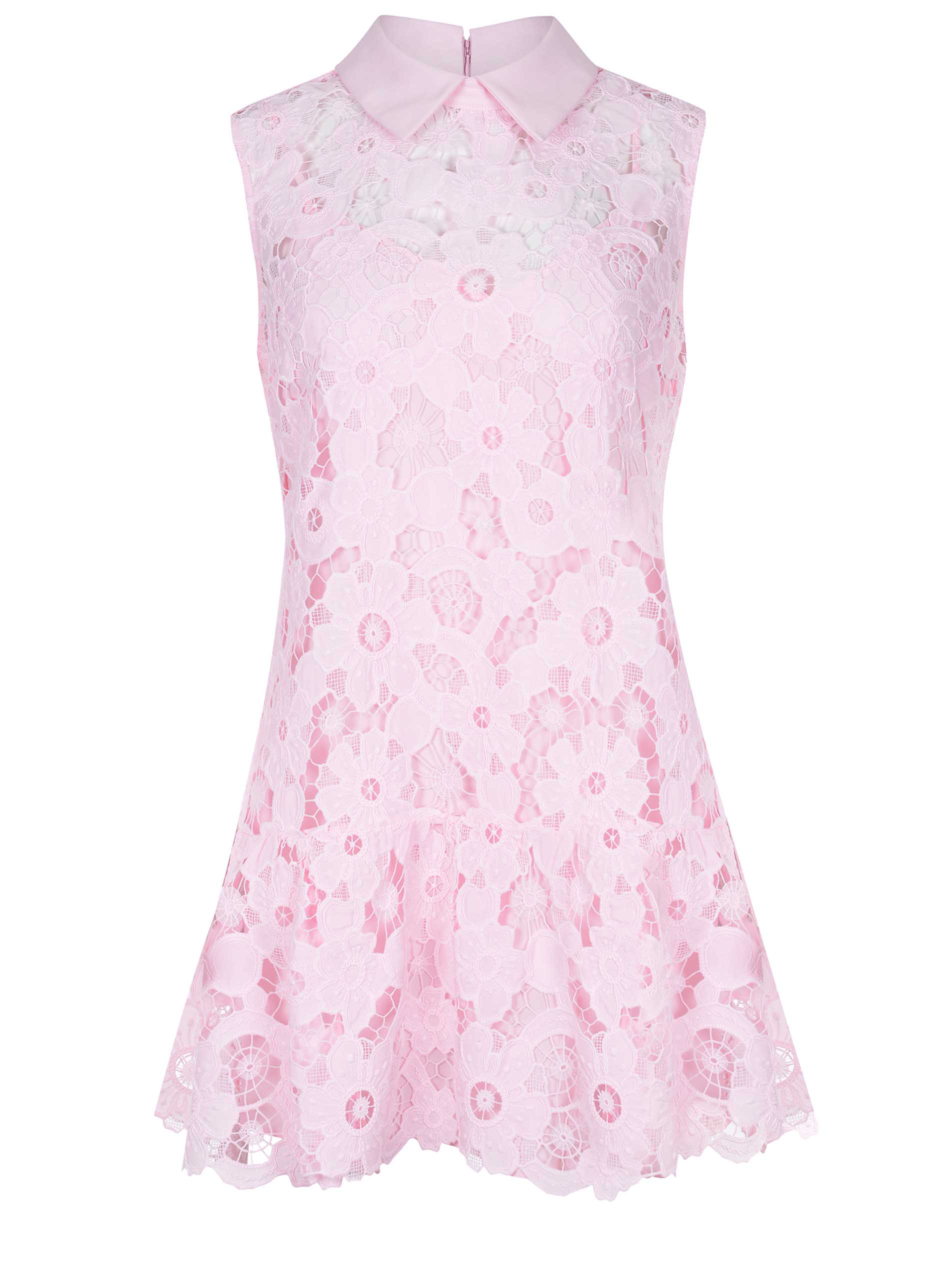 Abito Self-Portrait realizzato in bouclé di colore Rosa. Colletto a camicia.