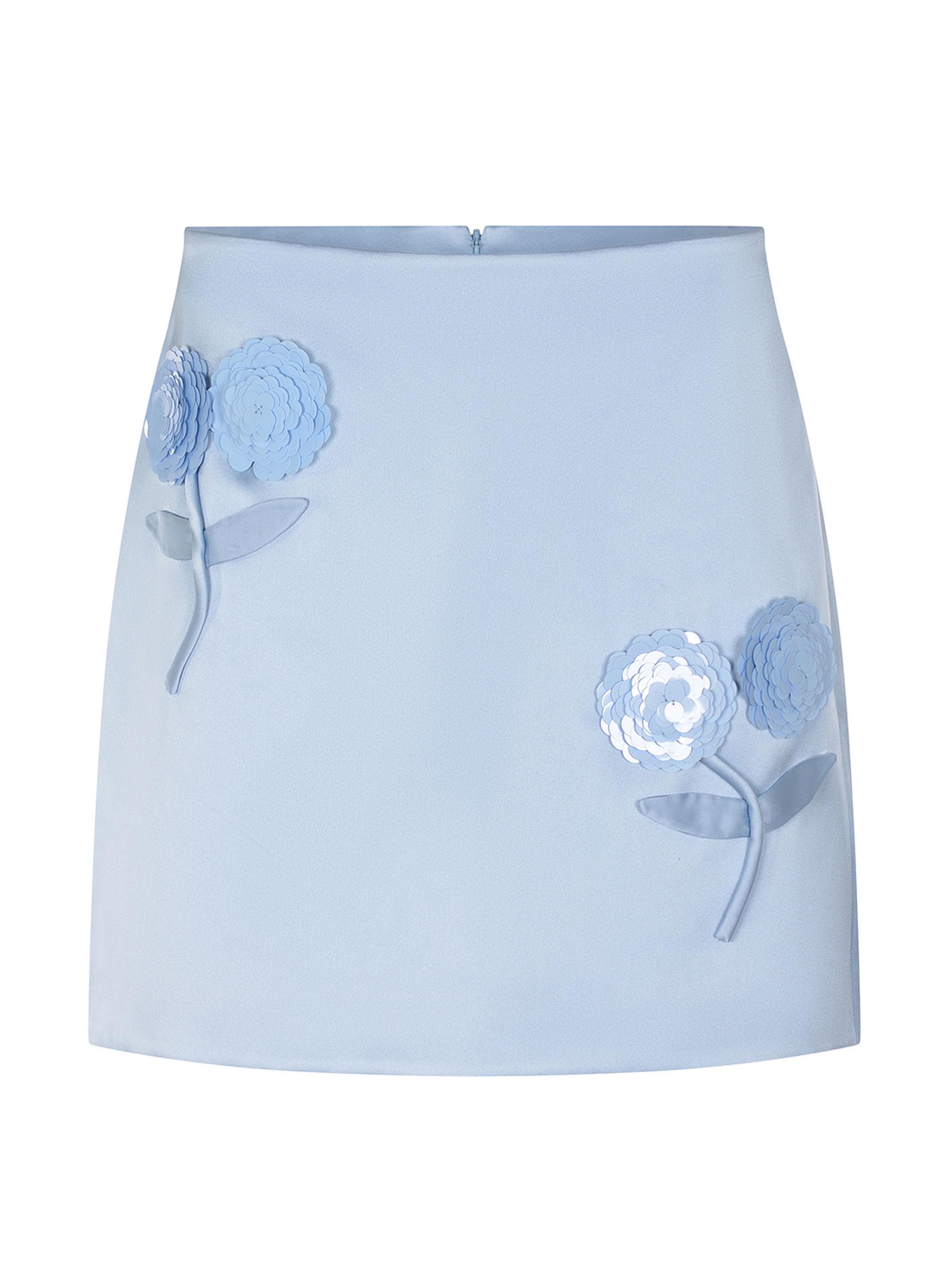 Gonna Self-Portrait realizzata in raso di colore Celeste.