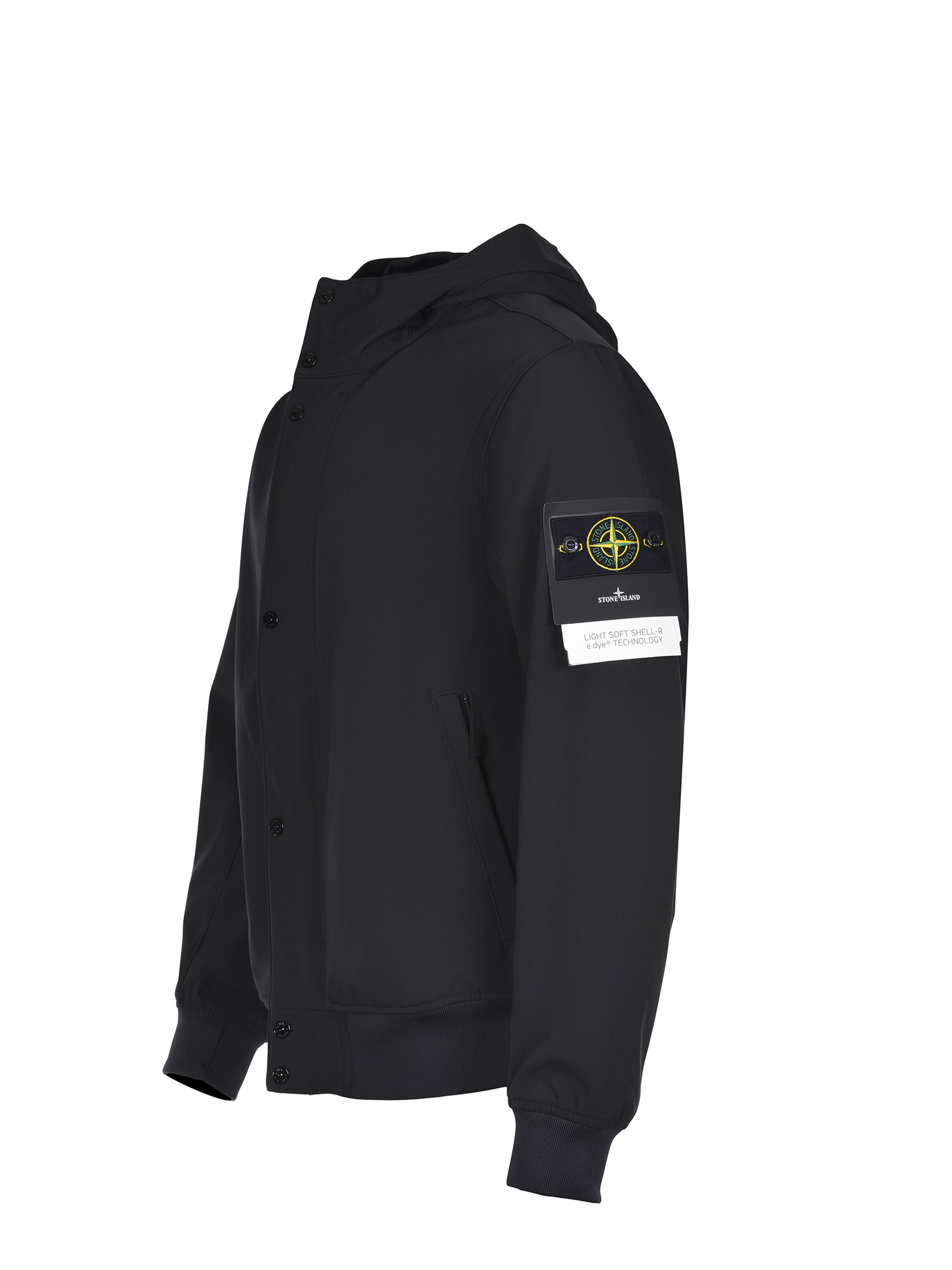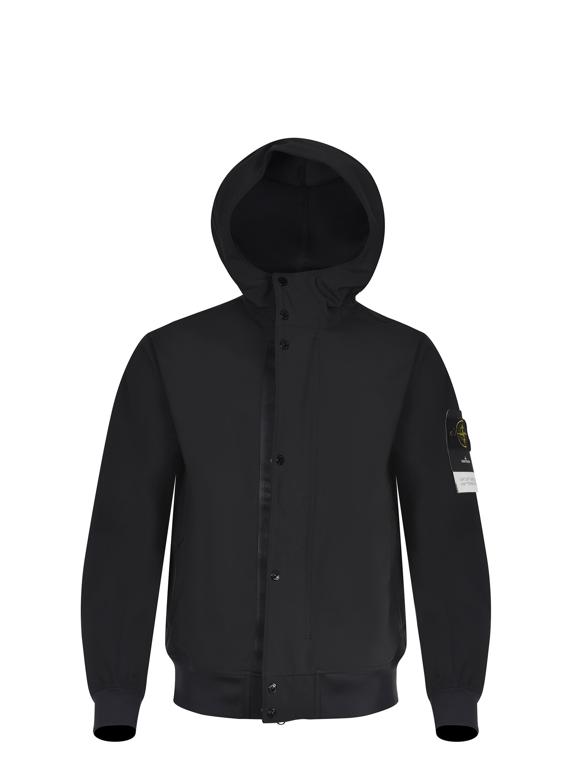 Giubbino Stone Island "Soft Shell-R" realizzato in materiale tecnico di colore Nero.