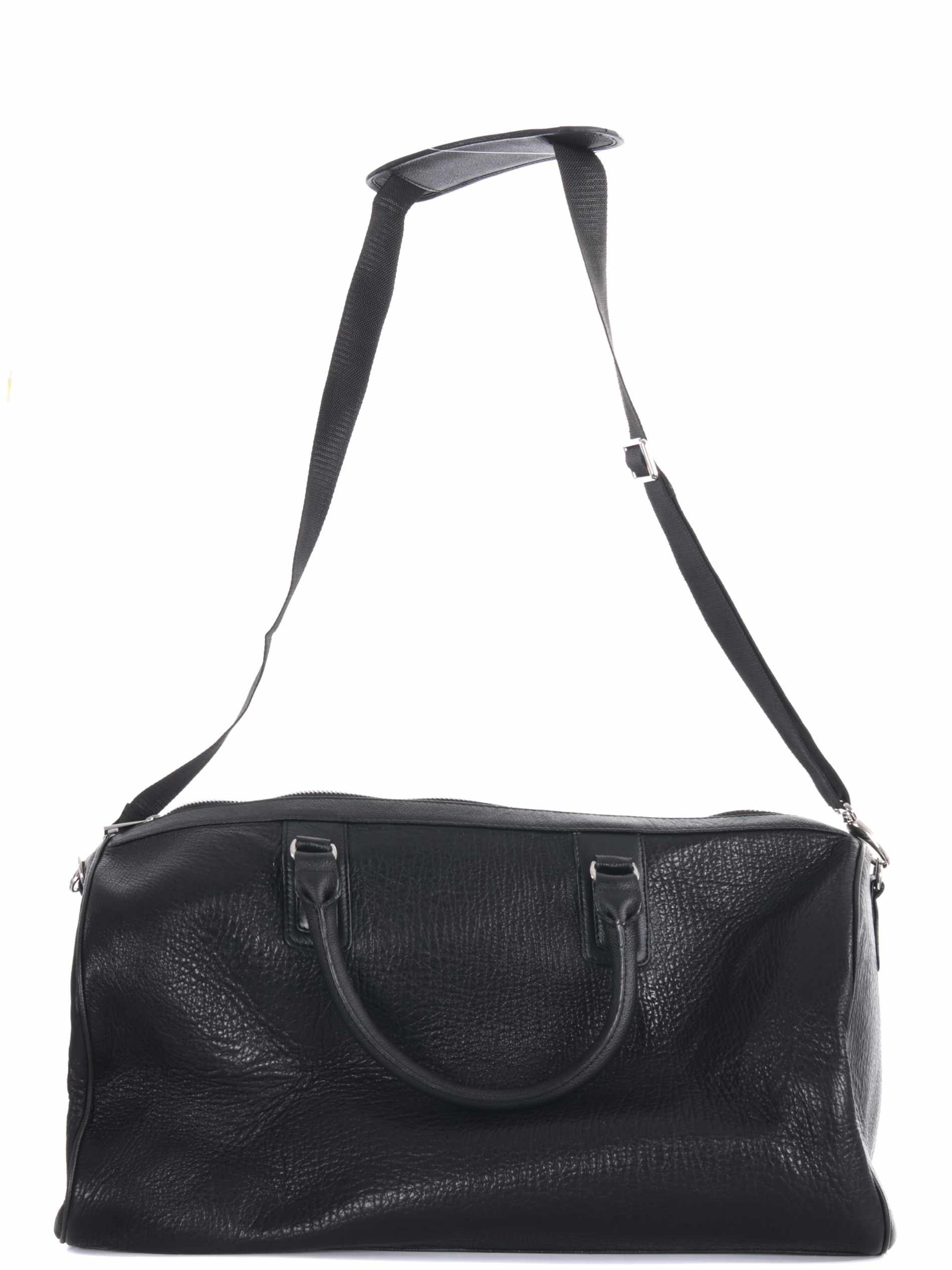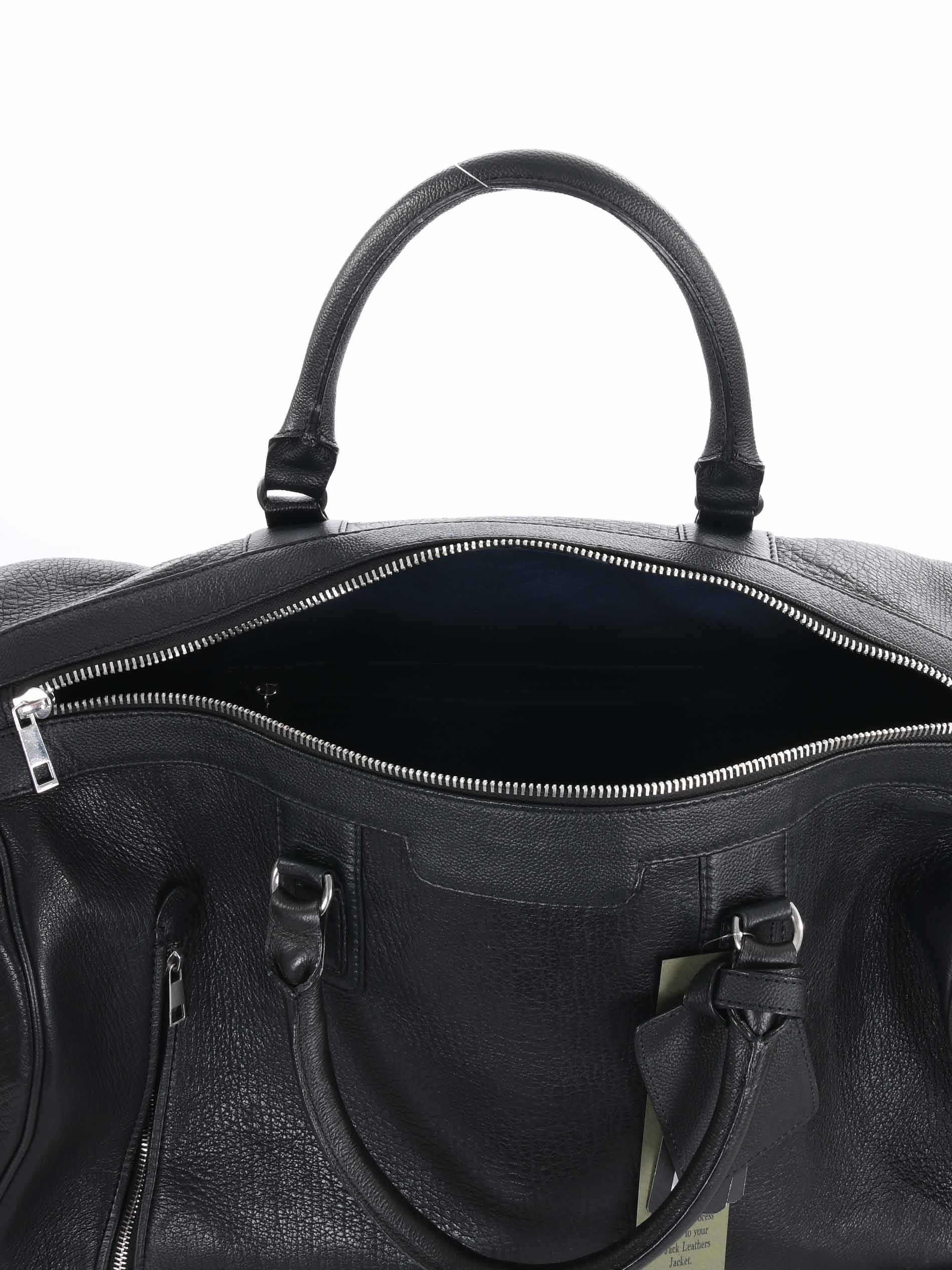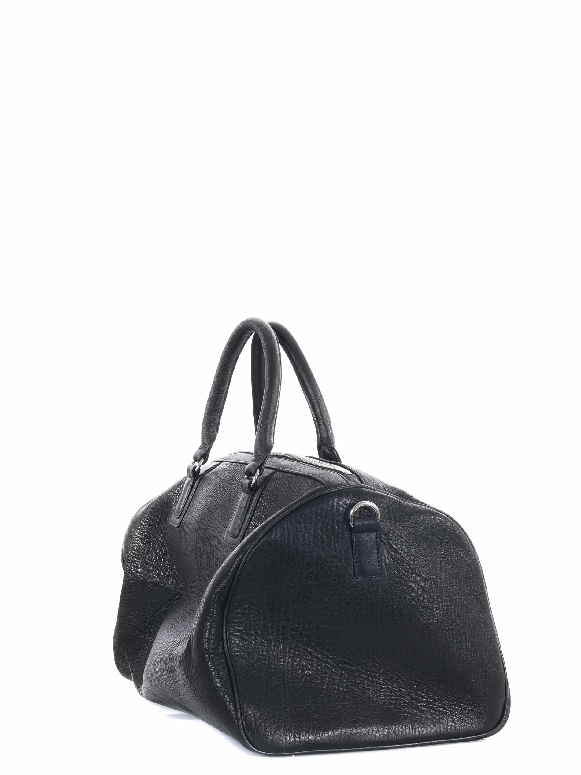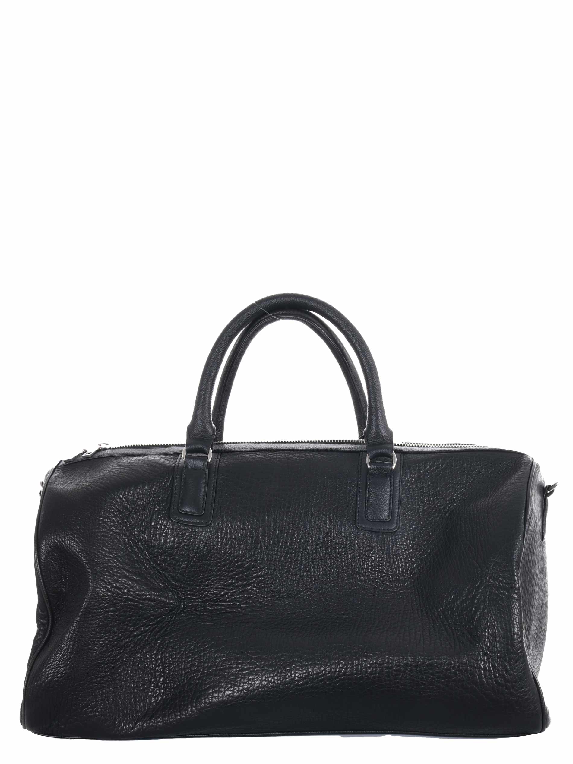 Borsone The Jack Leathers in pelle Nera effetto raggrinzito. Due manici semirigidi. Tracolla removibile. Tasche interne. Chiusura con zip doppio cursore. Foderata. Logo frontale. Tag pendente. Piedini metallici alla base.