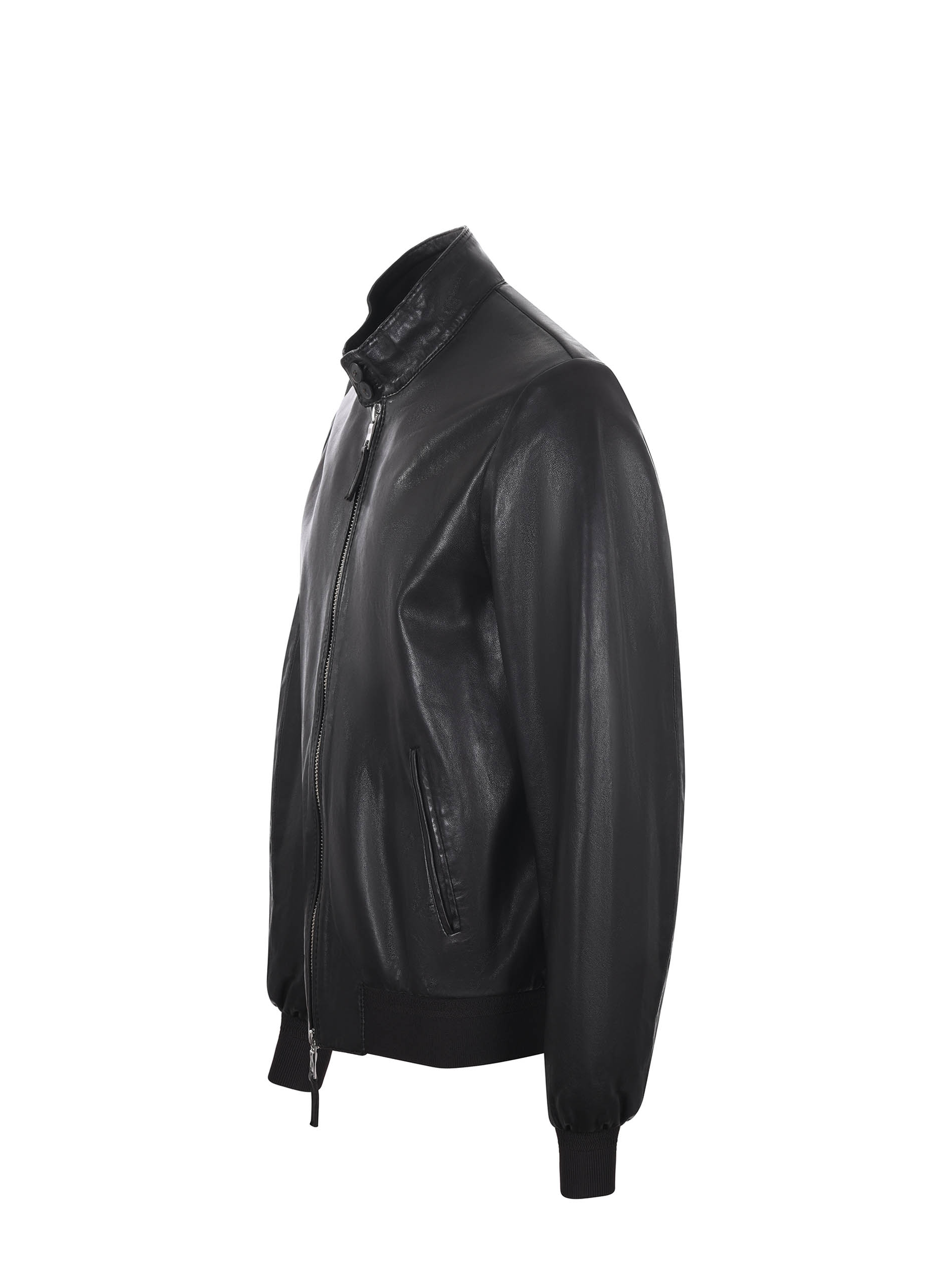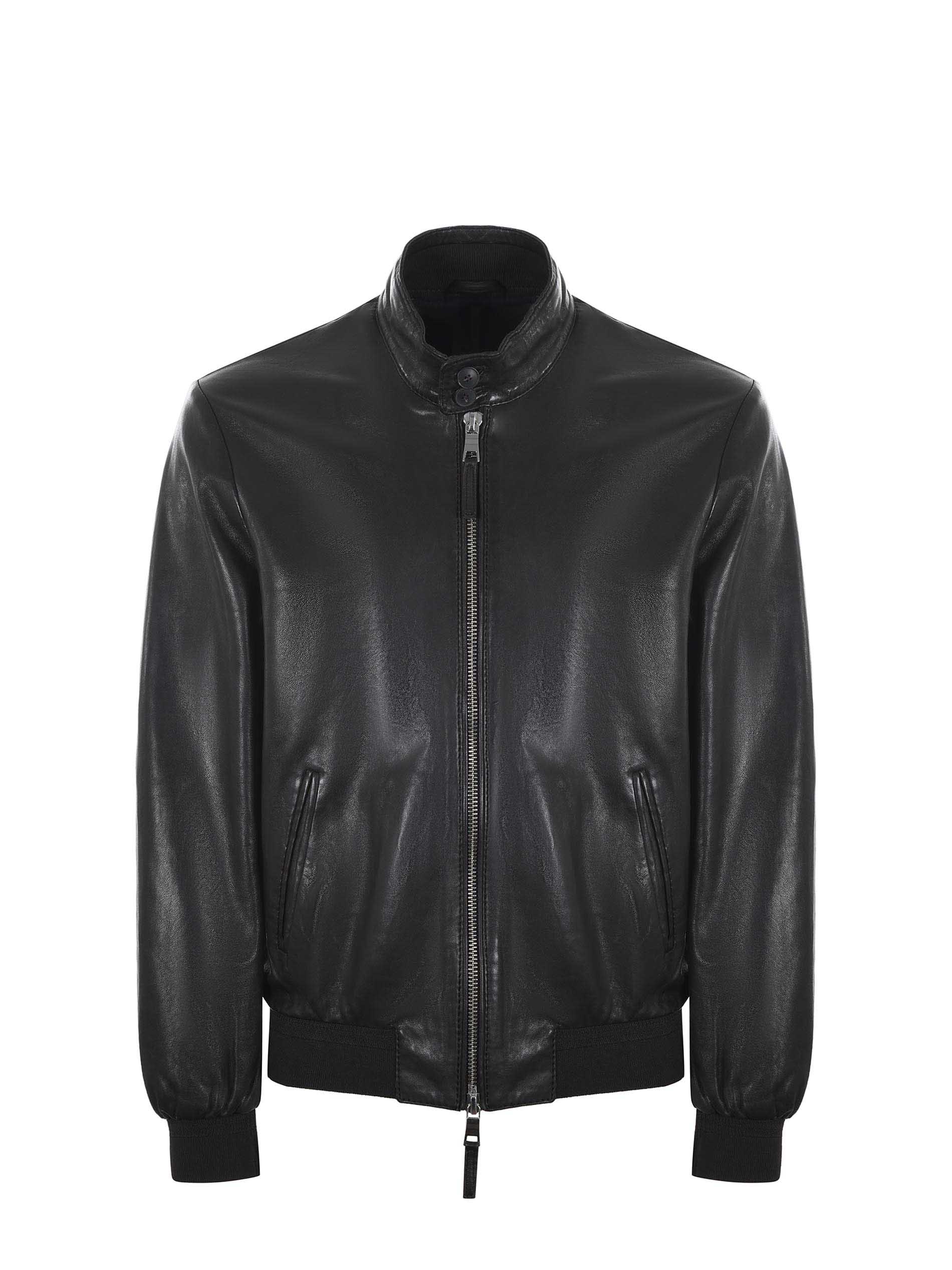 Giubbotto The Jack Leathers in pelle Marrone scuro. Collo alto con bottoni. Tasche a filo. Polsi e fondo in maglia a costine. Chiusura con zip doppio cursore. Interamente sfoderato e decostruito.