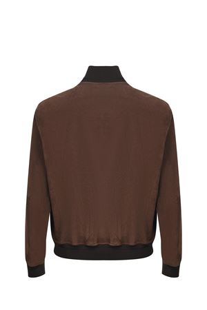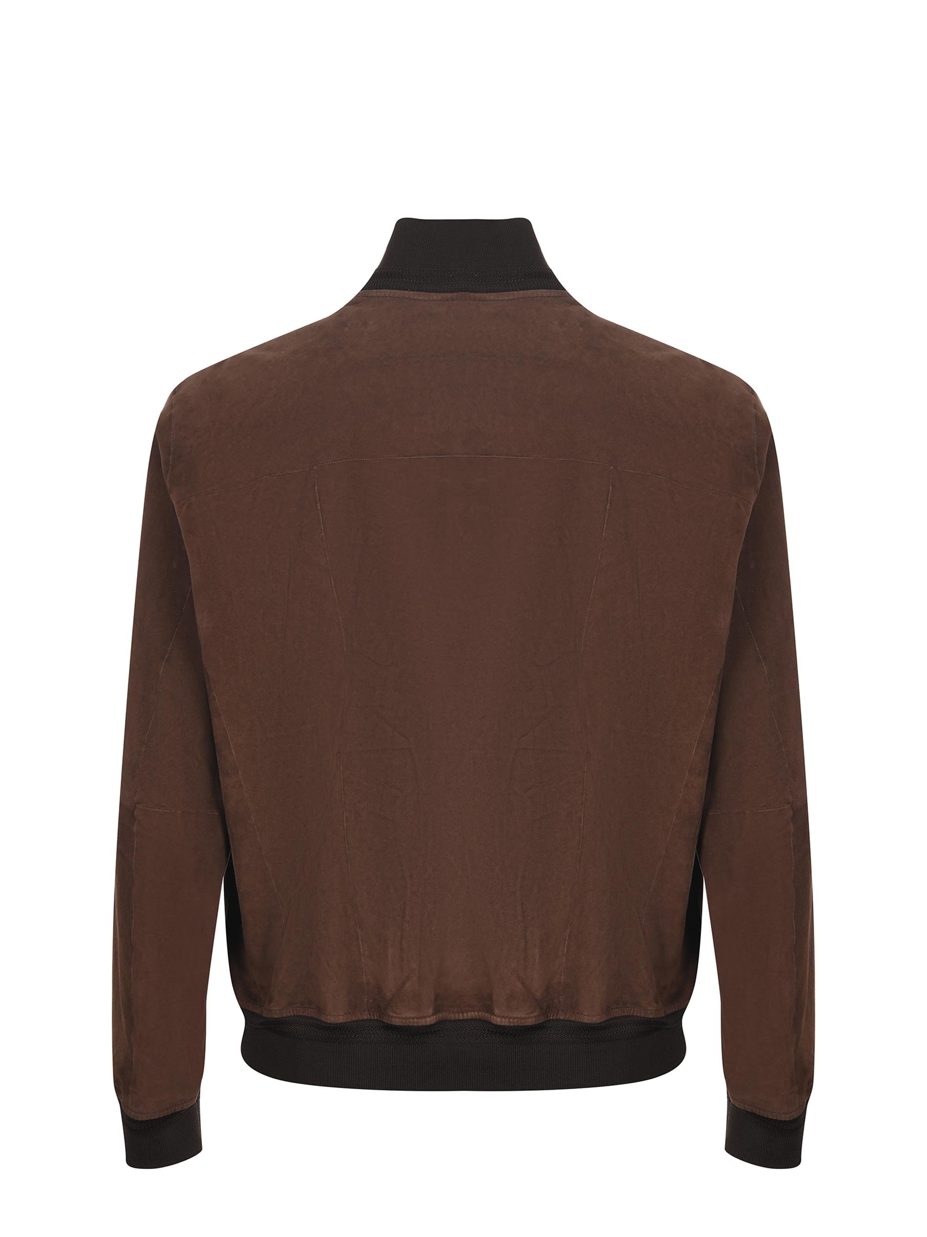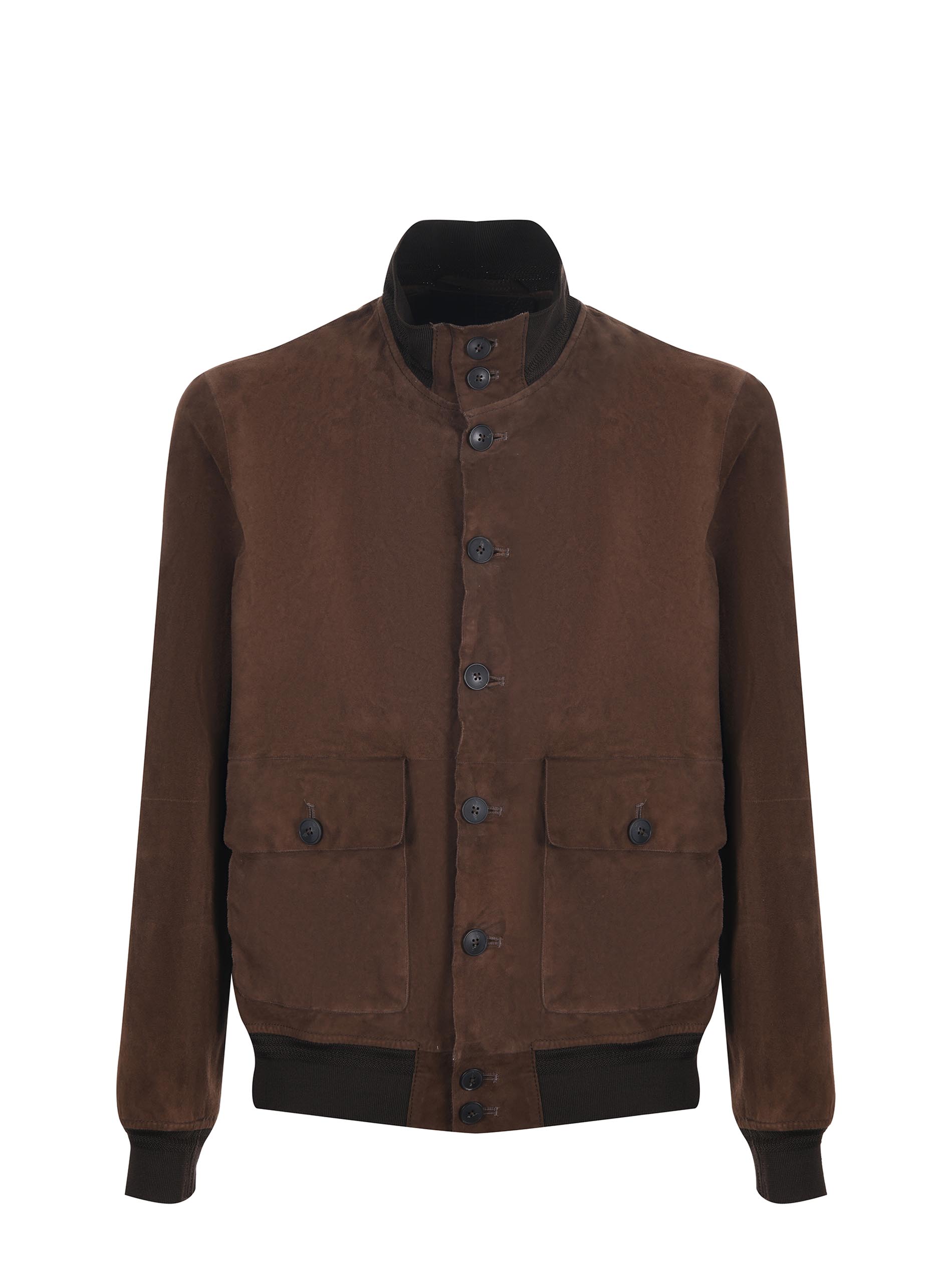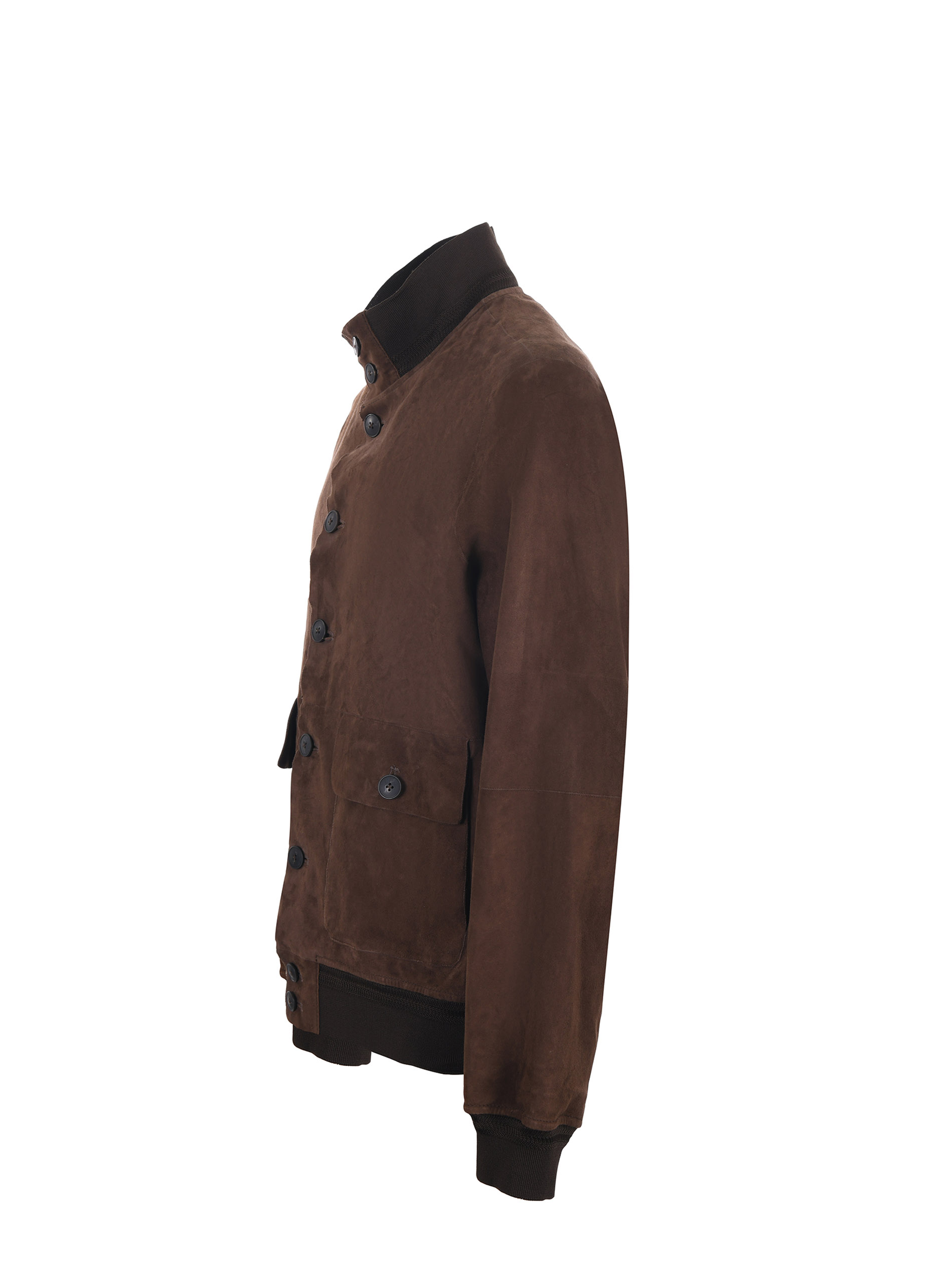 Giubbotto The Jack Leathers in pelle scamosciata Marrone. Collo alto in maglia a costine. Tasche con pattina. Polsi e fondo in maglia. Chiusura con bottoni. Interamente sfoderato e decostruito.