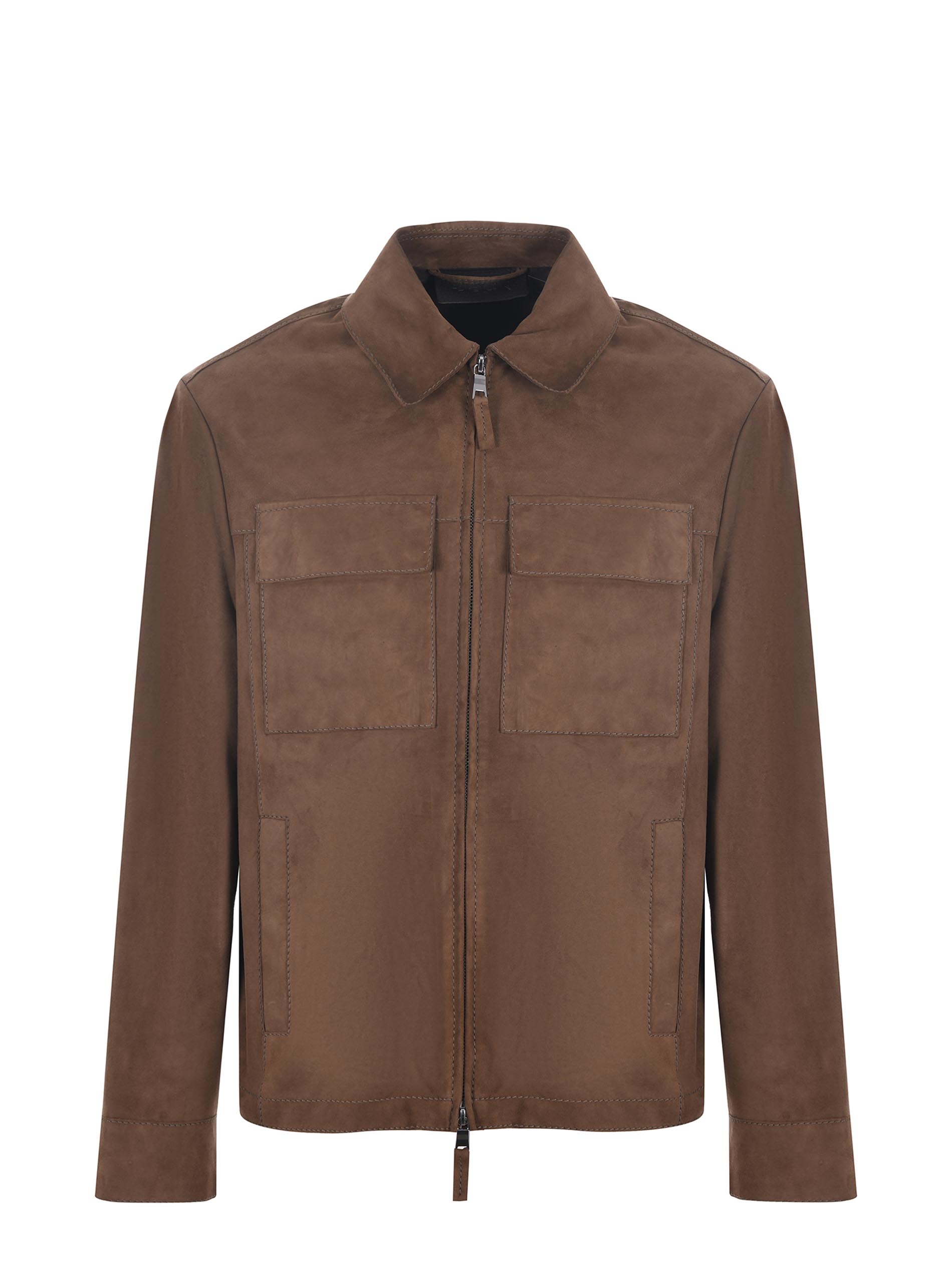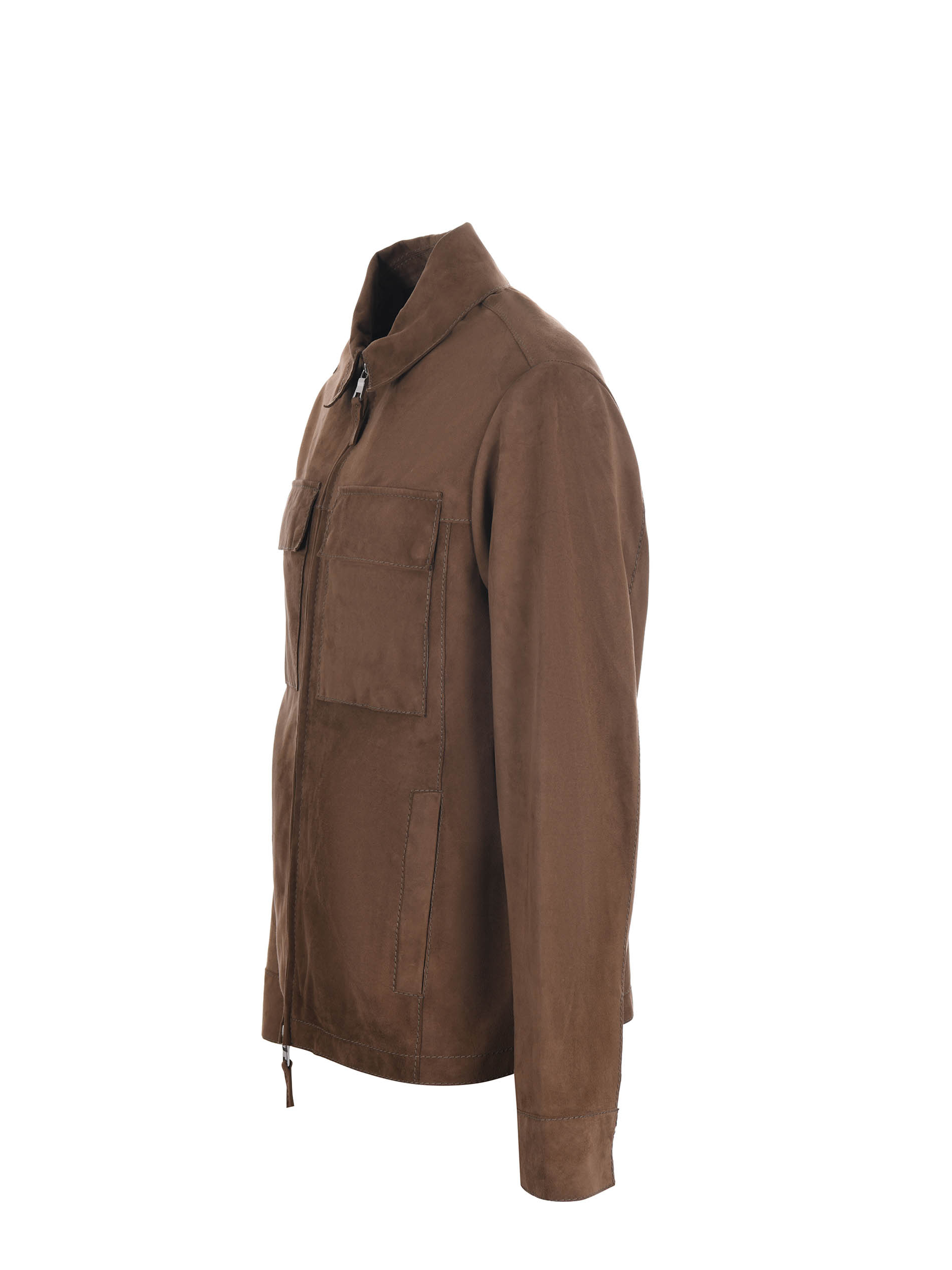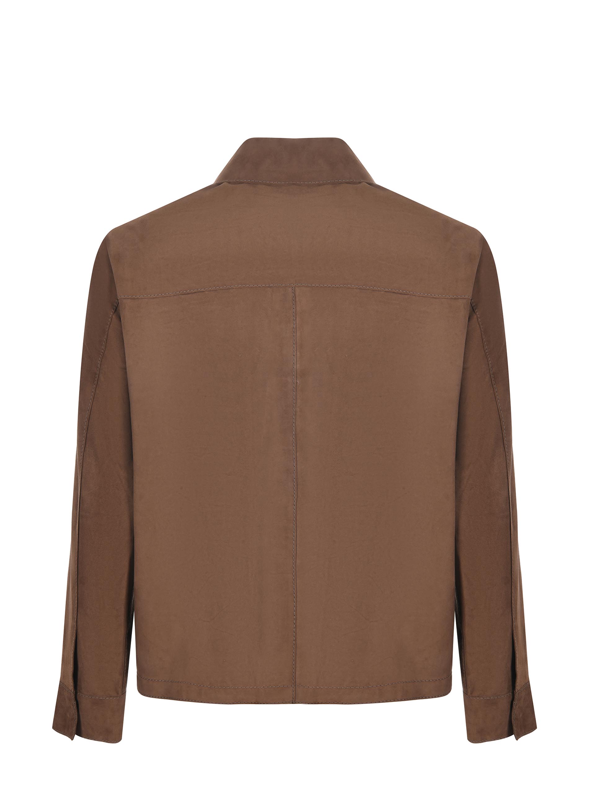 Giubbotto The Jack Leathers in pelle scamosciata Marrone. Colletto camicia. Tasche sui fianchi e tasche a toppa sul petto. Polsi con bottone. Chiusura con zip doppio cursore. Interamente sfoderato e decostruito.