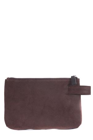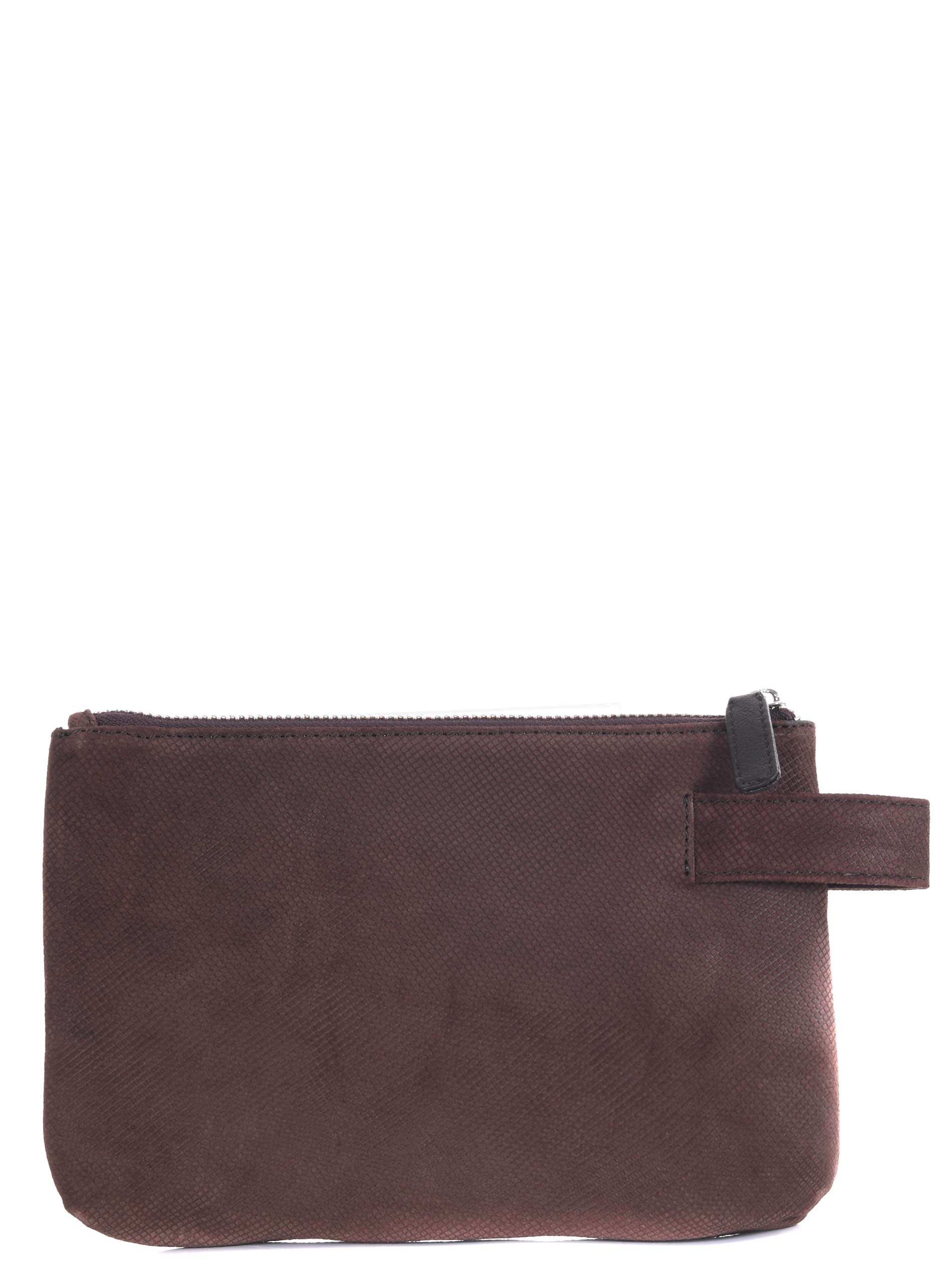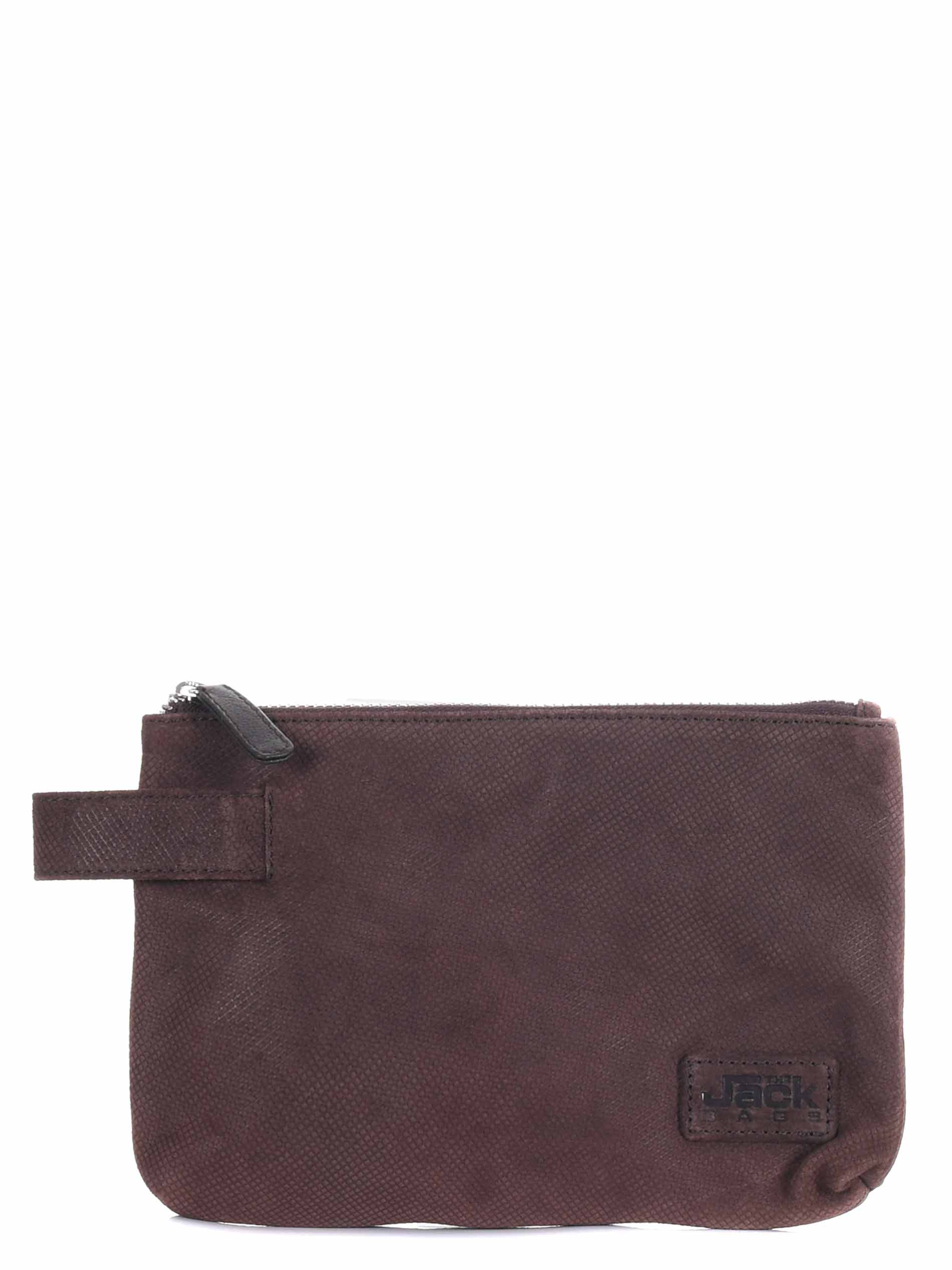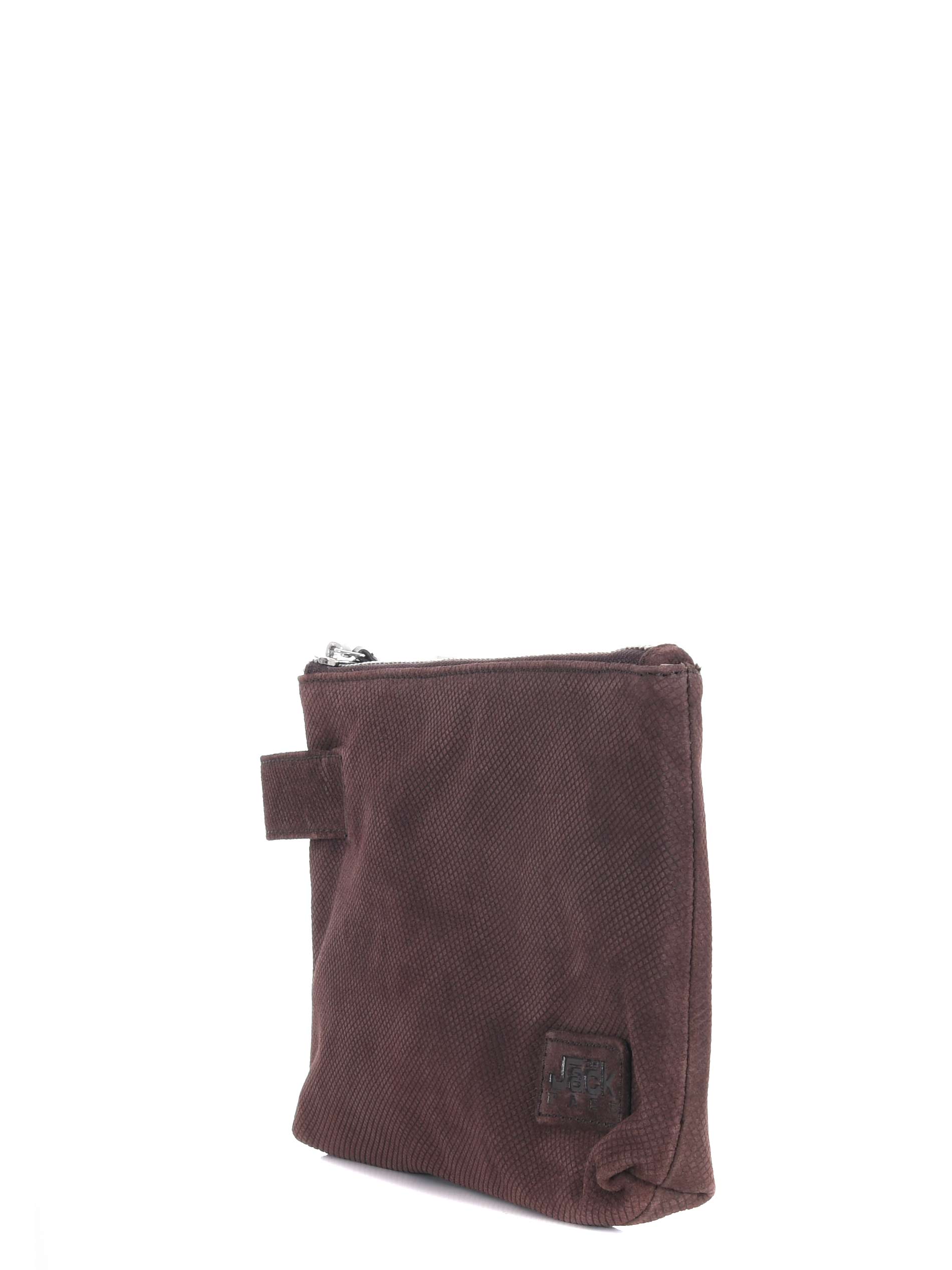 Pochette The Jack Leathers in nabuk micro losangato Marrone. Manico laterale. Chiusura con zip. Tasca interna con zip. Foderata. Logo frontale.