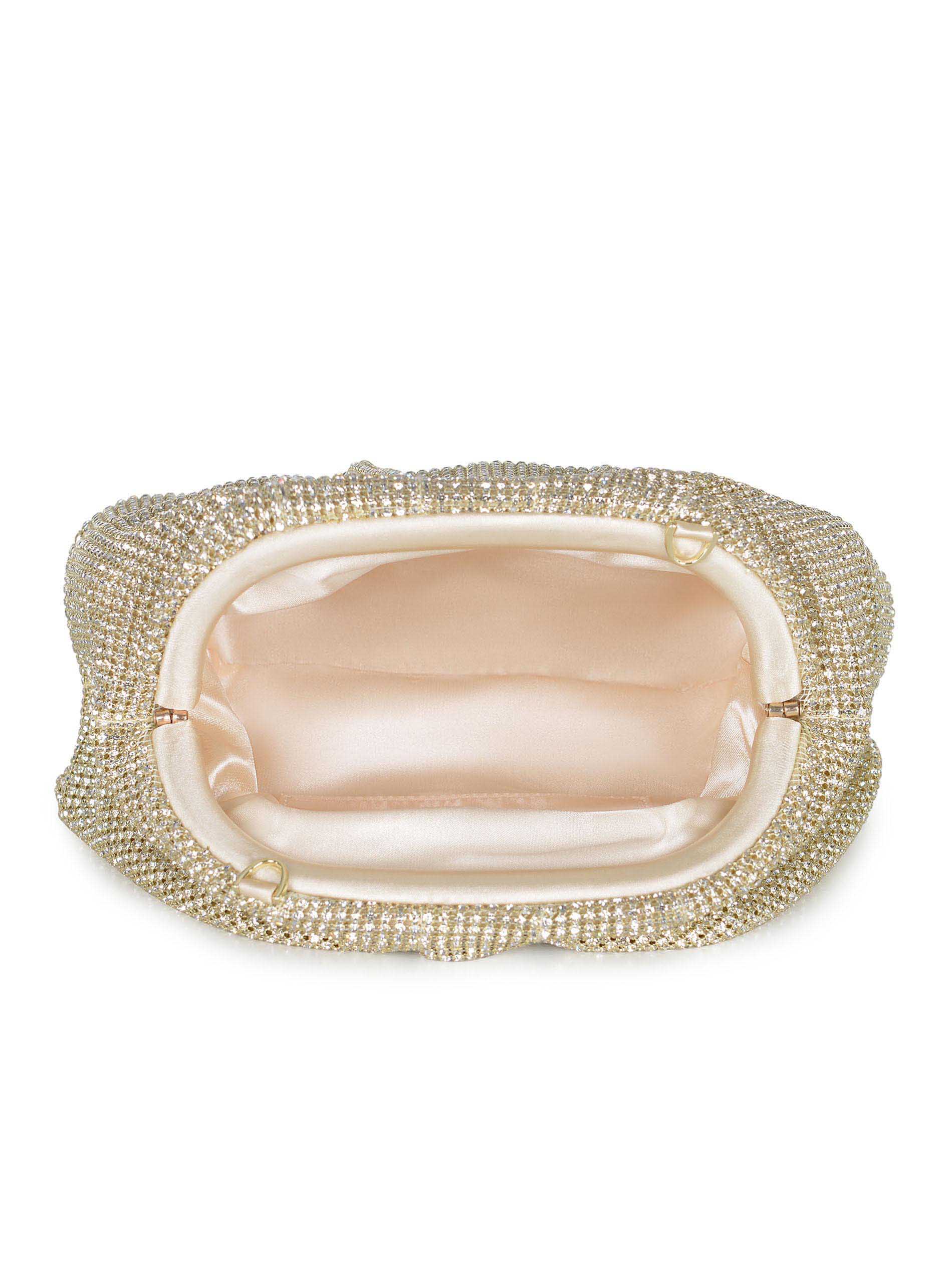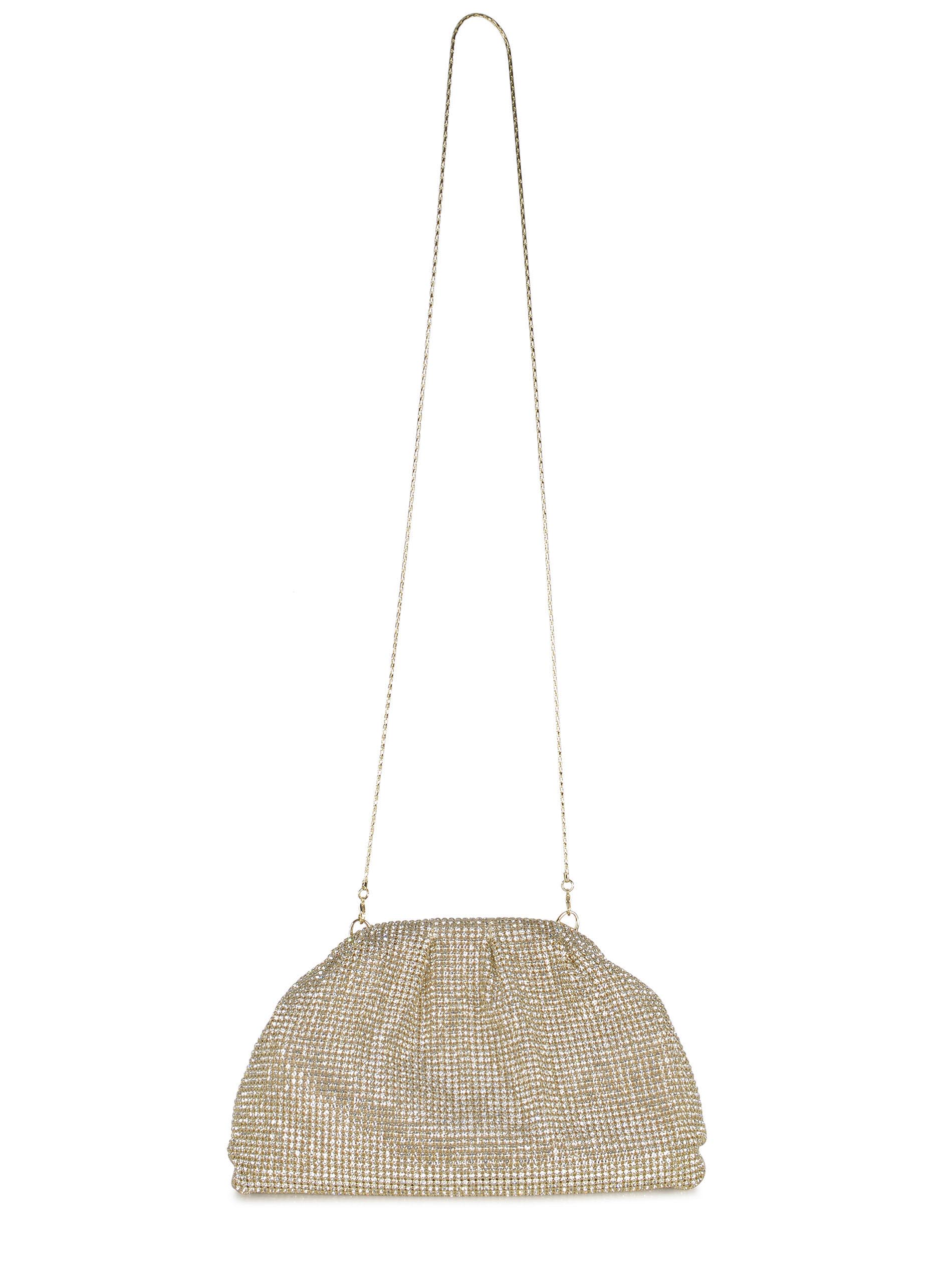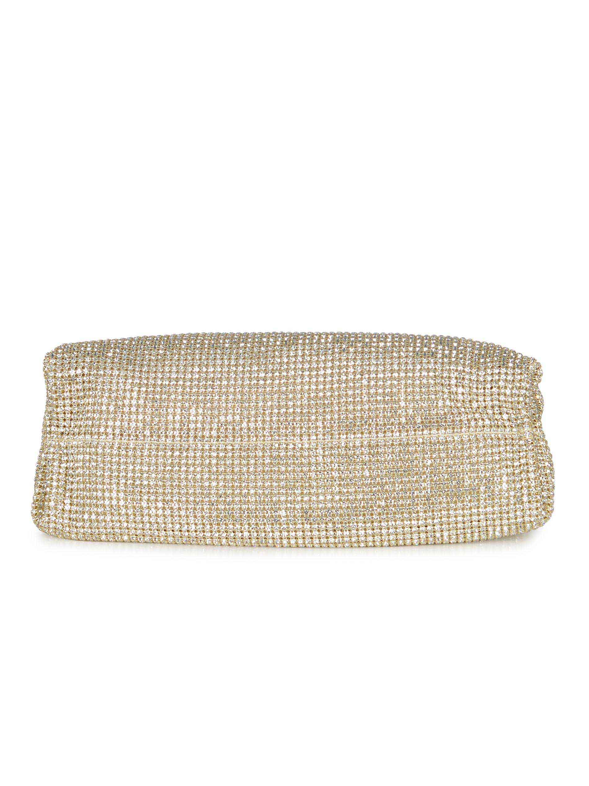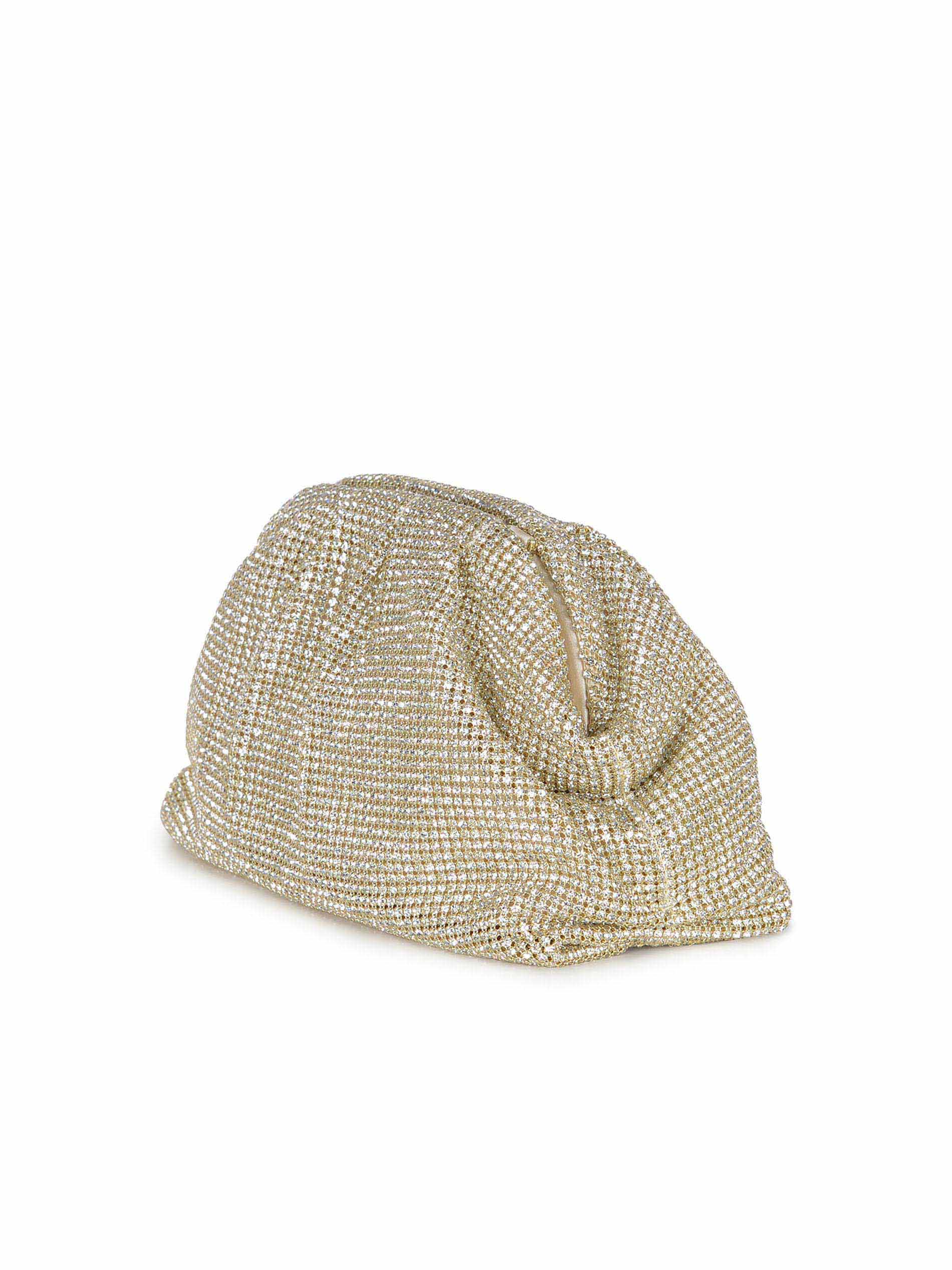 Clutch Twenty Fourhaitch "Petra" realizzata in maglia strass di colore Oro.