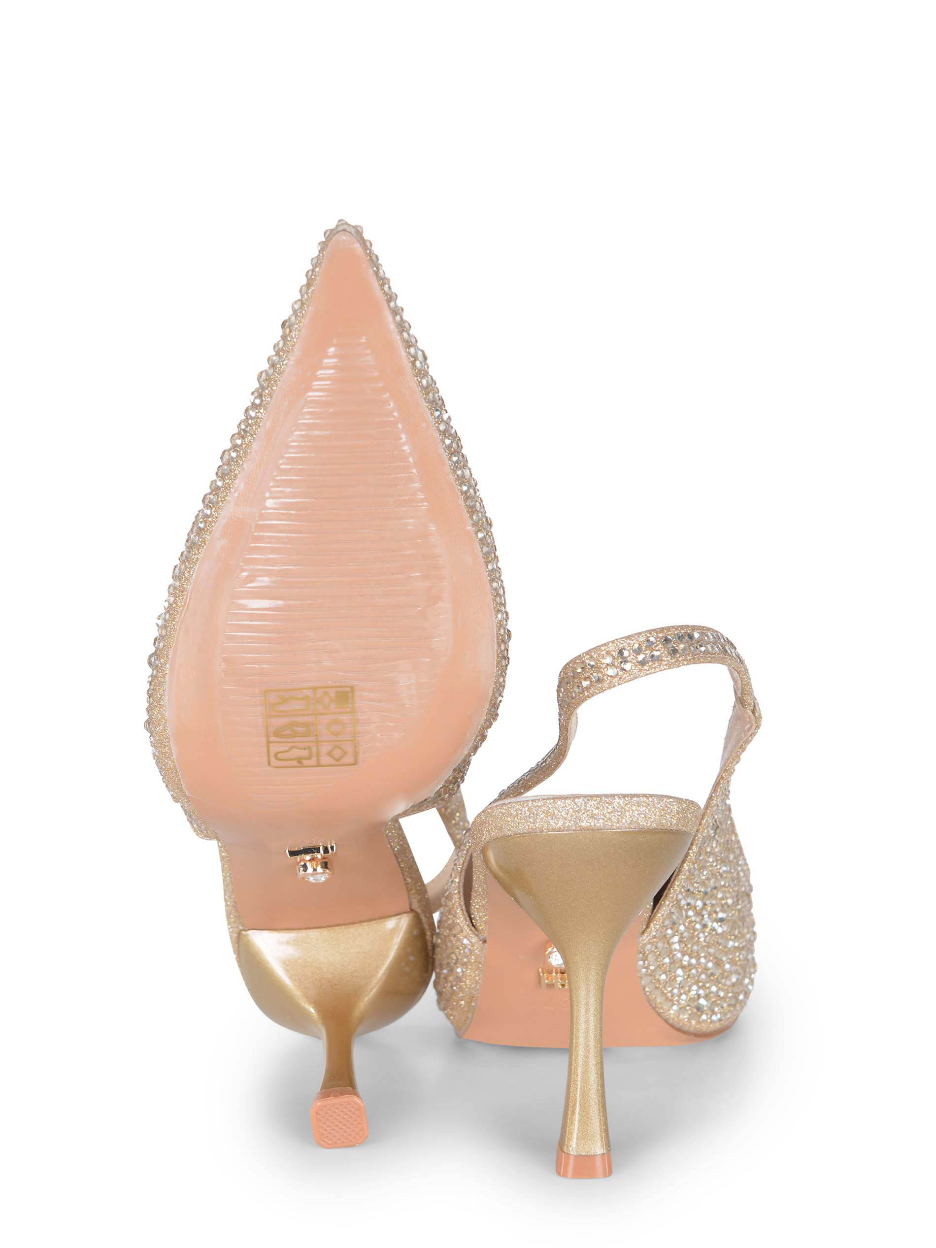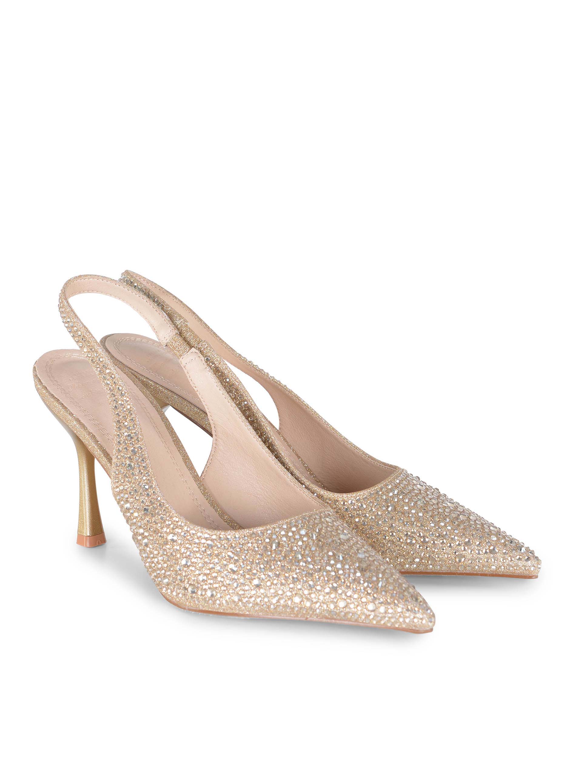 Strass applicati all-over di colore Oro.