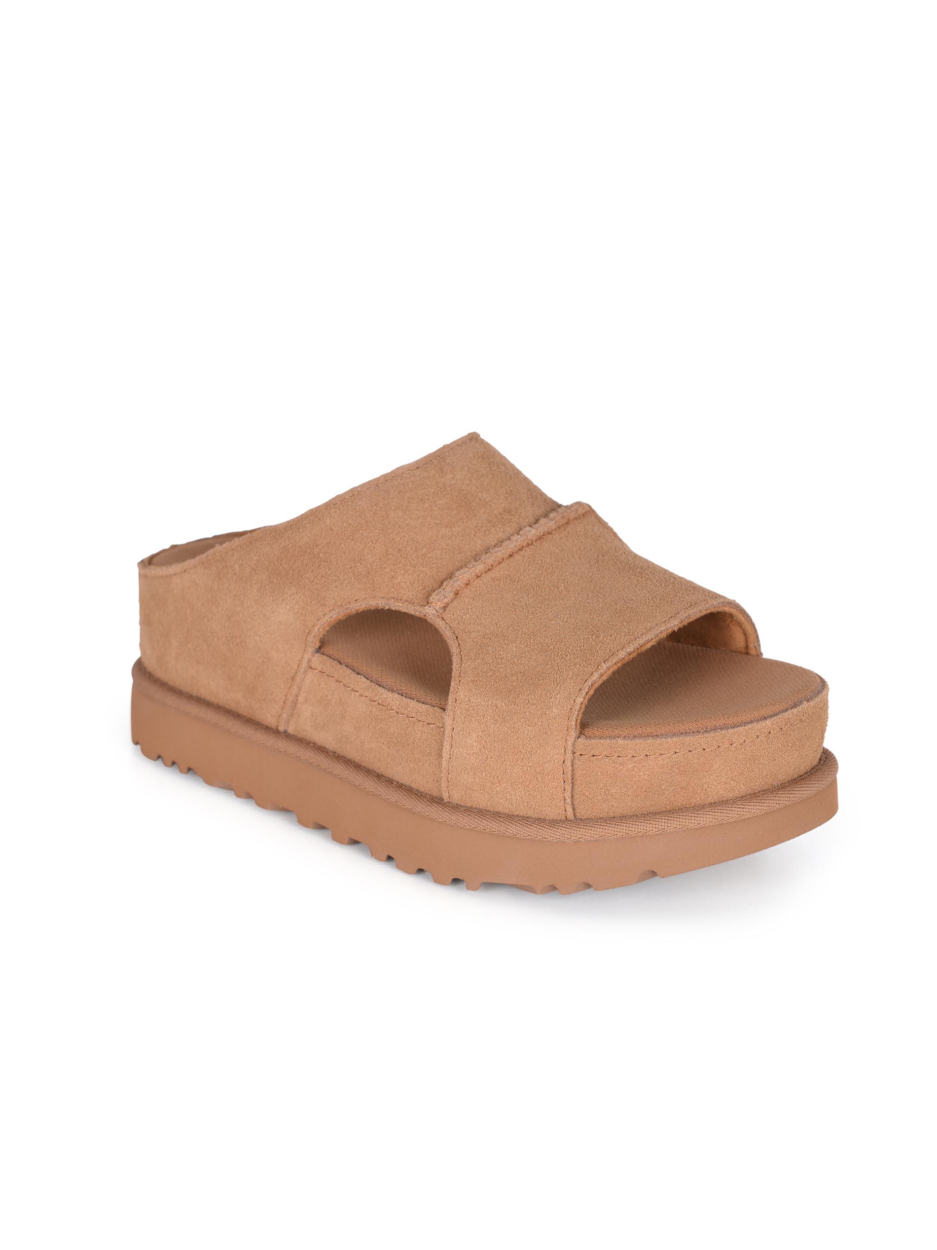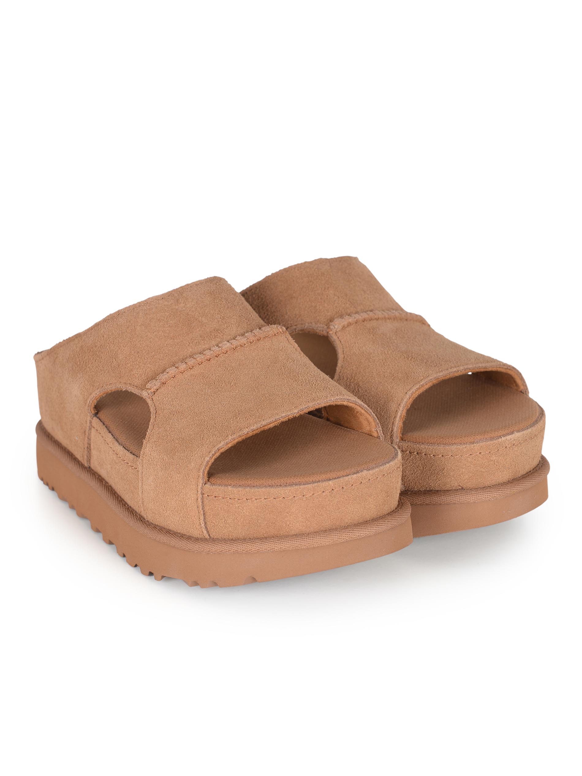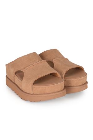 Sandali UGG "Goldenstar Hi" realizzati in pelle scamosciata di colore Cammello.