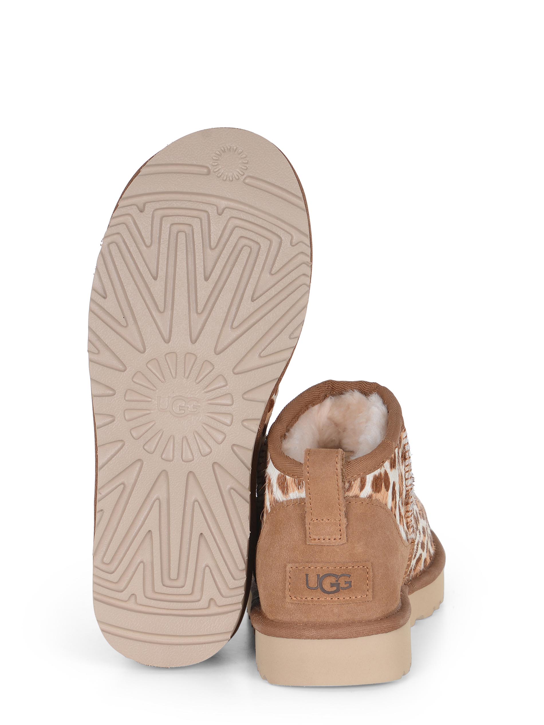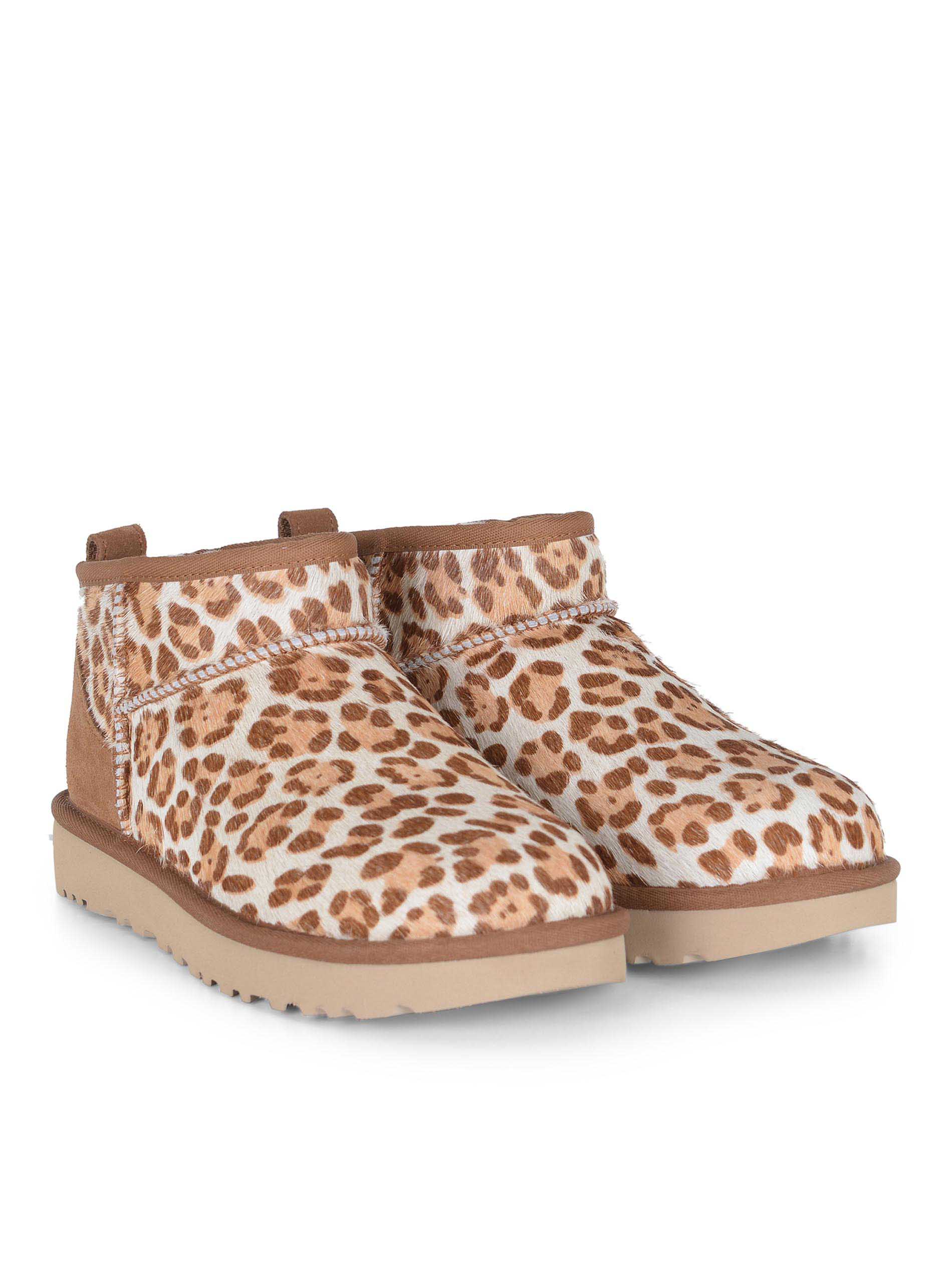 Stivali UGG "Classic Ultra Mini" realizzati in cavallino Leopardato. Punta tonda.