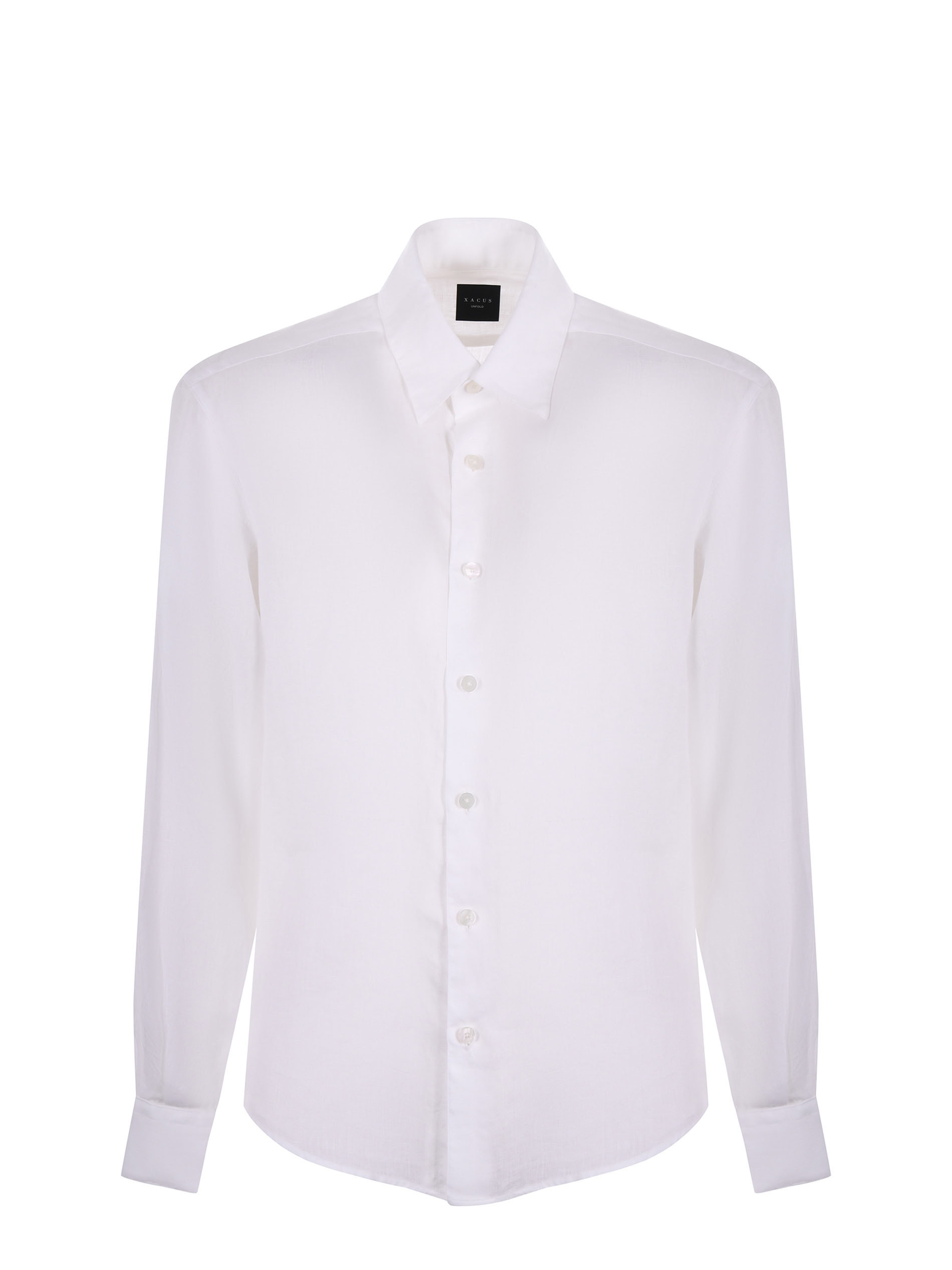 Camicia Xacus in lino Bianco. Colletto classico. Maniche lunghe. Polsi con bottoni. Chiusura con bottoni. Fitting regolare.