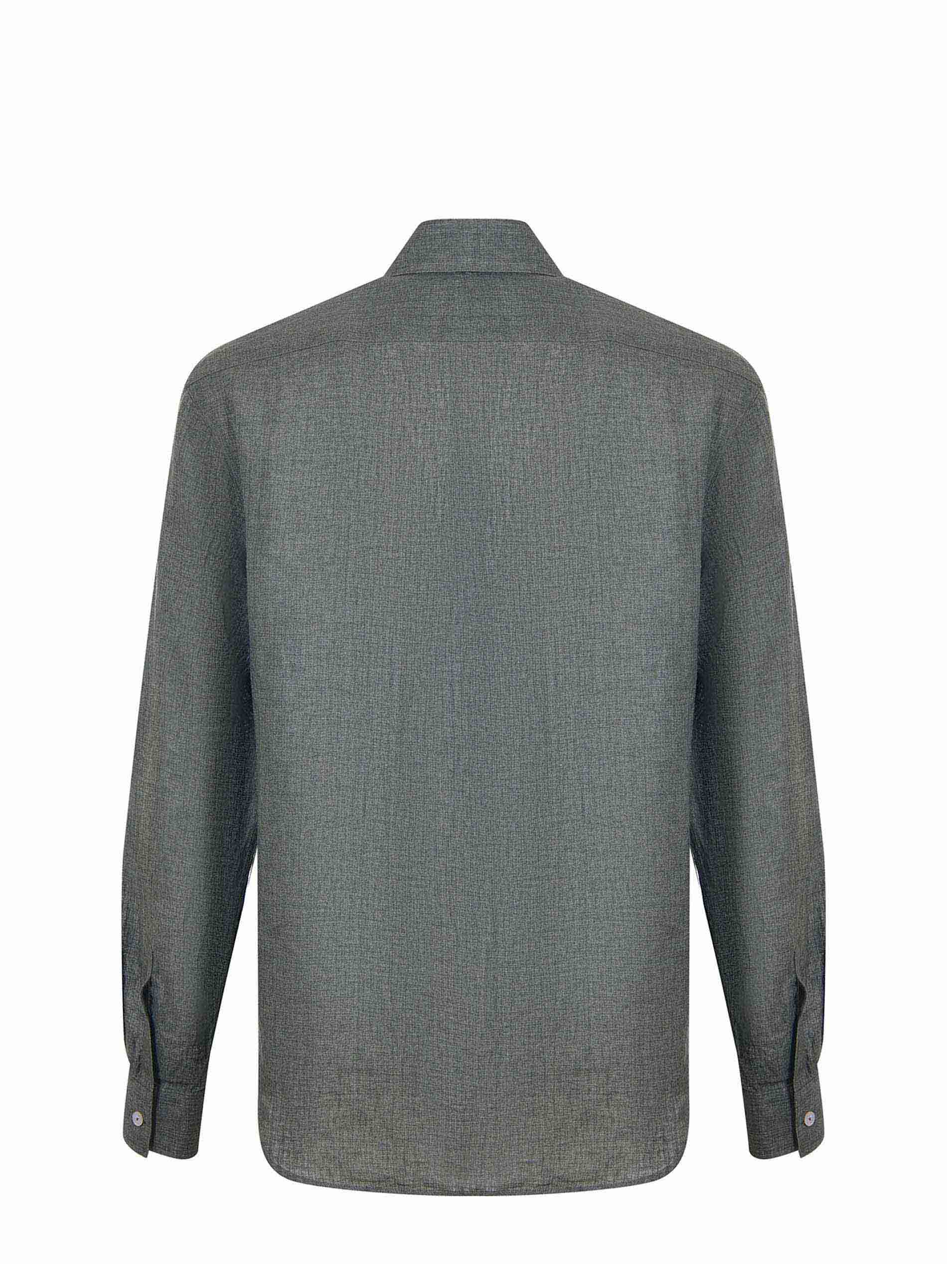 Camicia Xacus in lino Verde militare. Colletto classico. Maniche lunghe. Polsi con bottoni. Chiusura con bottoni. Fitting regolare.