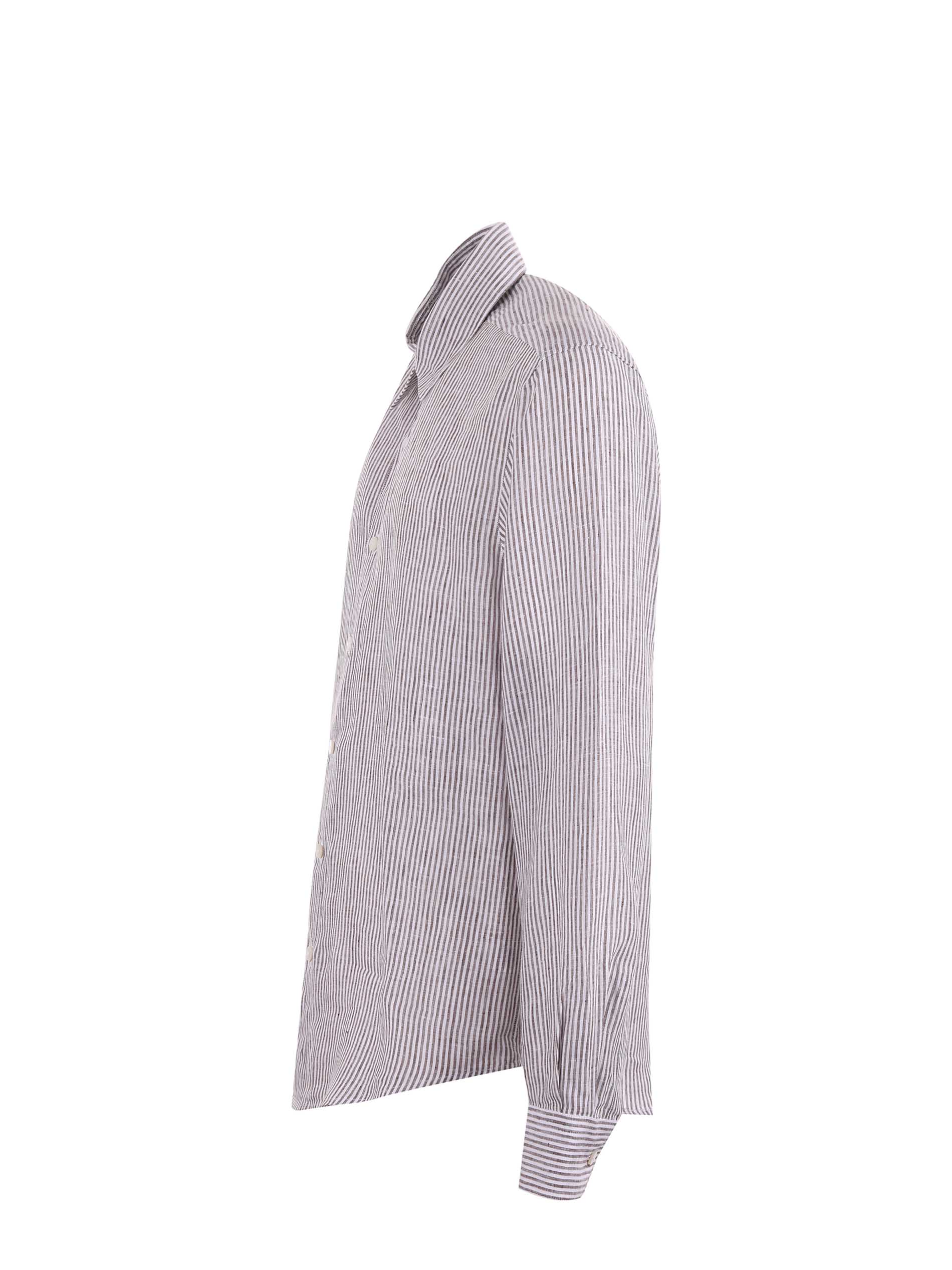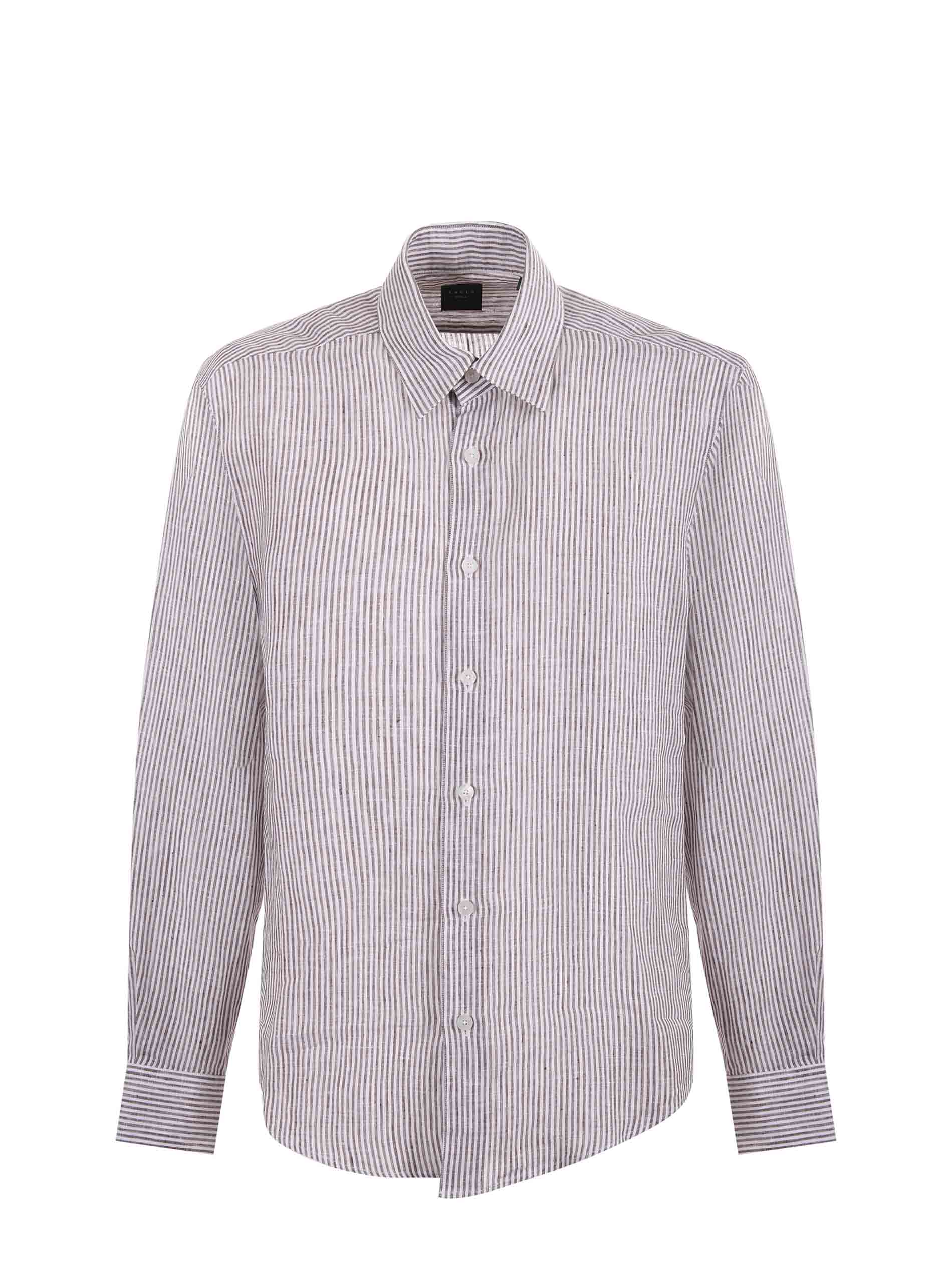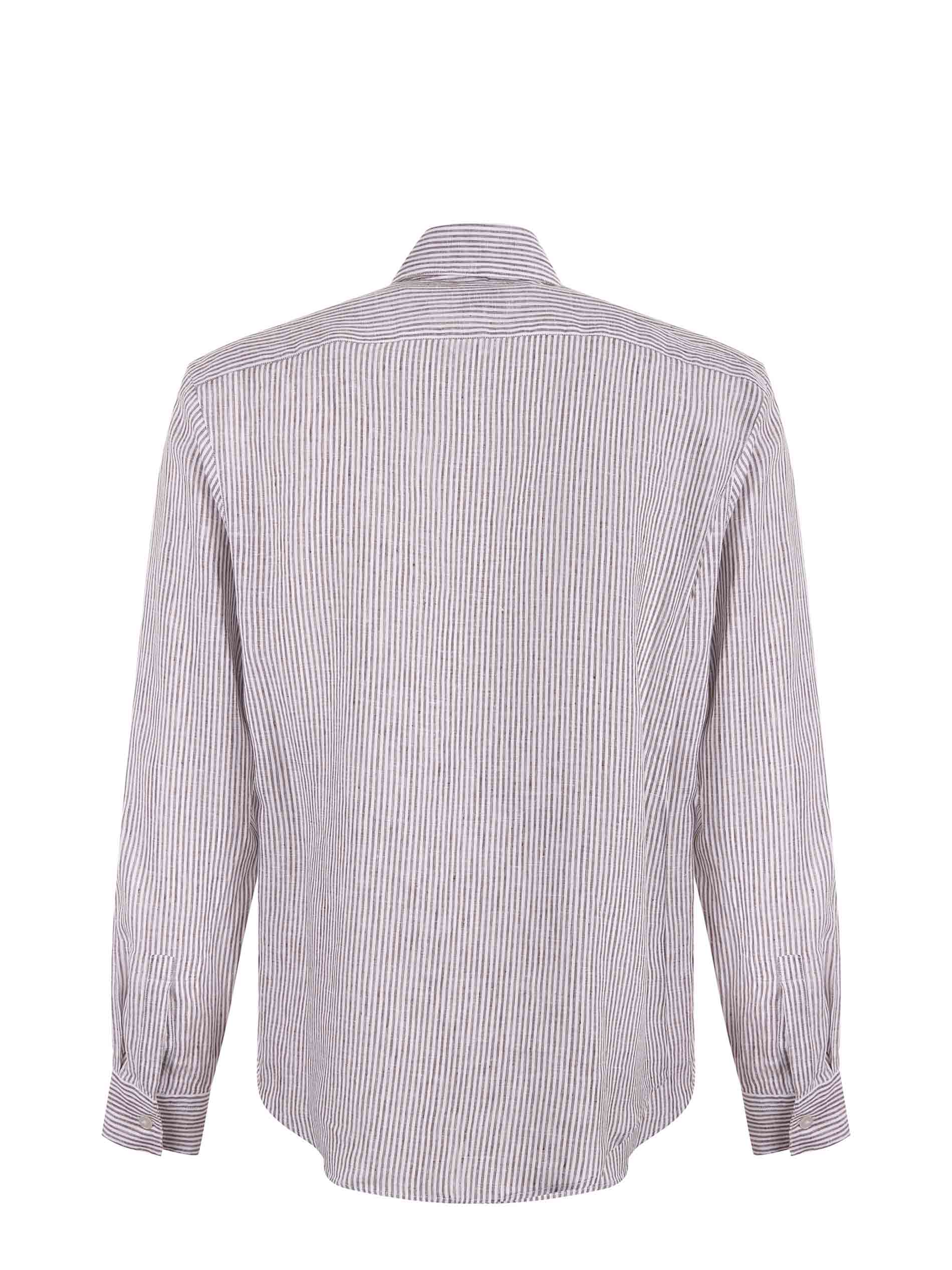 Camicia Xacus in lino motivo bastoncini Marrone/Bianco. Colletto classico. Maniche lunghe. Polsi con bottoni. Chiusura con bottoni. Fitting regolare.