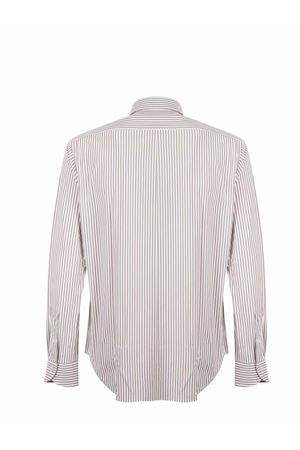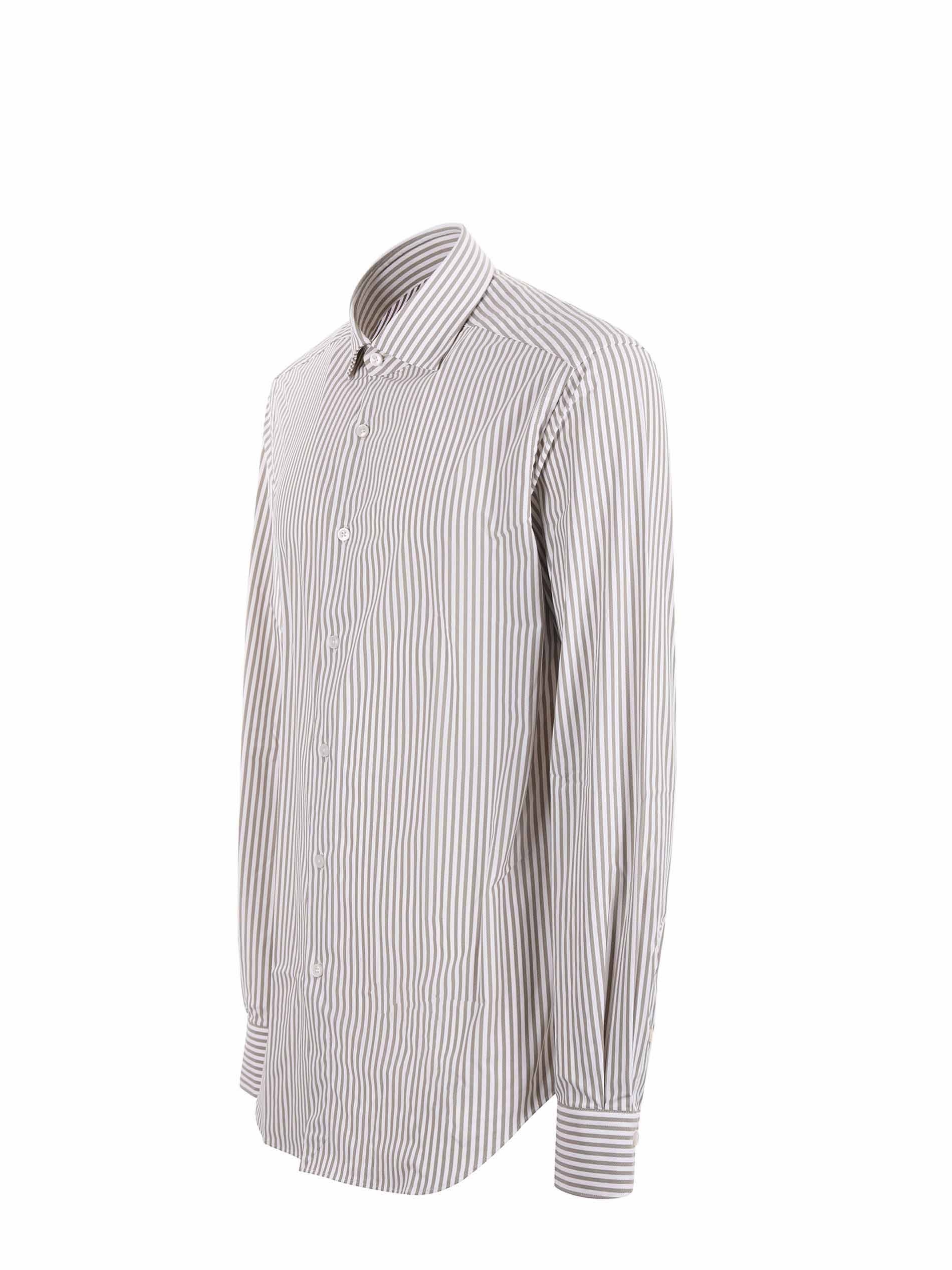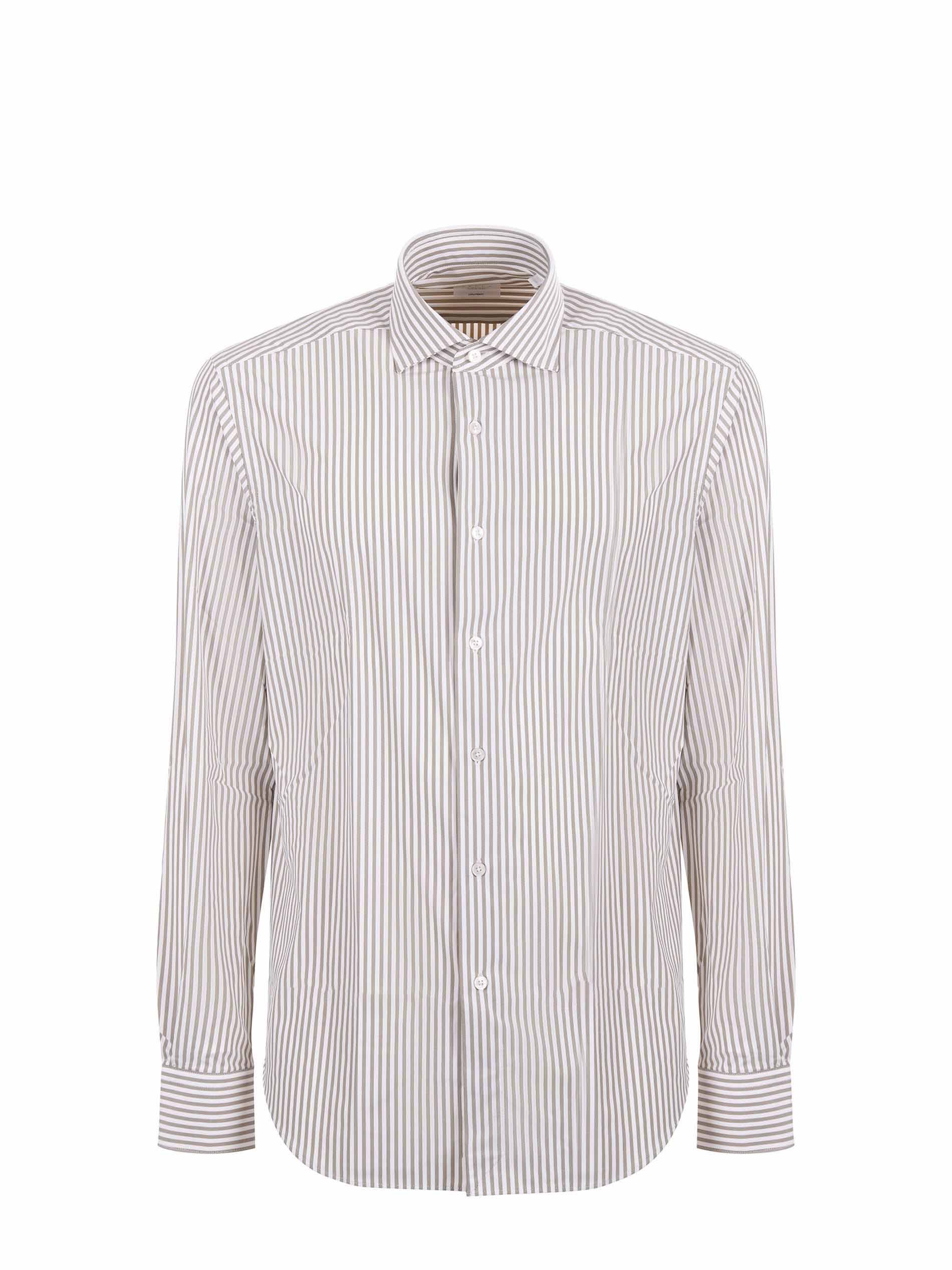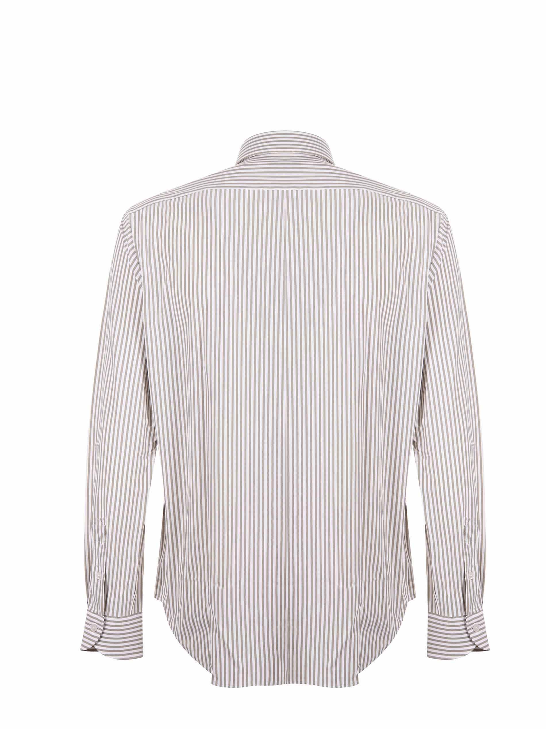 Camicia Xacus in jersey stretch motivo righe pari Beige/Bianco. Collo francese. Chiusura con bottoni. Manica lunga. Polso con bottone.