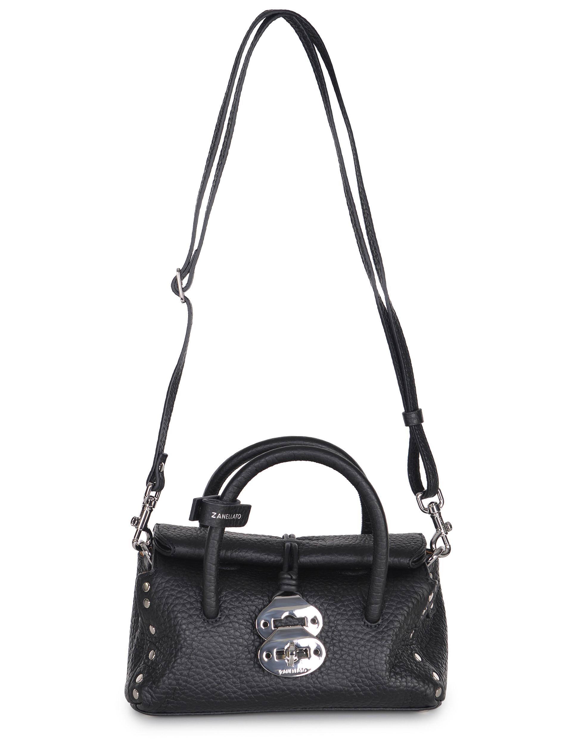 Borsa Zanellato "Dotta Baby" realizzata in pelle martellata di colore Nero. Inserti in metallo Argento.