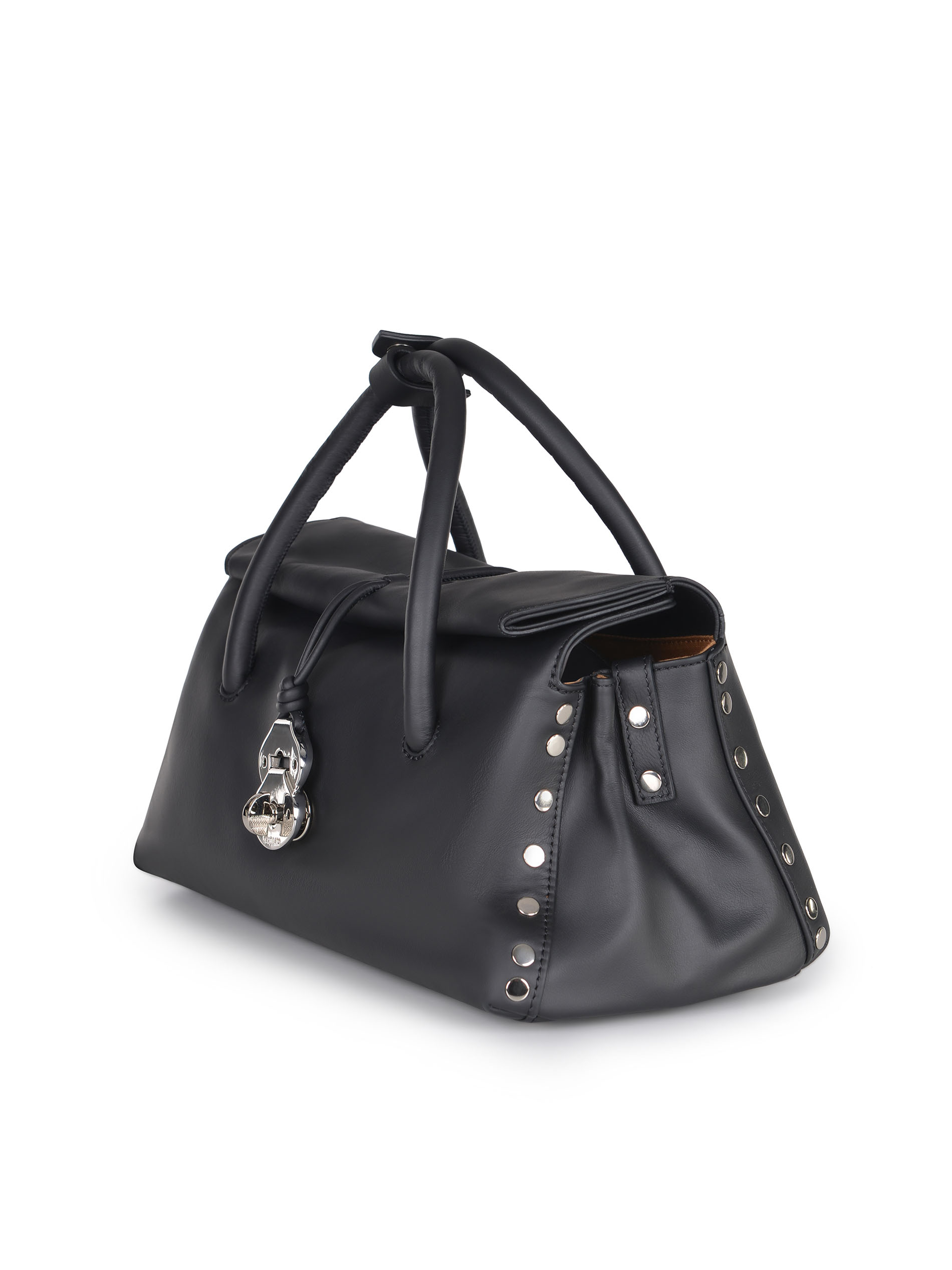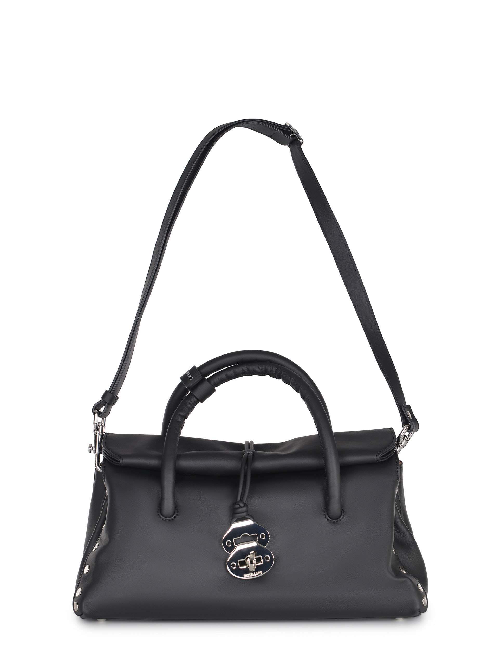 Borsa Zanellato "Dotta S" realizzata in pelle liscia di colore Nero. Inserti in metallo Argento.
