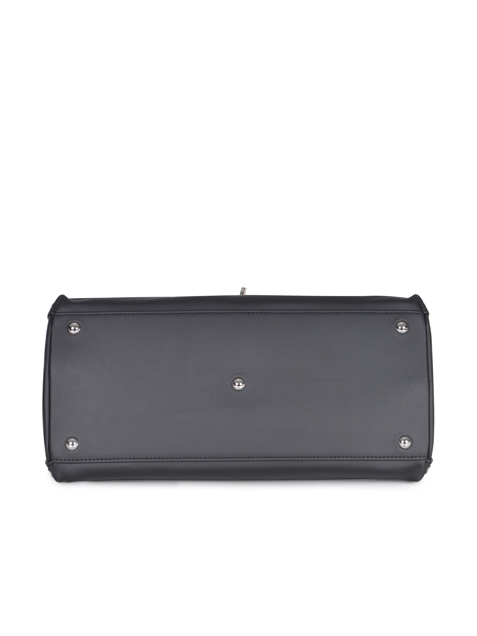 Dettaglio "Borchie" applicate ai lati. Due manici. Chiusura roll-top magnetica, nastrini tubolari